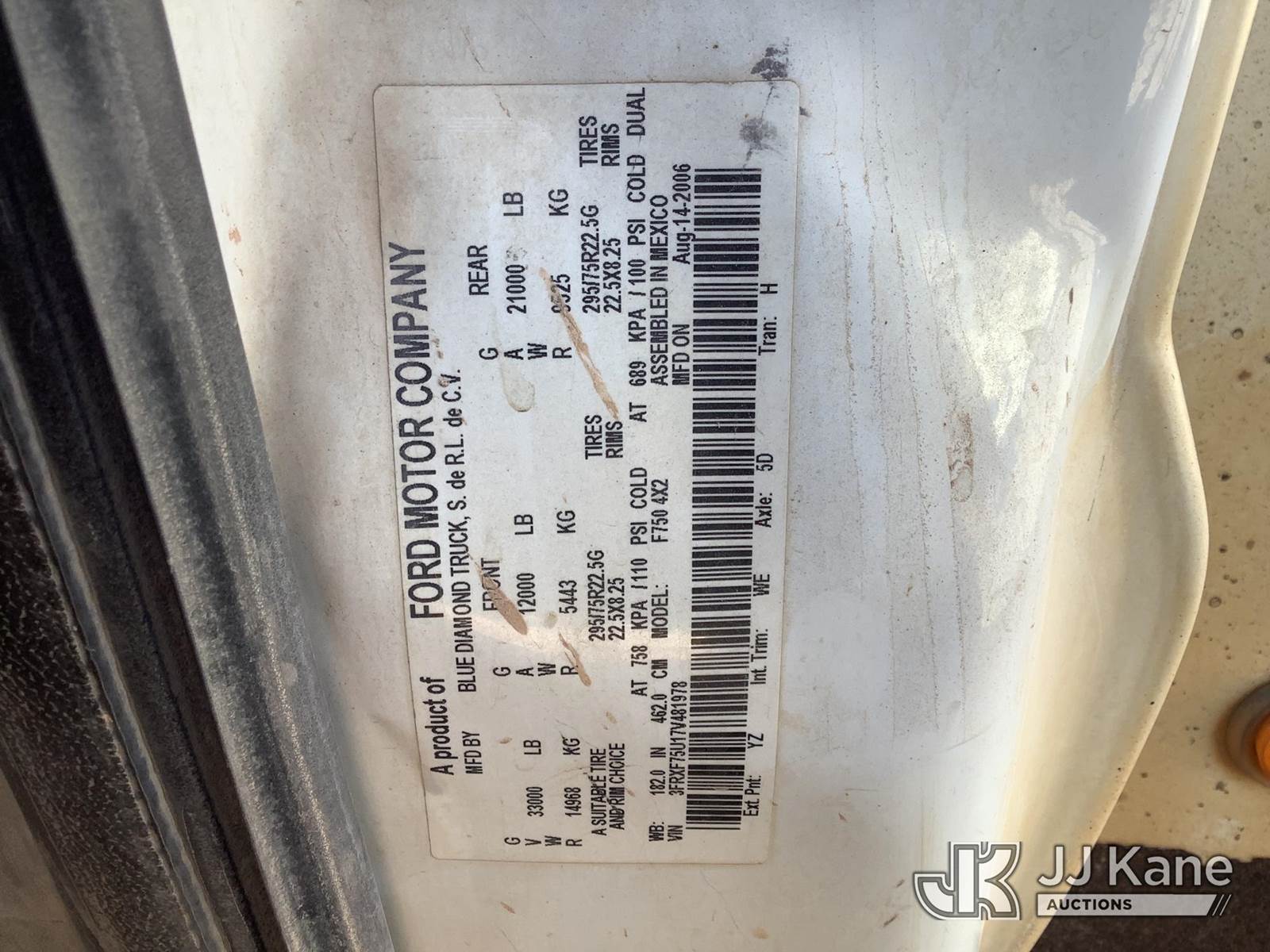 2007 Ford F-750 Mechanics Service Truck, 7.2L diesel, Auto, with Maintainer 10000 series material crane w/ hook block, (88,157 miles) (Runs & Moves, Crane Operates) This is a Titled Item NOTE: This unit is being sold AS IS/WHERE IS via Timed Auction and is located in Phoenix, AZ. Inspection & preview days for this unit are the 2 business days prior to the first day of items closing for this auction, item is located at 2505 W Durango St Phoenix, AZ 85009 and hours of operations are 8a-4p. For pre-sale questions, please contact Andrew Espinoza @ (602) 393-8107. (Buyer is responsible for removal. Assistance by consignor or JJ Kane Auctions is not assured.)