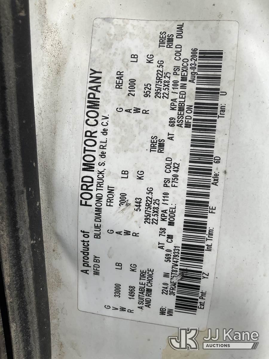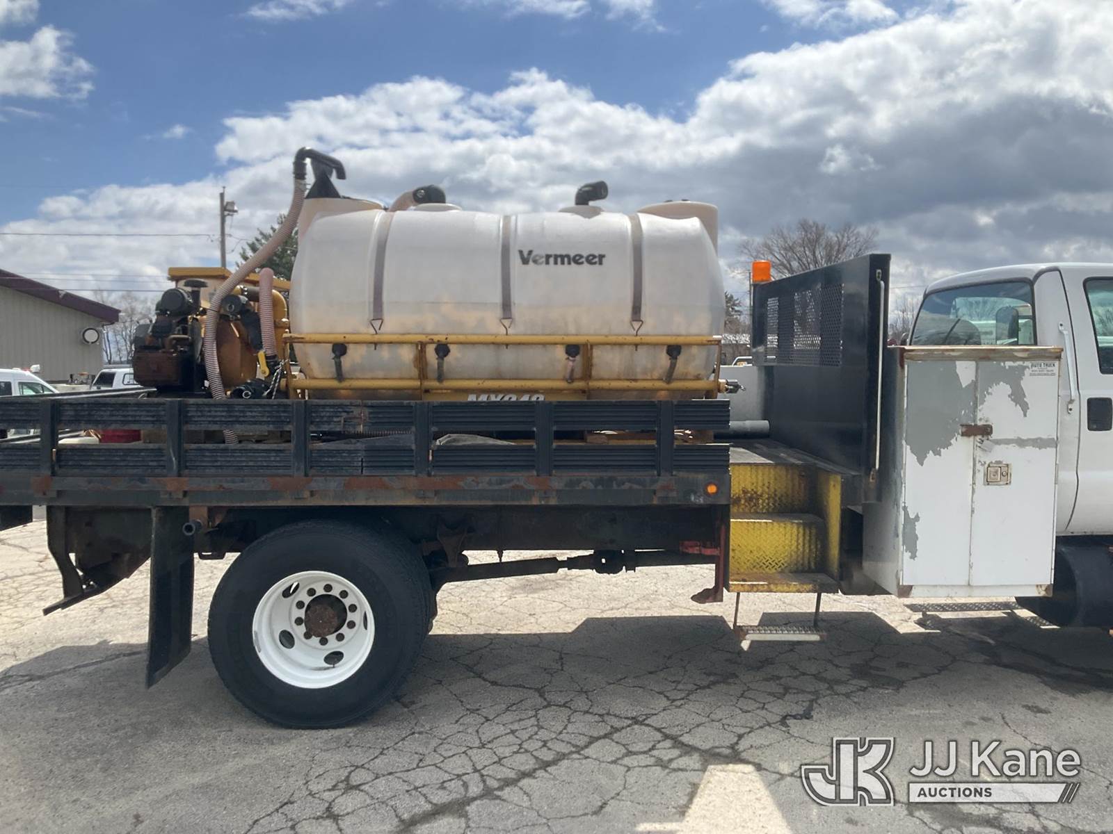 2007 Ford F-750 Regular Cab 2WD DRW Flatbed/Service Truck, 7.2L L6 DIESEL 4X2, Auto, A/C, with 15ft flatbed, Vermeer MX240 mud mixer, (109,224 miles) (Runs & Moves) This is a Titled Item NOTE: This unit is being sold AS IS/WHERE IS via Timed Auction and is located in South Beloit, IL. Inspection & preview days for this unit are the 2 business days prior to the first day of items closing for this auction, item is located at 14354 Dearborn Ave South Beloit, IL and hours of operations are 8a-4p. For pre-sale questions, please contact Derek Eklund at (608) 904-0618 or (derek.eklund@jjkane.com). (Buyer is responsible for removal. Assistance by consignor or JJ Kane Auctions is not assured.)