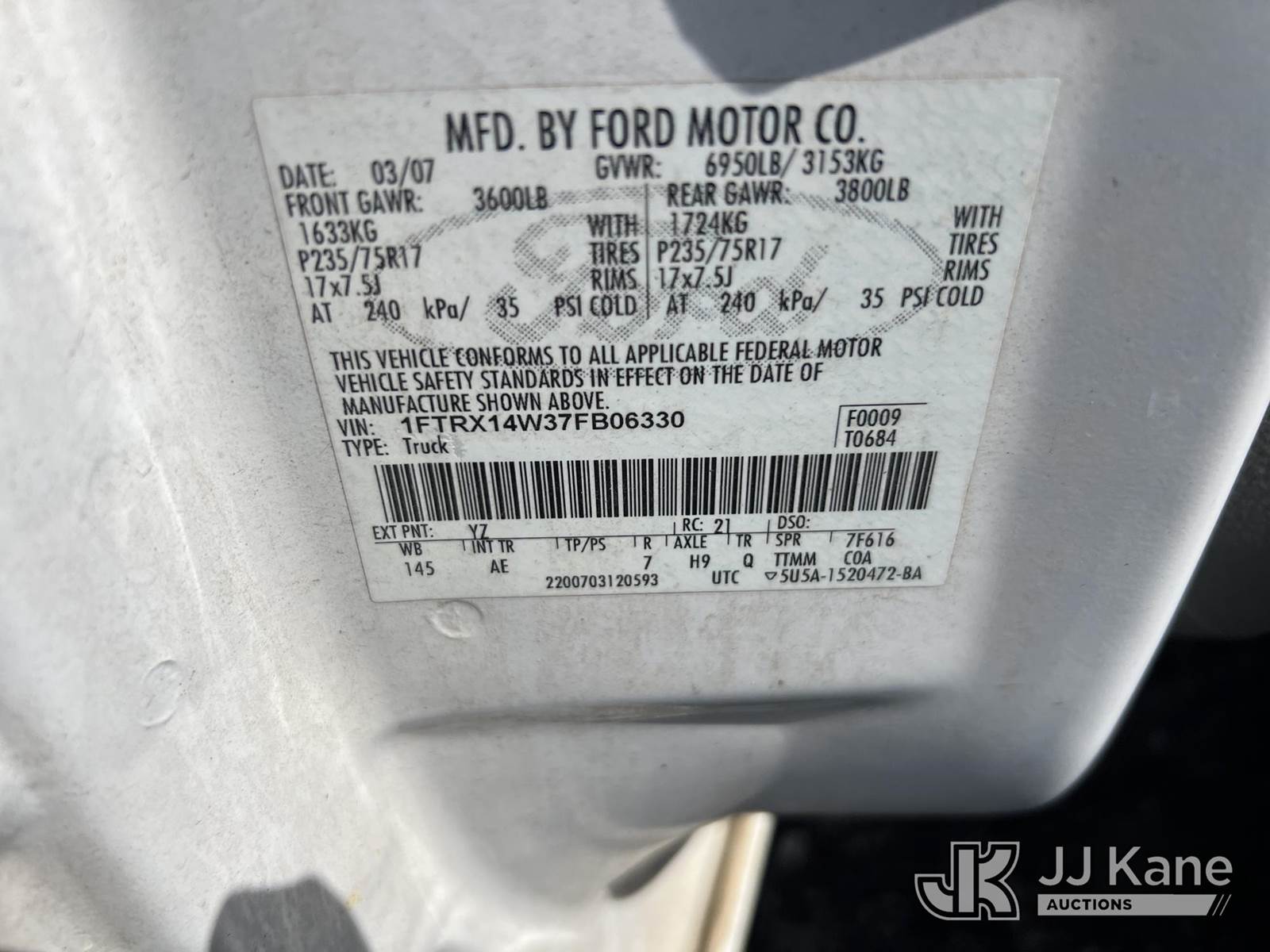 2007 Ford F150 4x4 Extended-Cab Pickup Truck, 8-cyl gas, Auto, A/C, (190,468 miles) (Municipality Owned) (Runs & Moves) (Seller States: COOLANT LEAK, NEEDS BATTERY) This is a Titled Item NOTE: This unit is being sold AS IS/WHERE IS via Timed Auction and is located in Albertville, AL. Inspection & preview days for this unit are by appointment only; please contact us at contact@jjkane.com or 84-Go-JJKane for more details. Alabama Auctioneer Michael Whitebread - License # 5592. (Buyer is responsible for removal. Assistance by consignor or JJ Kane Auctions is not assured.)