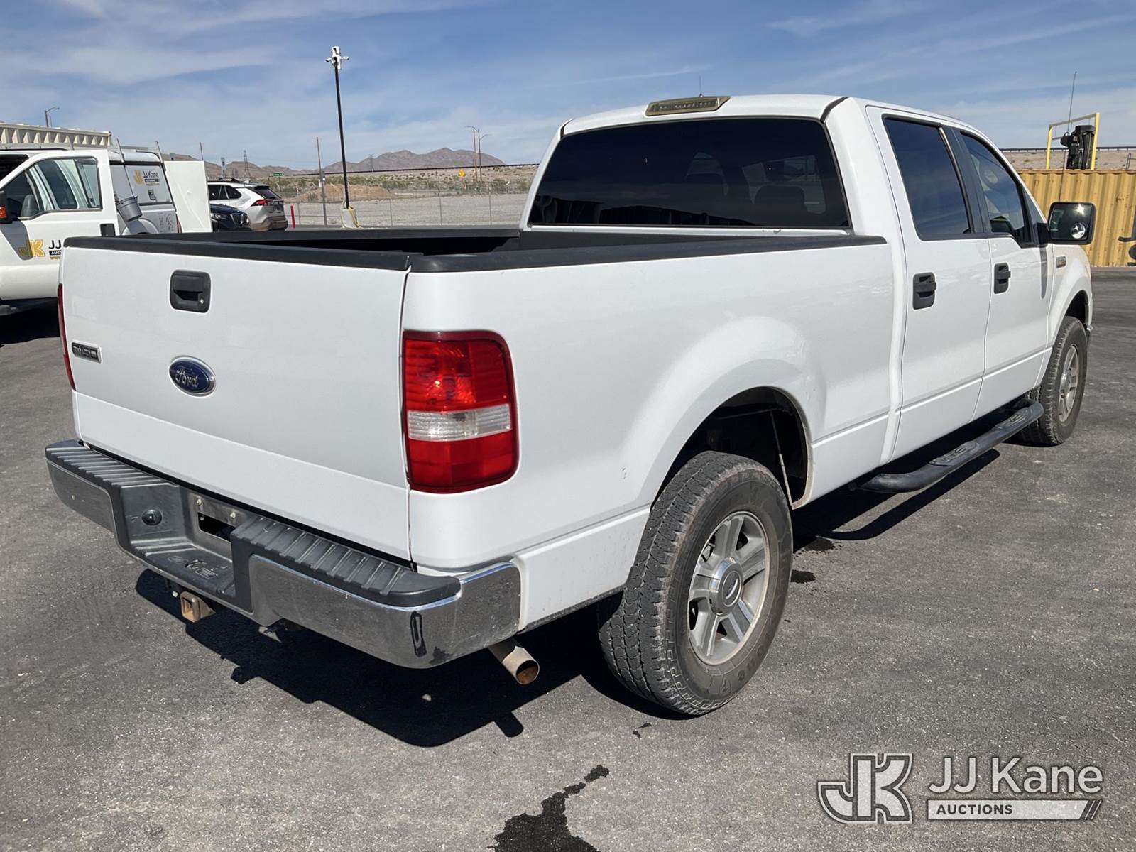 2007 Ford F150 Crew-Cab Pickup Truck, 8-cyl gas, 4wd, 4-Speed Automatic, A/C, (126,034 miles) (Runs & Moves) This is a Titled Item NOTE: This unit is being sold AS IS/WHERE IS via Timed Auction and is located in Las Vegas, NV. Inspection & preview days for this unit are the 2 business days prior to the first day of items closing for this auction, item is located at 14655 Grand Valley Pkwy Las Vegas, NV 89165 and hours of operations are 8a-4p. Titles executed exactly as bidder registered. Ensure your name and/or business name and address in JJ Kane and/or ProxiBid is correct before bidding. For pre-sale questions, please contact Office Staff @ (801) 519-0123 and provide sale date and lot number. Las Vegas Dealer License Number DLR000053086 / OHV000053094. (Buyer is responsible for removal. Assistance by consignor or JJ Kane Auctions is not assured.)