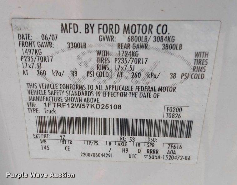 VIN: 1FTRF12W57KD25108
