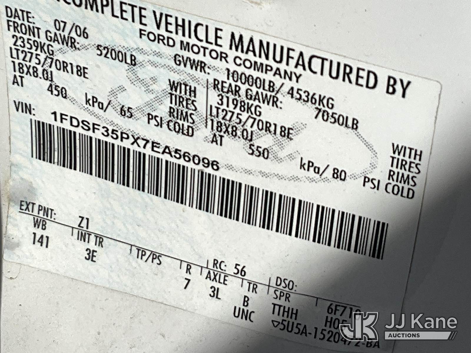 2007 Ford F350 4x4 Enclosed High-Top Service Truck, 6.0L diesel, Auto, A/C, (292,151 miles) (Runs & Moves) This is a Titled Item NOTE: This unit is being sold AS IS/WHERE IS via Timed Auction and is located in Salt Lake City, UT. Inspection & preview days for this unit are the 2 business days prior to the first day of items closing for this auction, item is located at 2353 N Redwood Rd Salt Lake City, UT 84116 and hours of operations are 8a-4p. Titles executed exactly as bidder registered. Ensure your name and/or business name and address in JJ Kane and/or ProxiBid is correct before bidding. For pre-sale questions, please contact Office Staff @ (801) 519-0123. (Buyer is responsible for removal. Assistance by consignor or JJ Kane Auctions is not assured.)