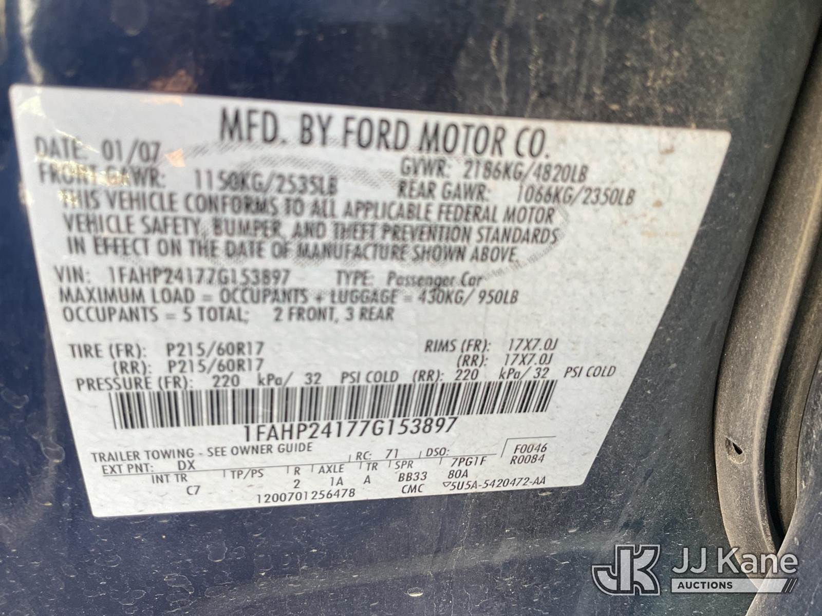 2007 Ford Five Hundred 4-Door Sedan, 3.0L V6 DOHC 24V gas, FWD, 6-Speed Automatic, A/C, (123,460 miles) (Runs & Moves) (Jump To Start, ABS Light On, Traction Control Light On, Paint Damage) This is a Titled Item NOTE: This unit is being sold AS IS/WHERE IS via Timed Auction and is located in Las Vegas, NV. Inspection & preview days for this unit are the 2 business days prior to the first day of items closing for this auction, item is located at 14655 Grand Valley Pkwy Las Vegas, NV 89165 and hours of operations are 8a-4p. Titles executed exactly as bidder registered. Ensure your name and/or business name and address in JJ Kane and/or ProxiBid is correct before bidding. For pre-sale questions, please contact Office Staff @ (801) 519-0123 and provide sale date and lot number. Las Vegas Dealer License Number DLR000053086 / OHV000053094. (Buyer is responsible for removal. Assistance by consignor or JJ Kane Auctions is not assured.)