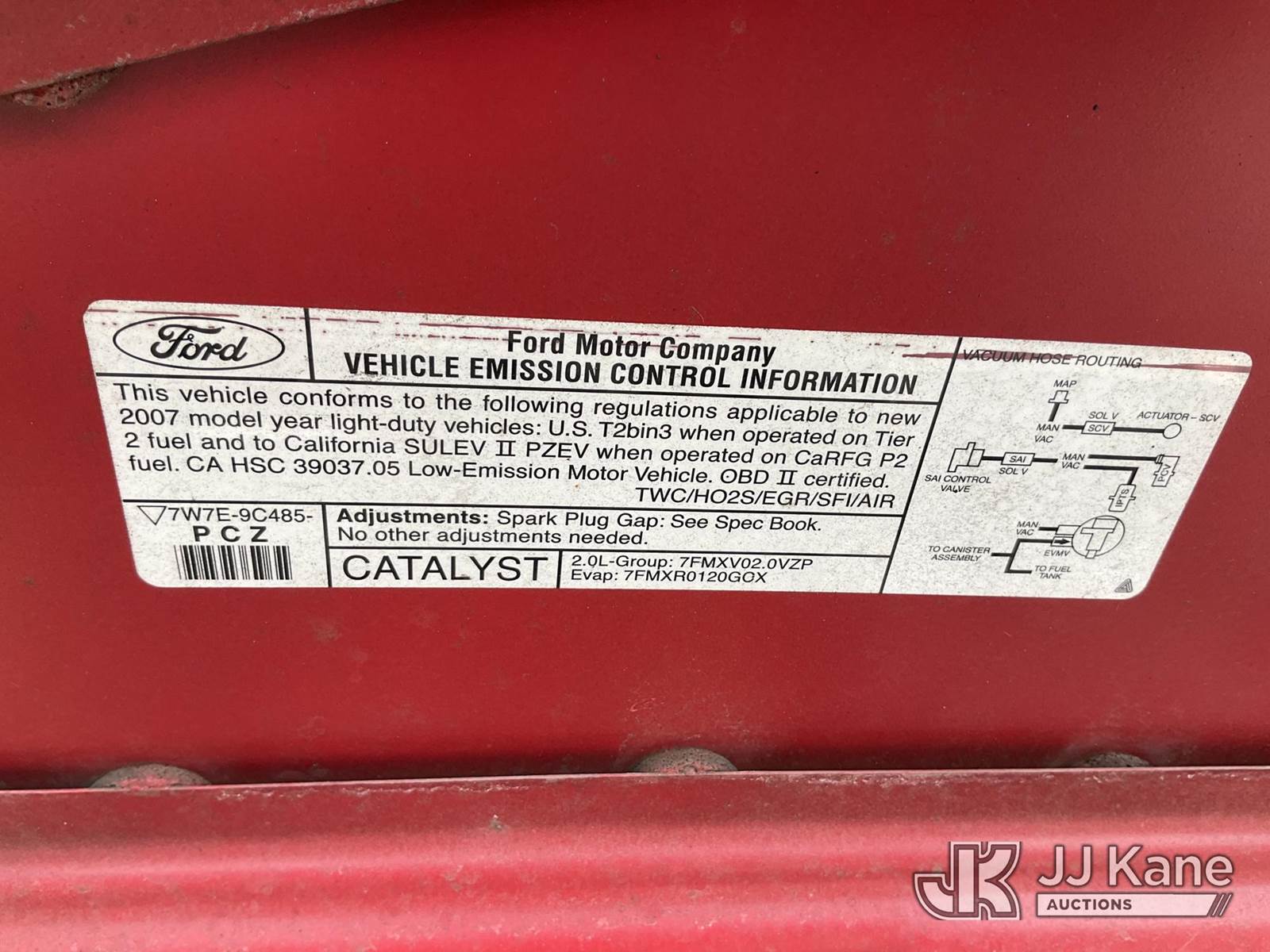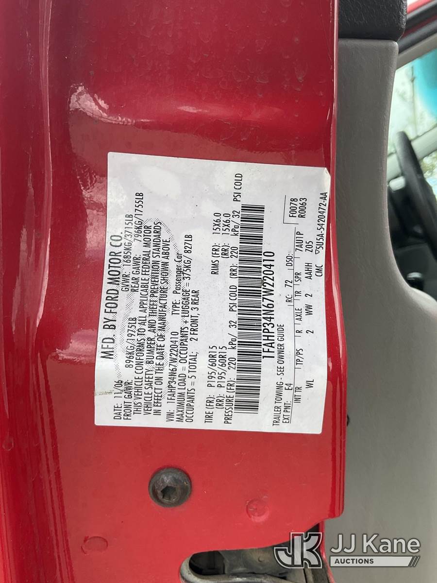 2007 Ford Focus 4-Door Sedan, s/n 1FAHP34N67W220410, 2.0L L4 DOHC 16V FWD, GAS, A/C, (65,814 miles) (Runs & Moves, On Spare Tire, Original Tire In Trunk) (Bidding Restricted to Licensed Vehicle Dealers Only), This is a Titled Item NOTE: This unit is being sold AS IS/WHERE IS via Timed Auction and is located in Dixon, CA. Inspection & preview days for this unit are the 2 business days prior to the first day of items closing for this auction, item is located at 8668 Sparling Ln Dixon, CA 95620 and hours of operations are 8a-4p. For pre-sale questions, please contact JJ Kane Staff at (707) 678-8060 (dixon@jjkane.com). Dealer License Number 45696. (Buyer is responsible for removal. Assistance by consignor or JJ Kane Auctions is not assured.)