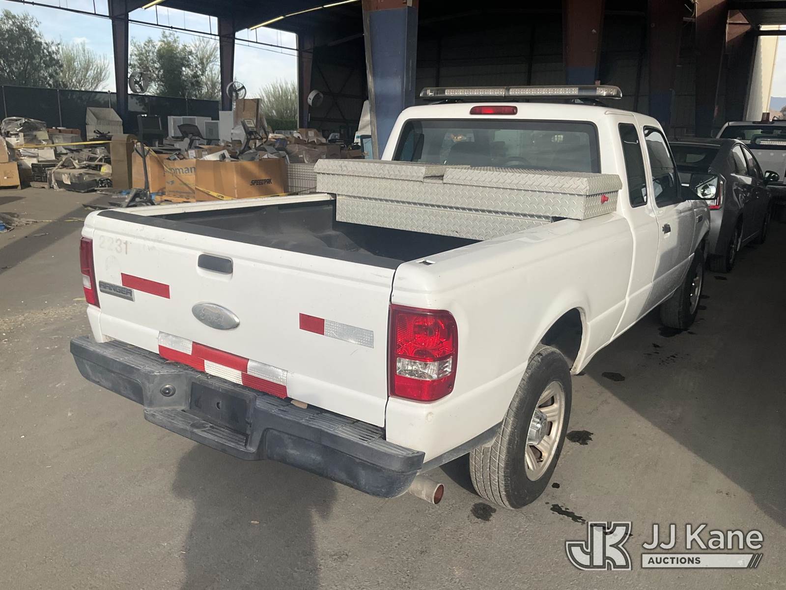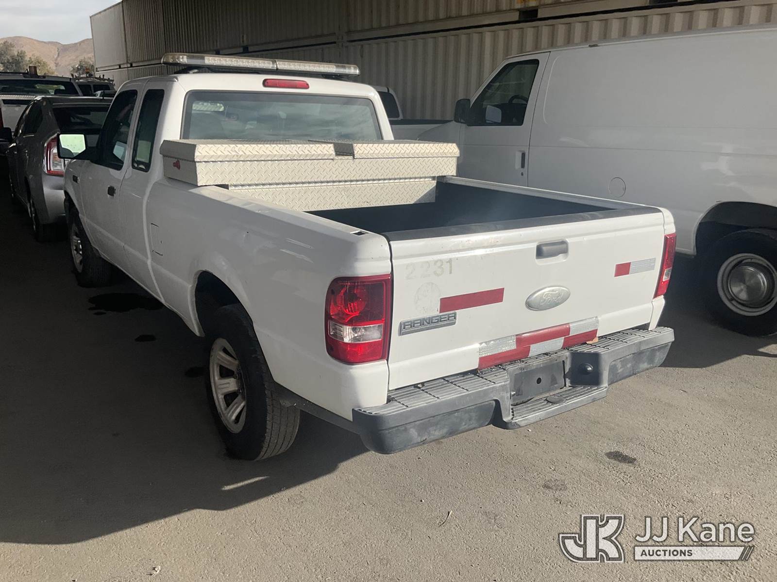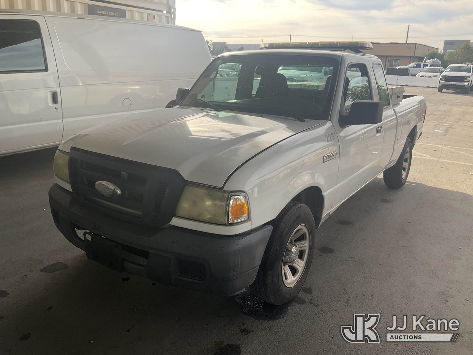 2007 Ford Ranger Pickup Truck, 6-cyl gas, 5-Speed Automatic, A/C, with Toolbox, (113,672 miles) (Runs & Moves) This is a Titled Item NOTE: This unit is being sold AS IS/WHERE IS via Timed Auction and is located in Jurupa Valley, CA. Inspection & preview days for this unit are the 2 business days prior to the first day of items closing for this auction, item is located at 4510 Muth Way Jurupa Valley, CA 92509 and hours of operations are 8a-4p. For pre-sale questions, please contact please contact Office Staff @ (310) 353-7140. Dealer License Number 45696. (Buyer is responsible for removal. Assistance by consignor or JJ Kane Auctions is not assured.)