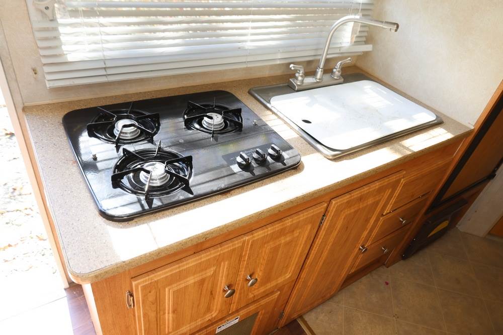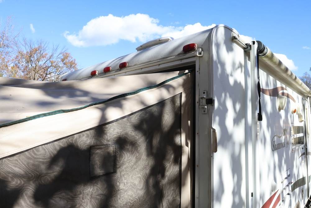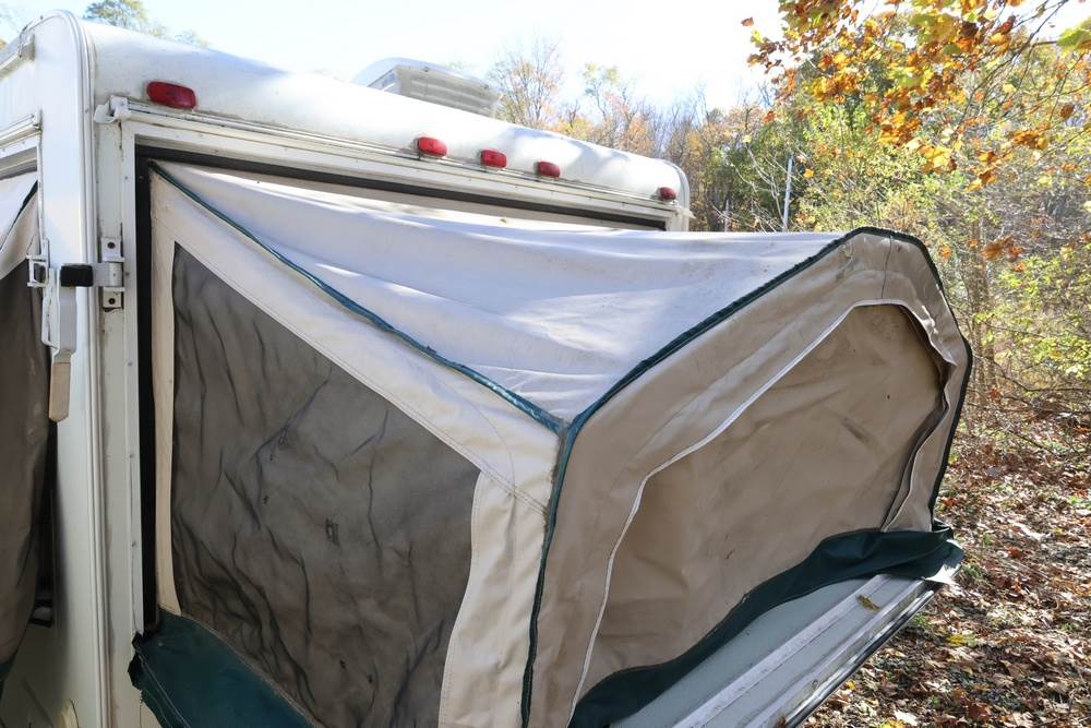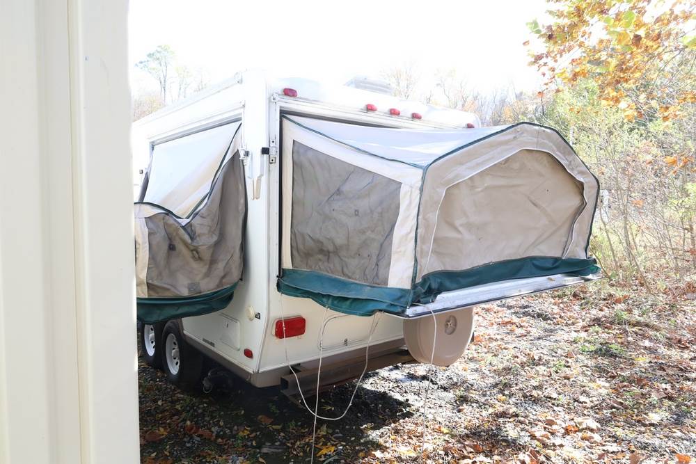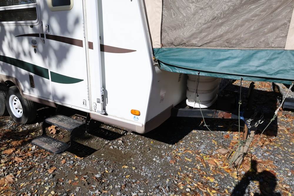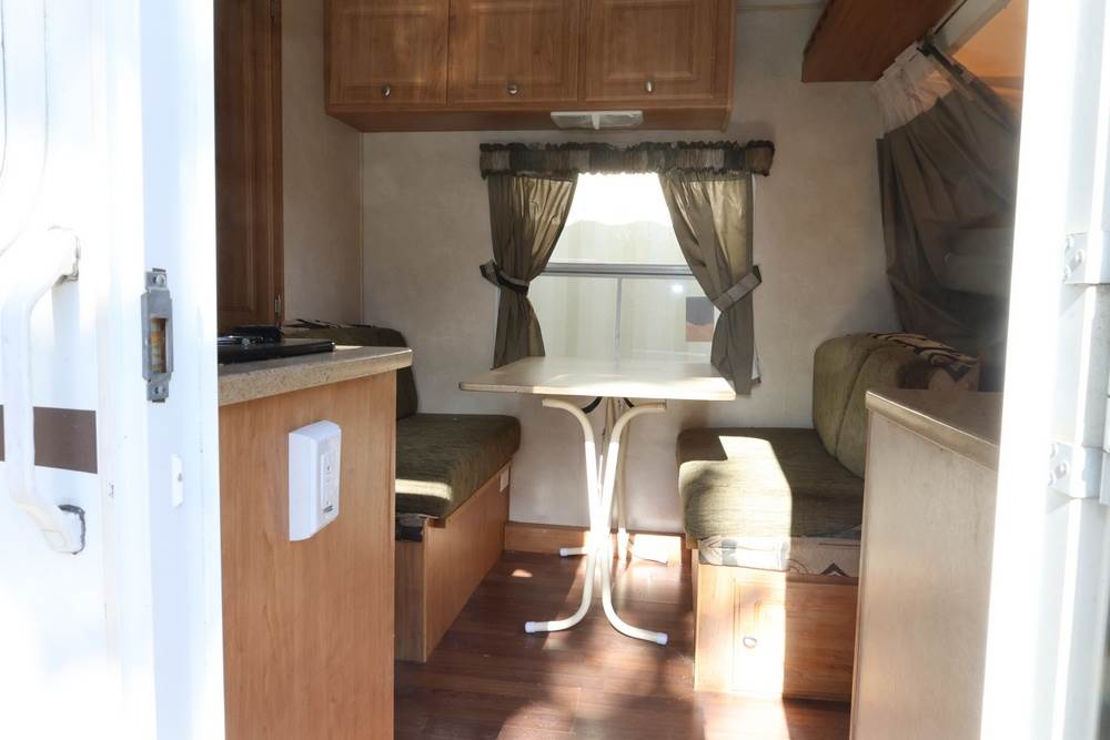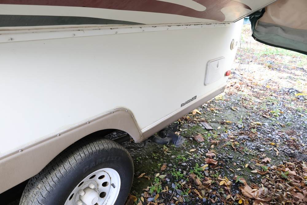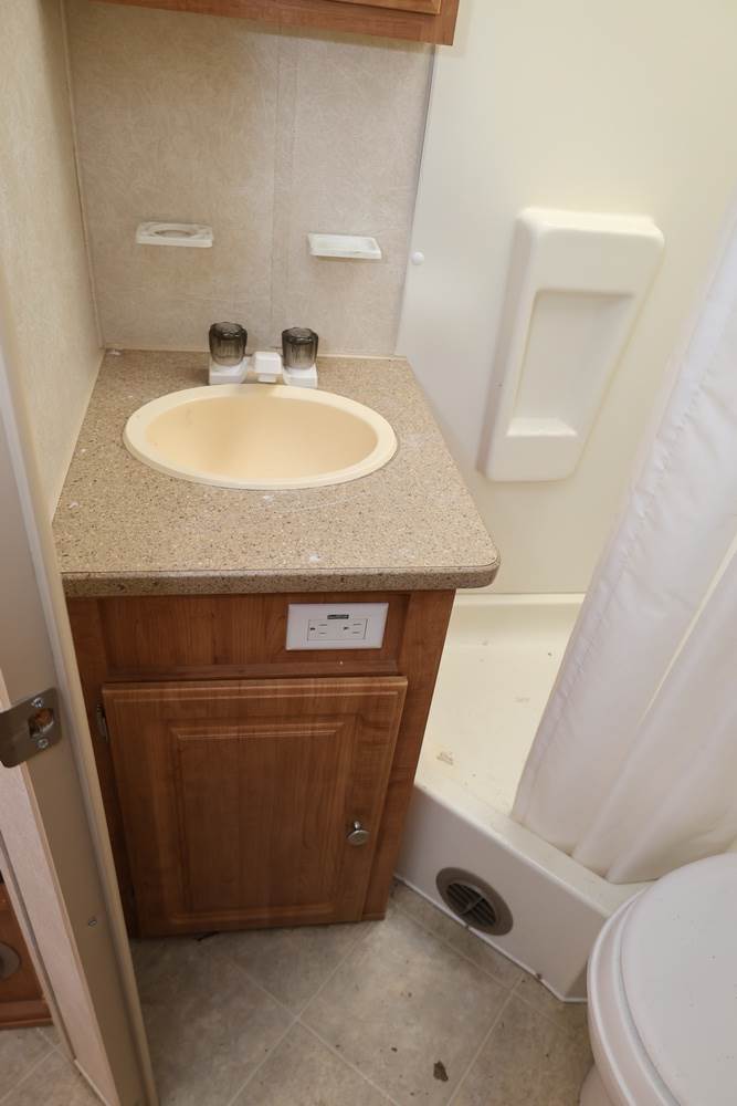 2007 Forest River Shamrock pop-out travel trailer VIN: 4X4TFLT267D095820. With a hybrid expandable design that includes canvas-covered pop-out sleeping areas on both ends and one side. The trailer features dual axles with white steel wheels, exterior graphics, a side awning, a three-burner gas stove, a dual basin kitchen sink, an overhead air conditioning unit, wood-paneled cabinetry, a dinette with upholstered seating, and a built-in Domestic refrigerator with matching wood paneling. Floor soft in areas. Title available Title will transfer via dealer paperwork in Highland NY.