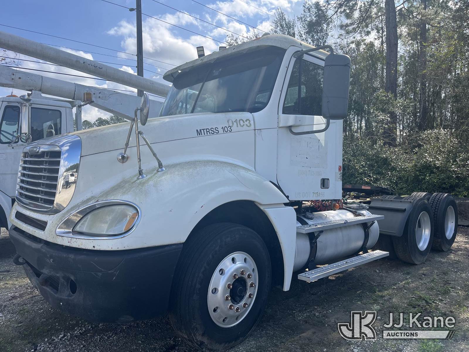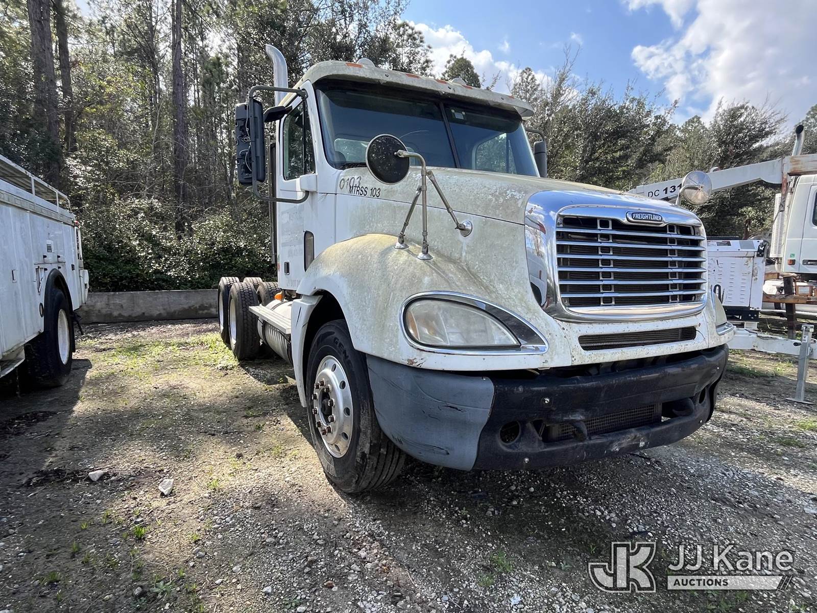2007 Freightliner Columbia 120 Truck Tractor, Detroit Series 60 14.0L 10-spd, 6X4, diesel, with sliding 5th wheel, True Mileage Unknown (Does Not Run, Does Not Move, Operating Condition Unknown) (Body Damage, Paint Damage, Dash Removed) This is a Titled Item NOTE: This unit is being sold AS IS/WHERE IS via Timed Auction and is located in Jacksonville, FL. Inspection & preview days for this unit are by appointment only; please contact us at contact@jjkane.com or 84-Go-JJKane for more details. For more information & removal arrangements please contact James Hobson @ (904) 634-7433. (Buyer is responsible for removal. Assistance by consignor or JJ Kane Auctions is not assured.)