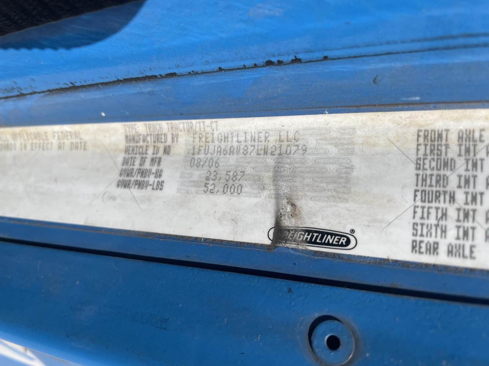 2012 Freightliner Columbia sleeper. Detroit 455 h.p. diesel. 908K. Clean interior w/ Sleeper and storage quarters. Good rubber. 33,000 GVWR.