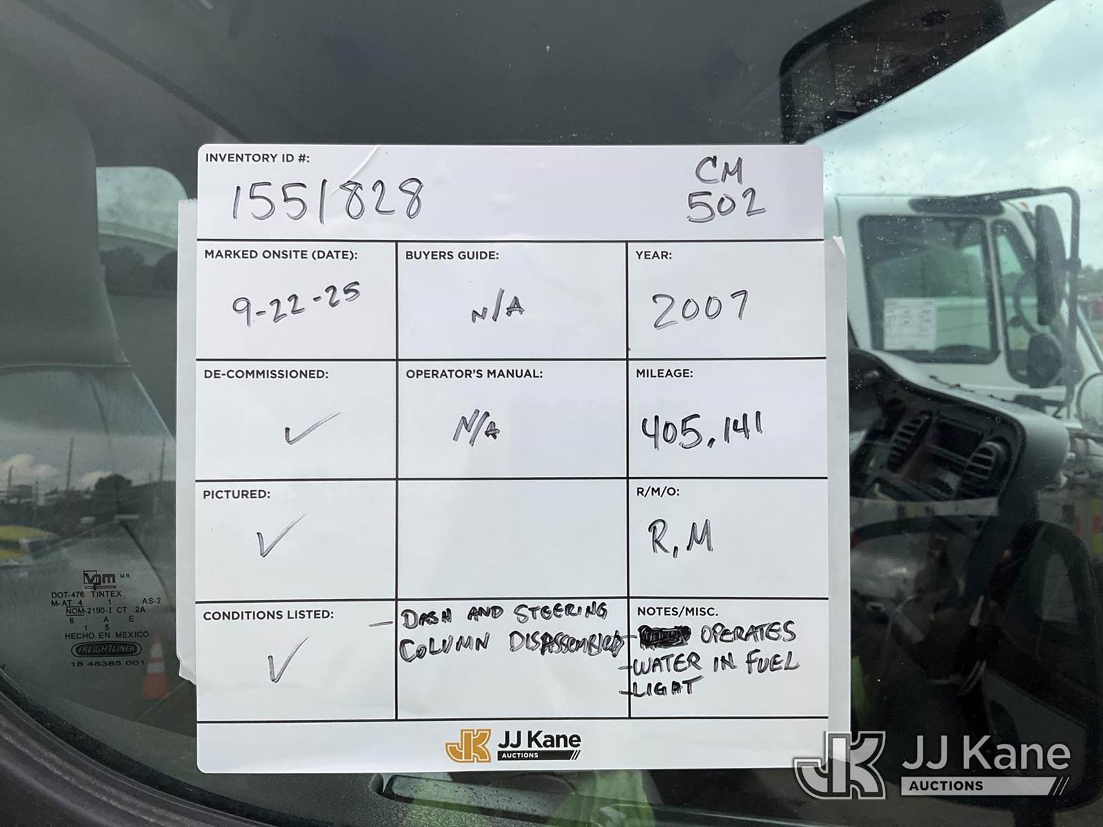 2007 Freightliner M2 106 Dump Chipper Truck, 7.2L L6 DIESEL Auto, 4X2, (405,141 miles) (Runs & Moves)( Dash And Steering Column Disassembled, Water In Fuel Light,) This is a Titled Item NOTE: This unit is being sold AS IS/WHERE IS via Timed Auction and is located in Charlotte, MI. Inspection & preview days for this unit are the 2 business days prior to the first day of items closing for this auction, item is located at 750 Island Hwy Charlotte, MI 48813 and hours of operations are 8a-4p. For pre-sale questions, please contact Corey Cook at (517) 983-0796 or corey.cook@jjkane.com (Buyer is responsible for removal. Assistance by consignor or JJ Kane Auctioneers is not assured.)