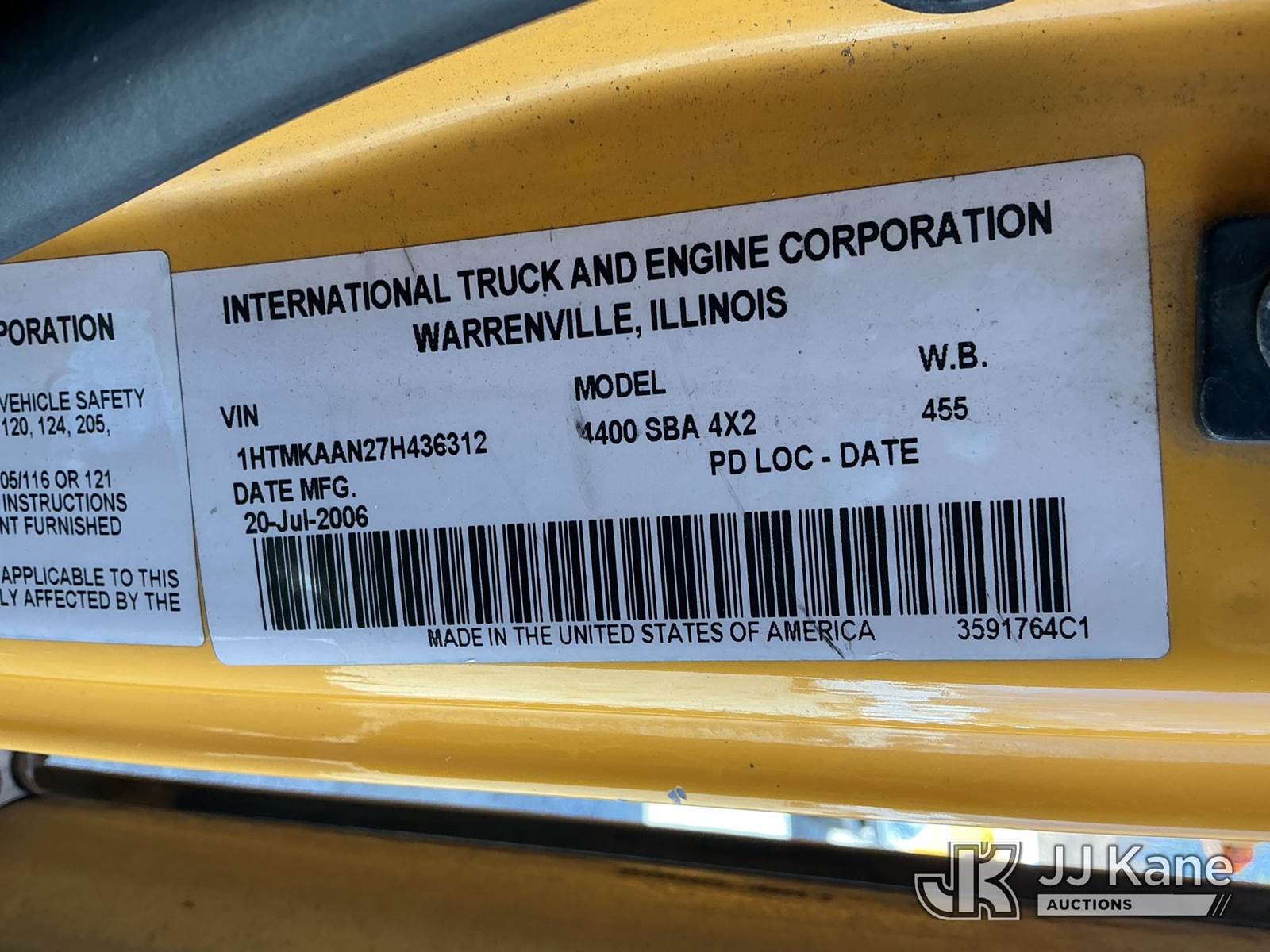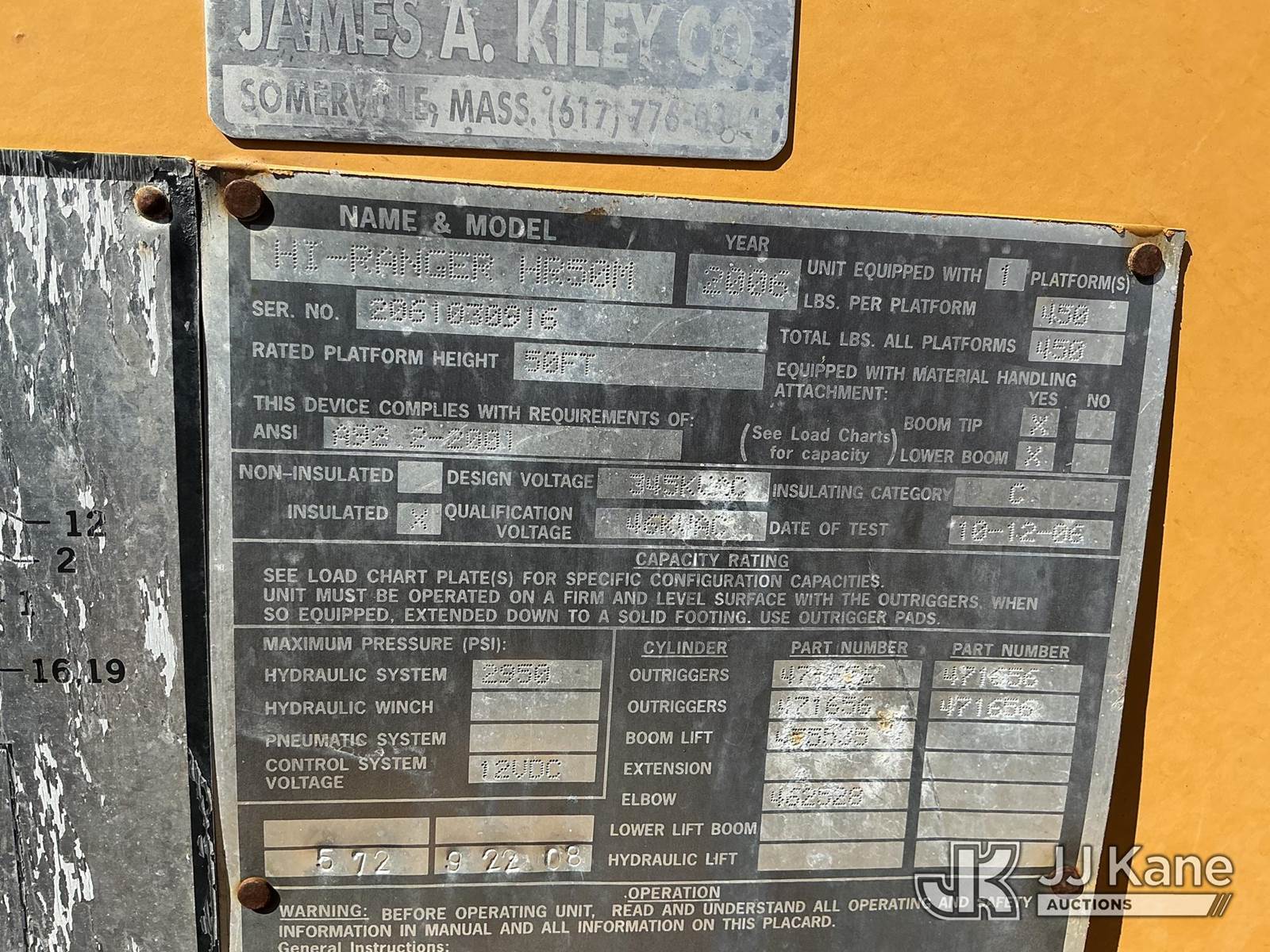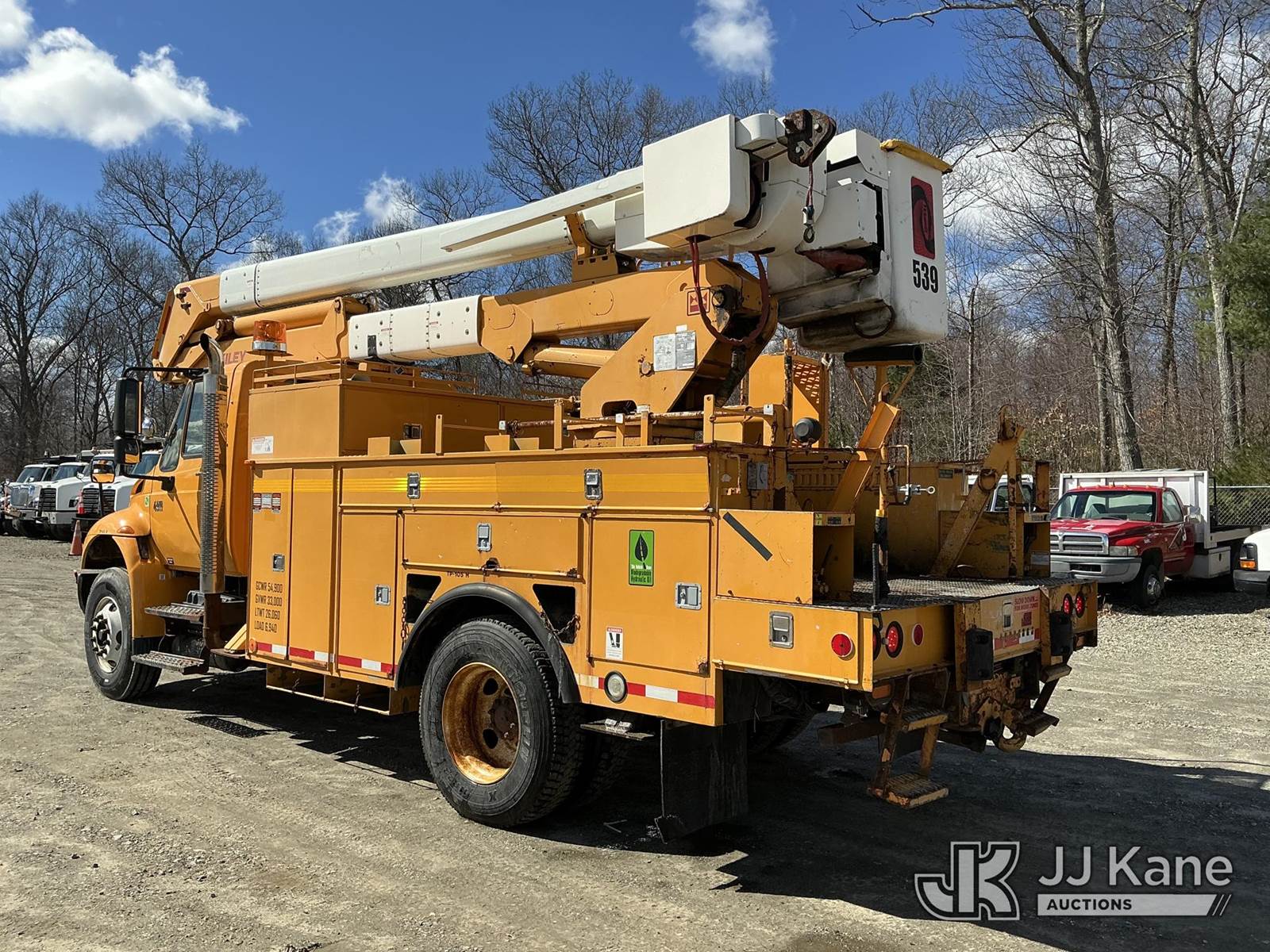 HiRanger HR50-M, 55 ft, Material Handling Bucket Truck s/n 2061030916, with single-man bucket & 4 hyd outriggers, rear mounted on 2007 International 4400 Utility Truck, DT466 4X2, diesel, Auto, A/C, (120,808 miles) (Runs & Moves) (Damaged/Missing Front Drive Side Outrigger Control, Upper Condition Unknown) (Reads 12,538 hours) This is a Titled Item NOTE: This unit is being sold AS IS/WHERE IS via Timed Auction and is located in Shrewsbury, MA. Inspection & preview days for this unit are the 2 business days prior to the first day of items closing for this auction, item is located at 11 Fortune Blvd Shrewsbury, MA 01545 and hours of operations are 8a-4p. For pre-sale questions, please contact Rob Gifford @ (508) 864-4126. (Missing manuals, See Auction Company for Manufacturers Information to obtain manuals) (Buyer is responsible for removal. Assistance by consignor or JJ Kane Auctions is not assured.)
