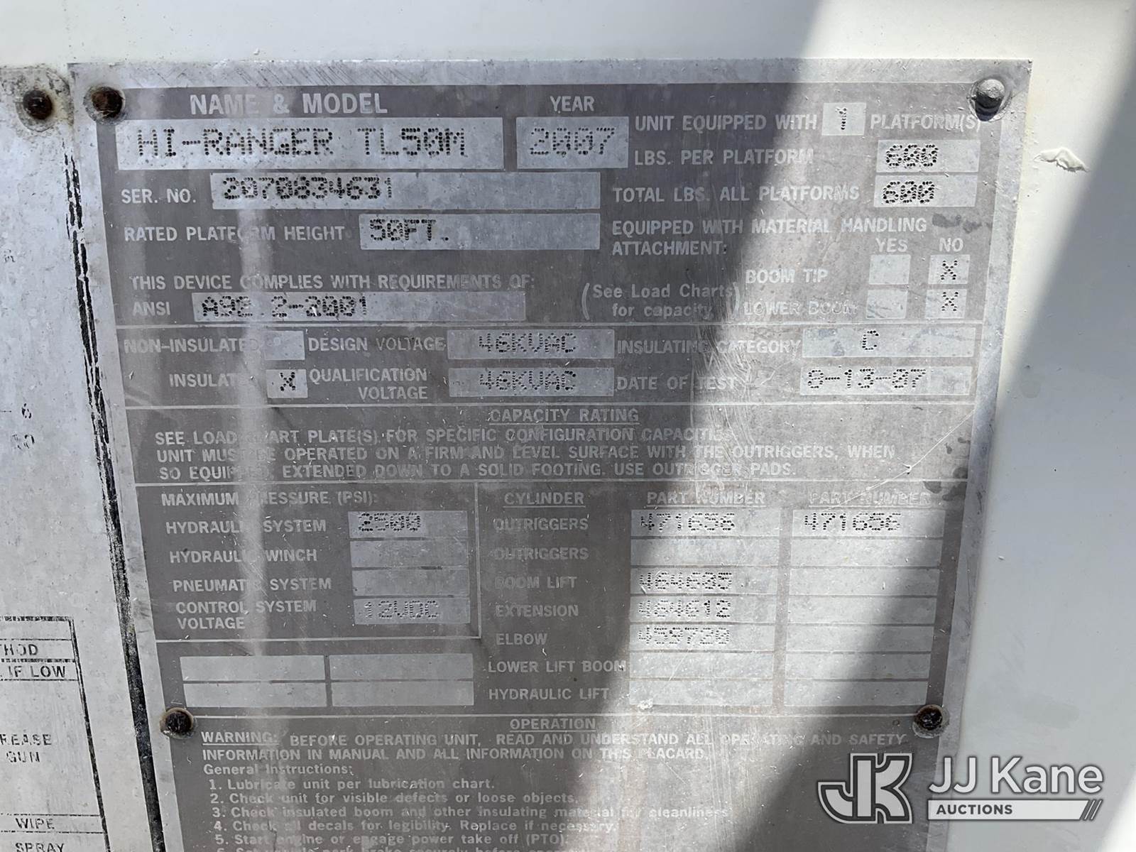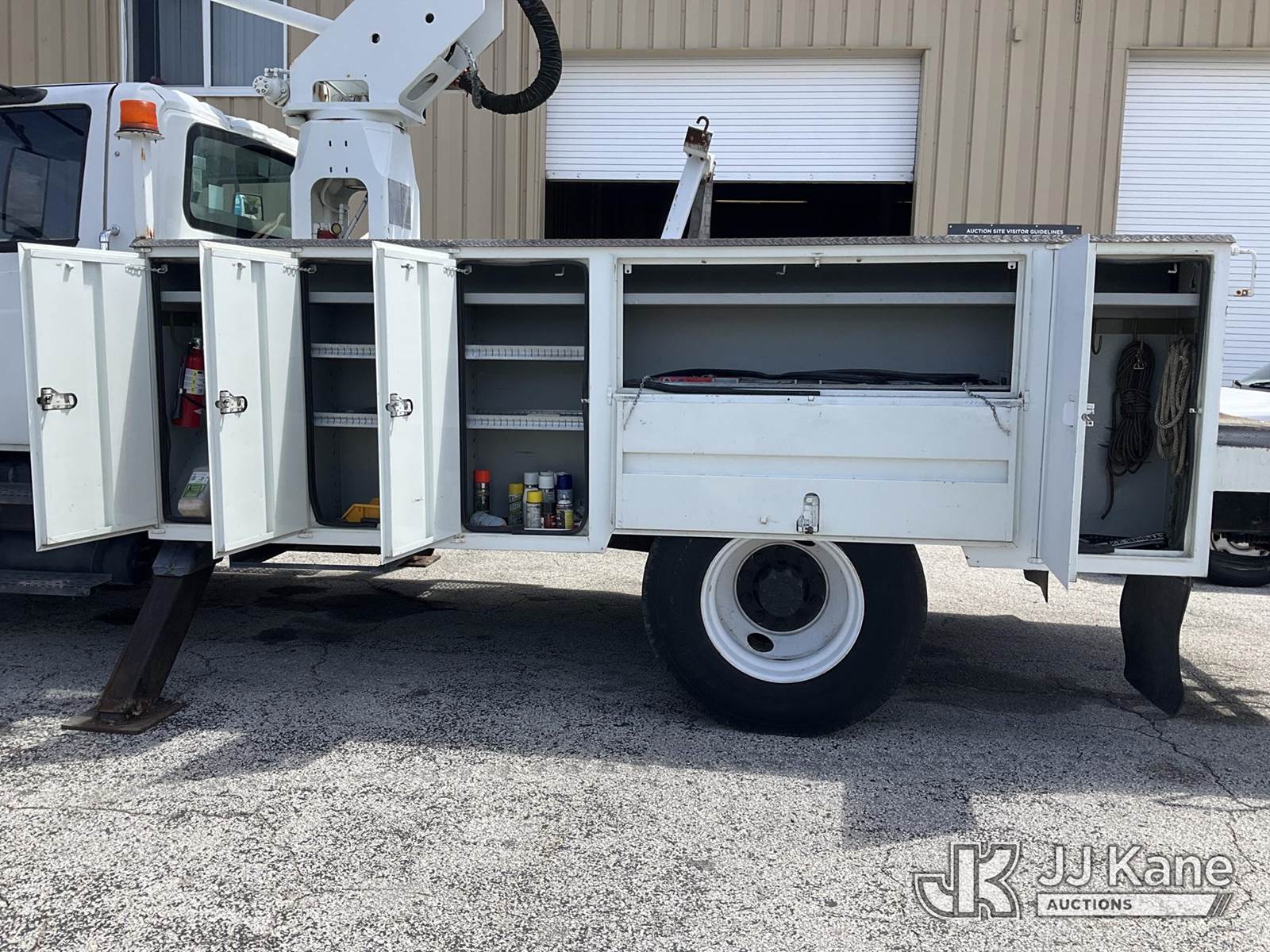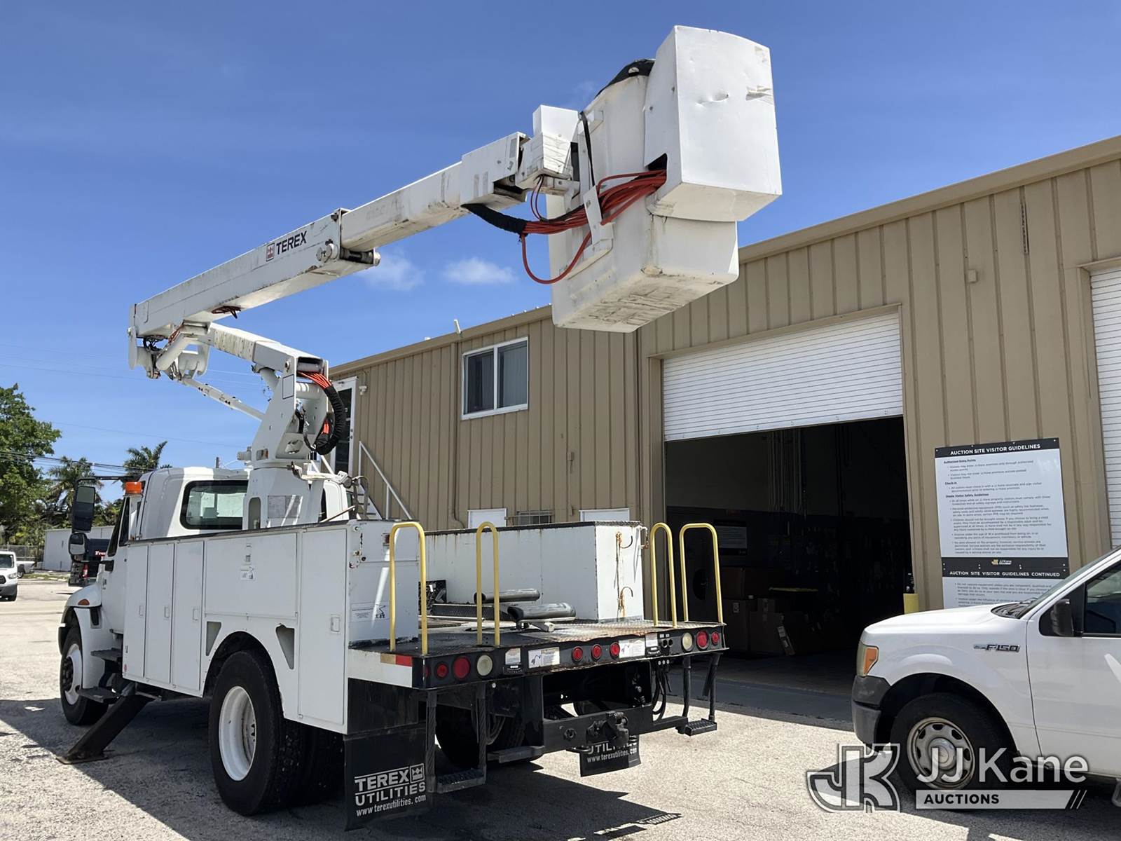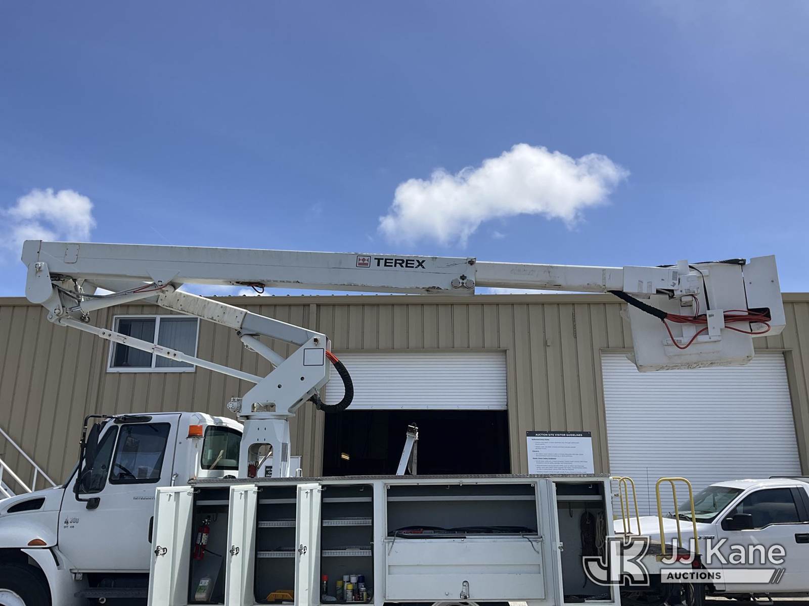 HiRanger TL50M, 55 ft, Bucket Truck s/n 2070834631, with Two-Man Bucket, mounted behind cab on 2007 International 4300 Utility Truck, 7.6L L6 DIESEL 4X2, Auto, A/C, (12,983 miles) (Runs & Moves, Upper Unit Operates) (Body Damage & Rust, Passenger Side Rear Tool Box Door Missing) (FL Residents Purchasing Titled Items – tax, title & registration fees will be collected at the maximum rate of $400.00 under 25,999 and $800.00 for Over 26,000 and $250.00 for Trailers – Proof of insurance is mandatory; Out of State Residents Purchasing Title Items – tax will be collected based upon your state rate) (Reads 4,226 hours) This is a Titled Item NOTE: This unit is being sold AS IS/WHERE IS via Timed Auction and is located in West Palm Beach, FL. Inspection & preview days for this unit are the 2 business days prior to the first day of items closing for this auction, item is located at 2570 Old Okeechobee Rd West Palm Beach, FL 33409 and hours of operations are 8a-4p. For pre-sale questions, please contact Andy Garcia @ (561) 215-0085. (Missing manuals, See Auction Company for Manufacturers Information to obtain manuals) (Buyer is responsible for removal. Assistance by consignor or JJ Kane Auctions is not assured.)