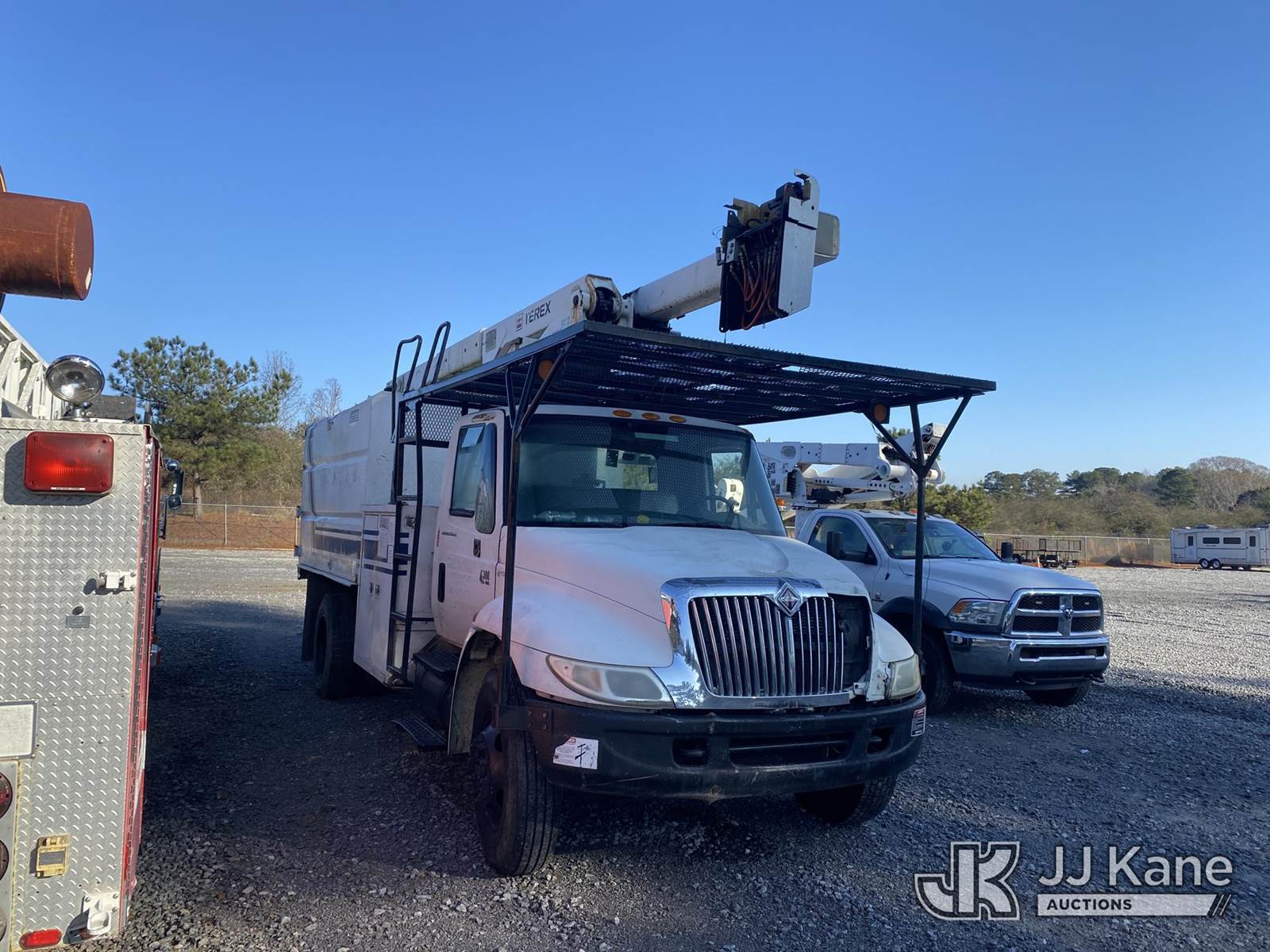HiRanger/Terex XT55, 60 ft, Over-Center Bucket Truck s/n 2060530158, mounted behind cab on 2007 International 4300 Chipper Dump Truck, DT466 diesel, 4X2, manual, True Mileage Unknown (Not Running, Condition Unknown, Missing Batteries, No Bucket, Grill Damage, Body/ Paint Damage) This is a Titled Item NOTE: This unit is being sold AS IS/WHERE IS via Timed Auction and is located in Villa Rica, GA. Inspection & preview days for this unit are the 2 business days prior to the first day of items closing for this auction, item is located at 100 Liberty Rd Villa Rica, GA 30180 and hours of operations are 8a-4p. For pre-sale questions, please contact Office Staff @ (470) 590-8453. (Missing manuals, See Auction Company for Manufacturers Information to obtain manuals) (Buyer is responsible for removal. Assistance by consignor or JJ Kane Auctions is not assured.)
