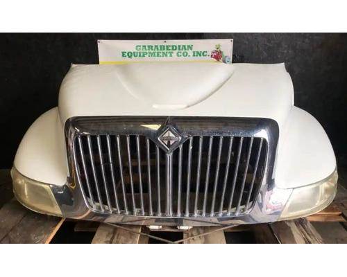 2007 International 4200 Hood, 41"L, Set Back Axle, Damage On Backside Behind Passenger Side Headlight, Paint Peeling Under Headlights, Chipped On Top Rear Edge. Repairable For Reuse. P/N 3535801C98, 3807254C97, 3535801C99