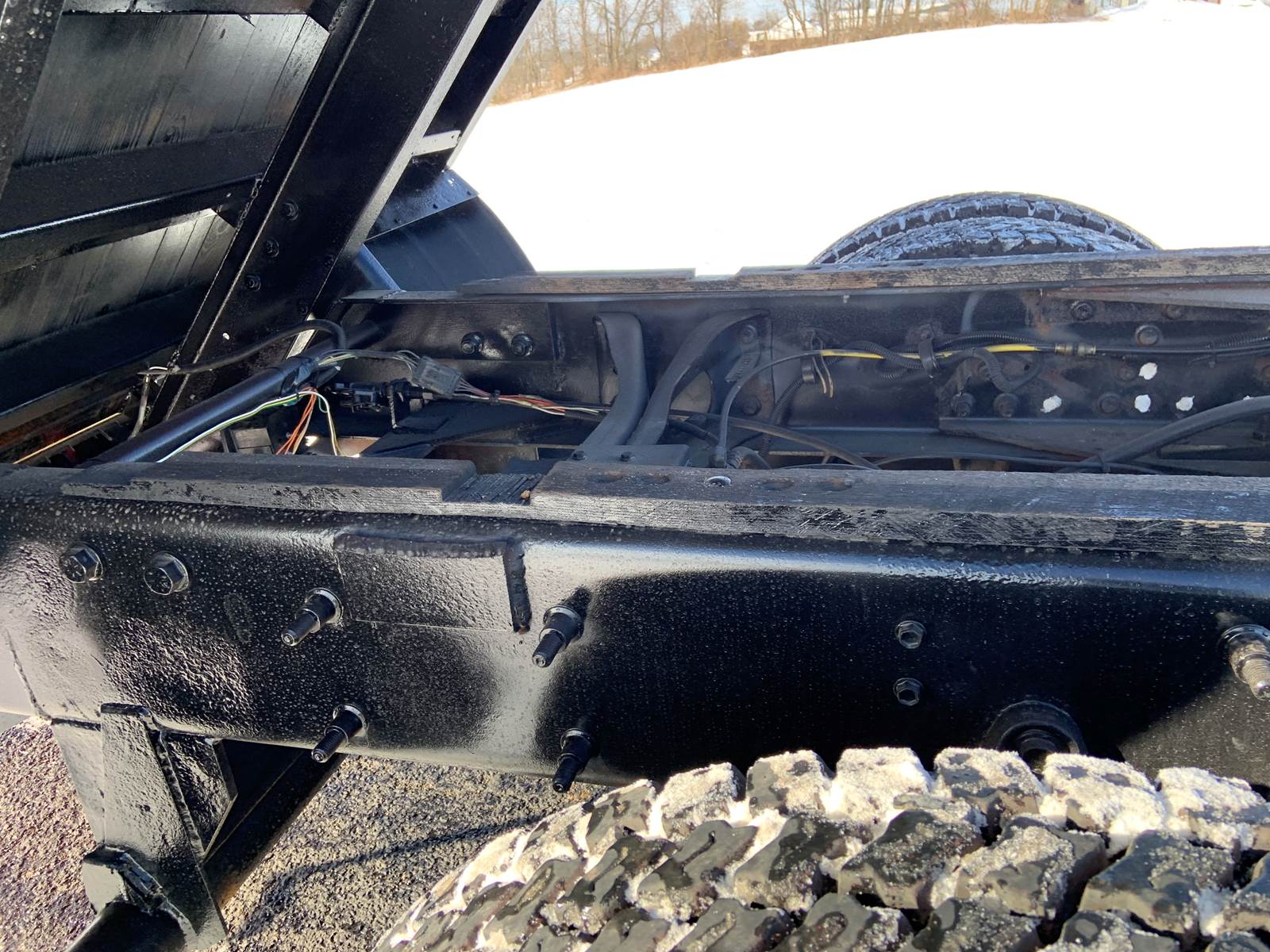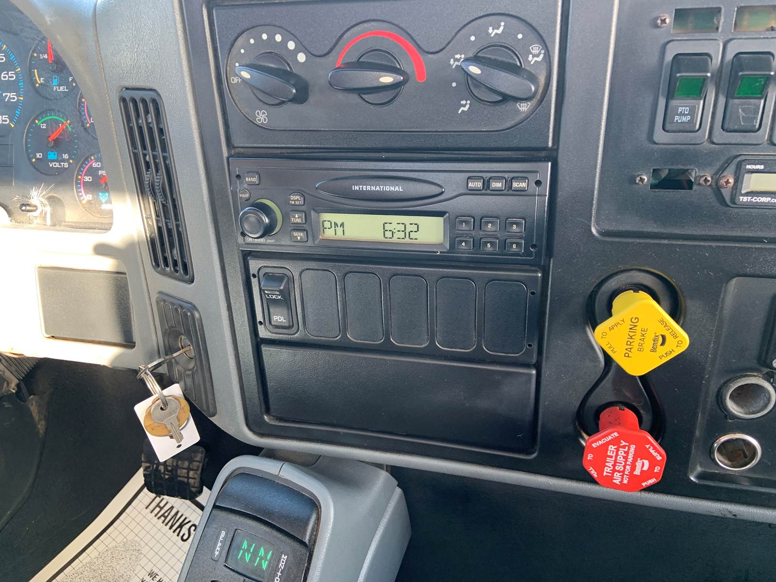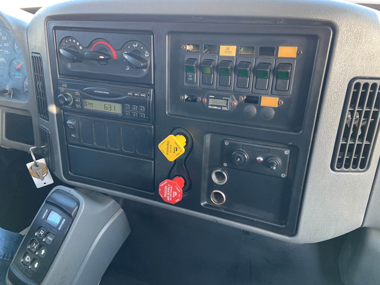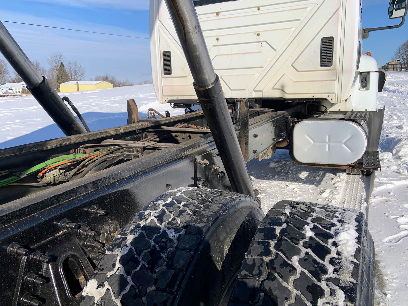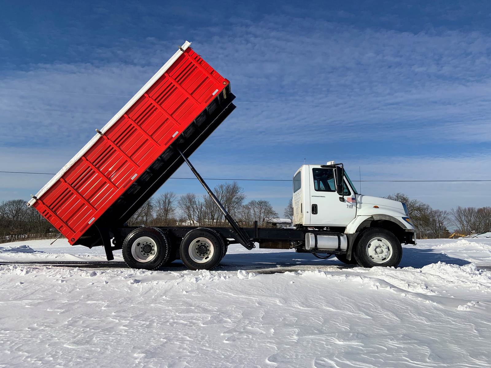 2007 International 7400 with 18 Foot Grain Bed with Roll Tarp, 18 Foot Grain Bed with 52 Inch Sides and Roll Tarp, International DT466 Diesel 7.6 Liter Engine, 260 HP, Allson 3000 RDS Automatic 6 Speed Transmission, GVWR - 46,000 Lbs, Front Axle - 12,000 Lbs, Tandem Rear - 34,000 Lbs, Air Brakes, 192 Inch Wheelbase, 124 Inches Cab To Axle, Rear Tires - 11R22.5, Front Floats - 315/80 R22.5, Tilt Steering, Cruise Control, Air To Rear, Pintle Hitch with D-Rings, Odometer - 141,459 Miles, Hr Meter - 11,772 Hours, No DEF and No DPF