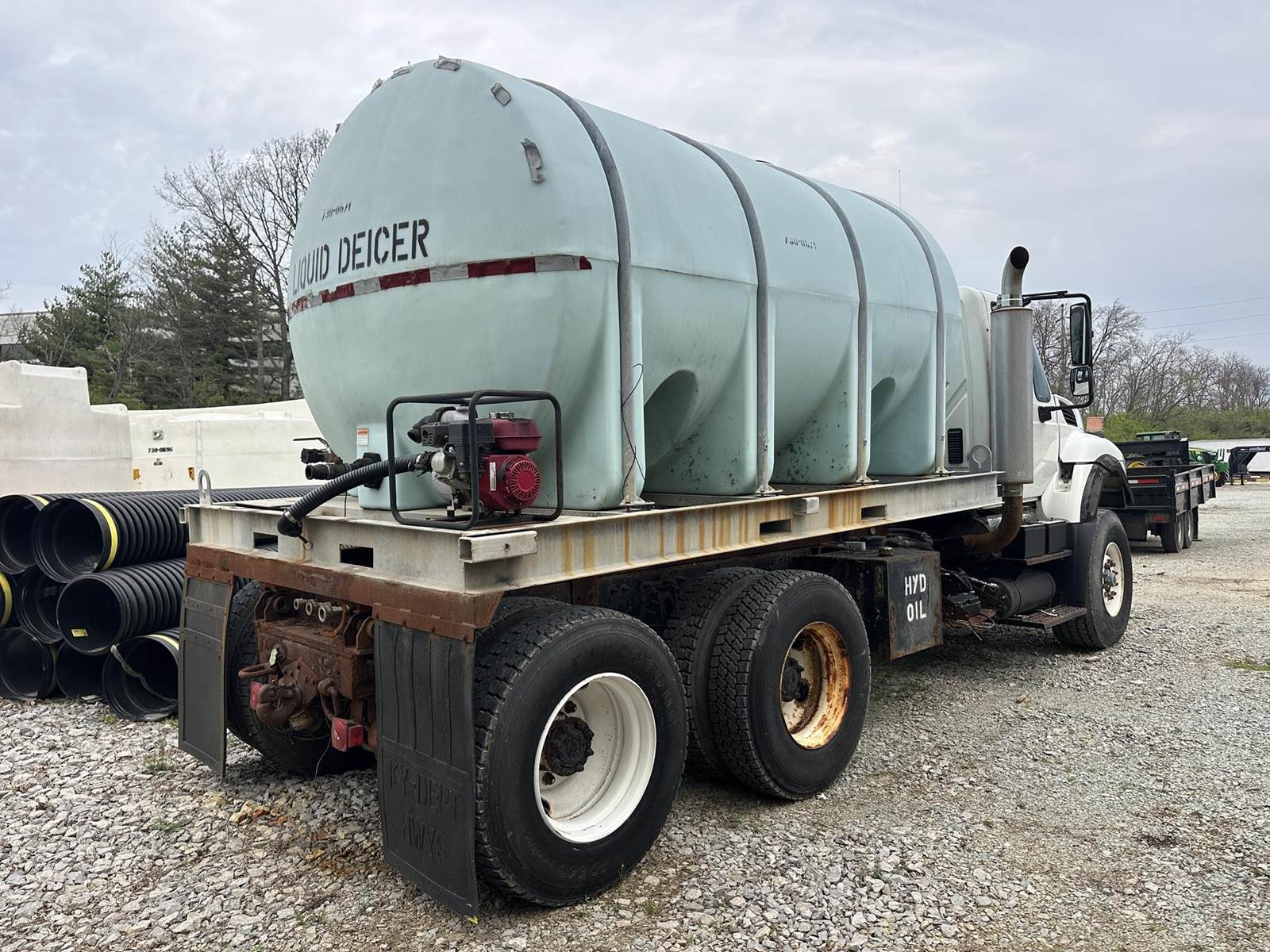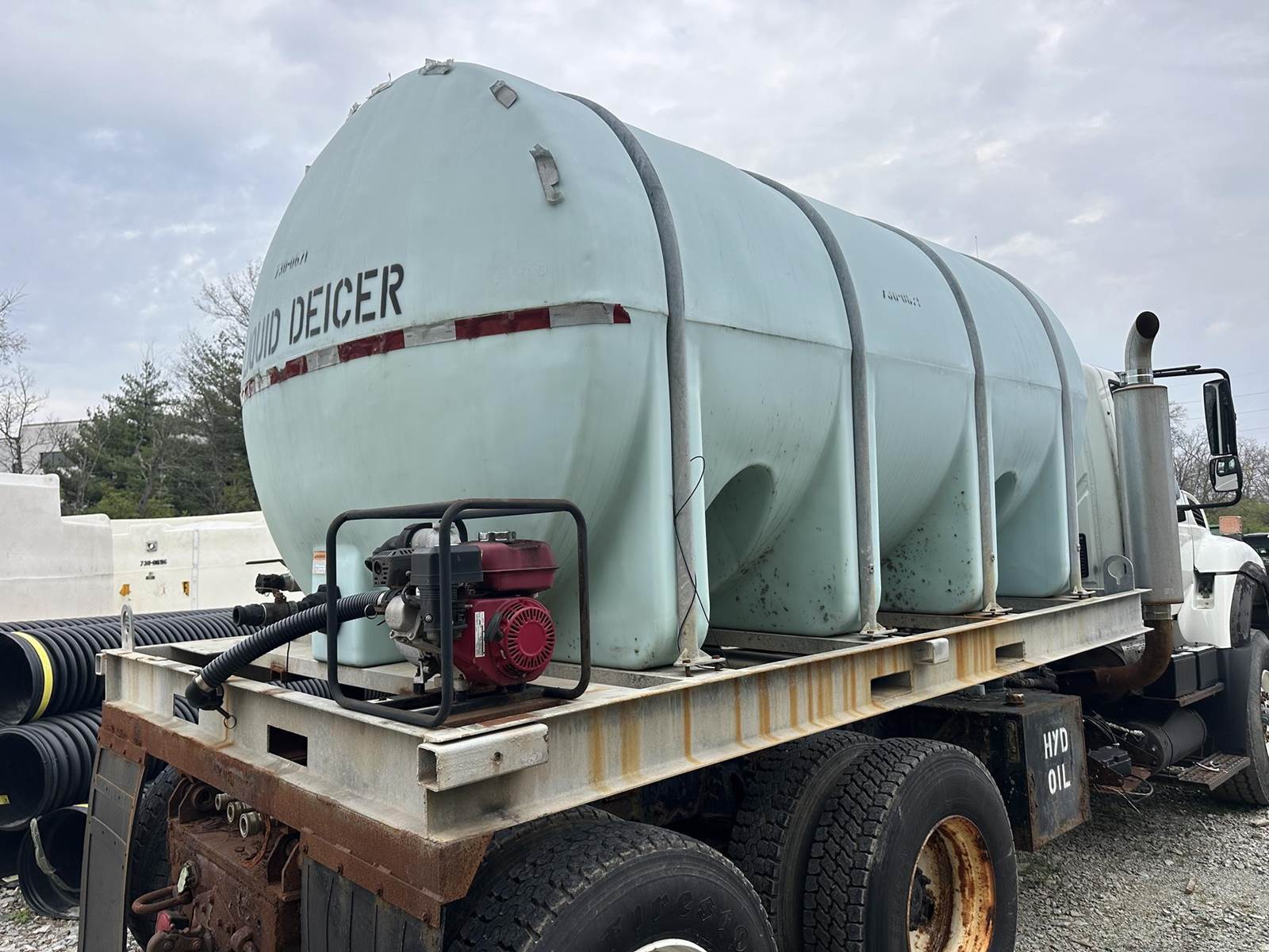 Cummins 6 Cylinder Turbo Diesel Engine, 8LL Manual Transmission, 60000LB GVWR, Spring Ride, Honda WB30XT Pump Engine, Approx 3135 Gallon Tank, Heat, A/C, Radio, 425/65R22.5 Front Tires, 11R22.5 Rear Tires