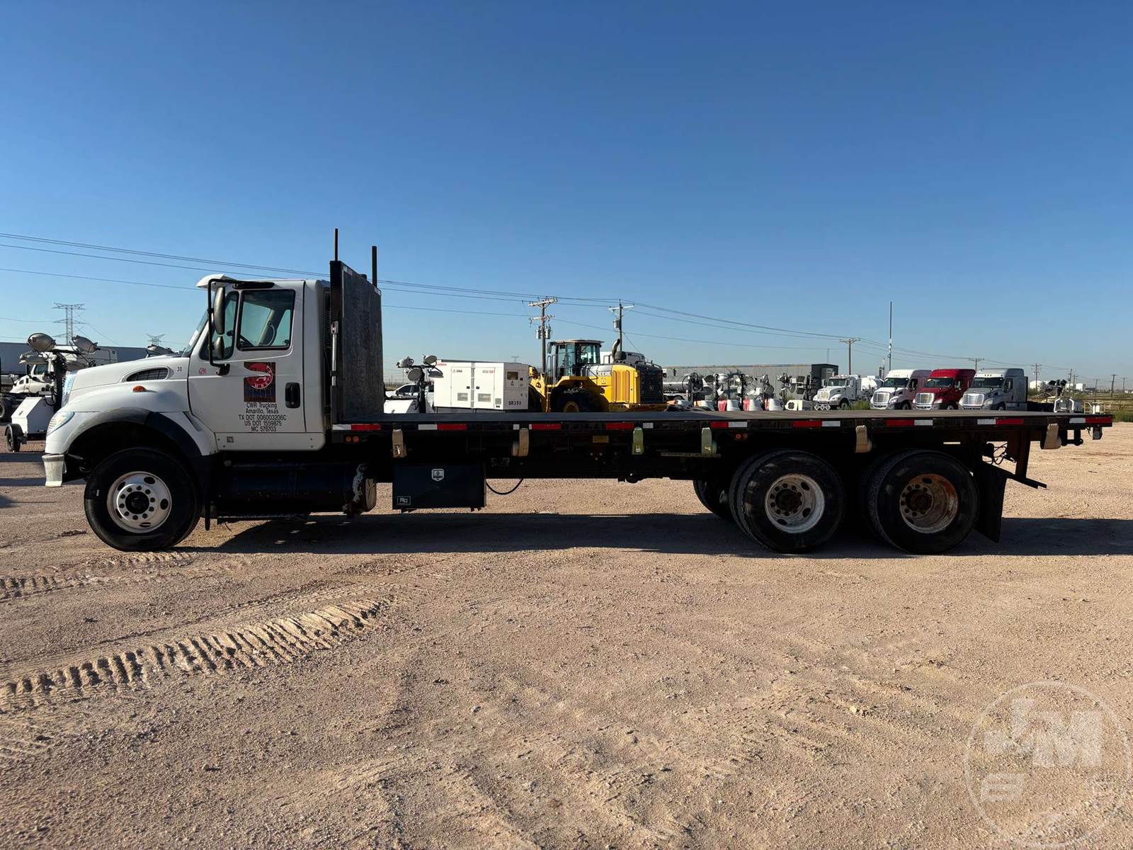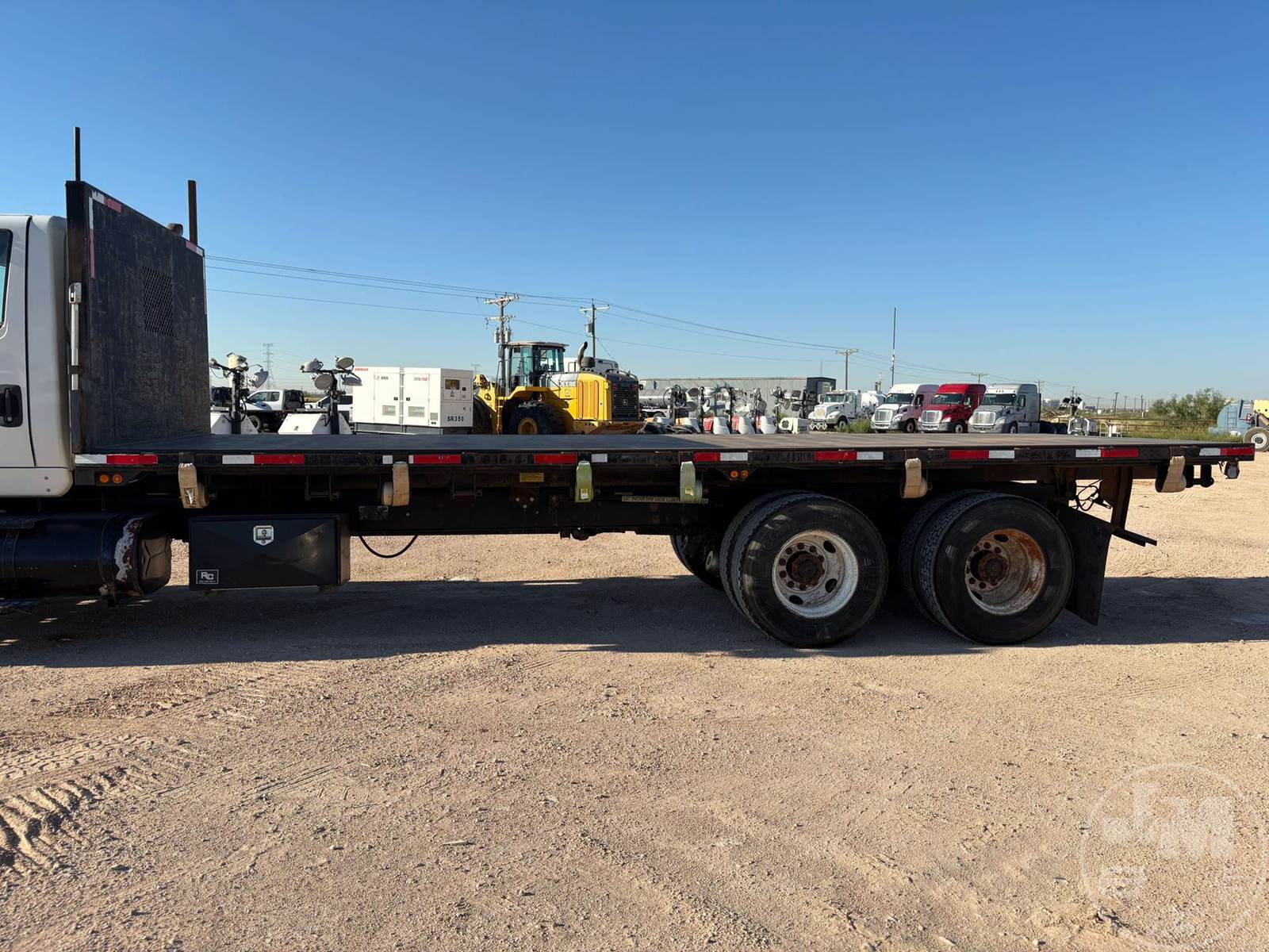 TANDEM AXLE REGULAR CAB FLATBED TRUCK, 24', STEEL BED, CUMMINS, ISM , 280-500 HP HP, EATON FULLER, 10 SPEED, SPRING SUSPENSION, DIFF LOCK, 13K FRONTS, 40K REARS, 53000 LBS GVWR, STEEL DISC WHEELS, 11R22.5 TIRES, CNV ODO/ENGINE HOURS