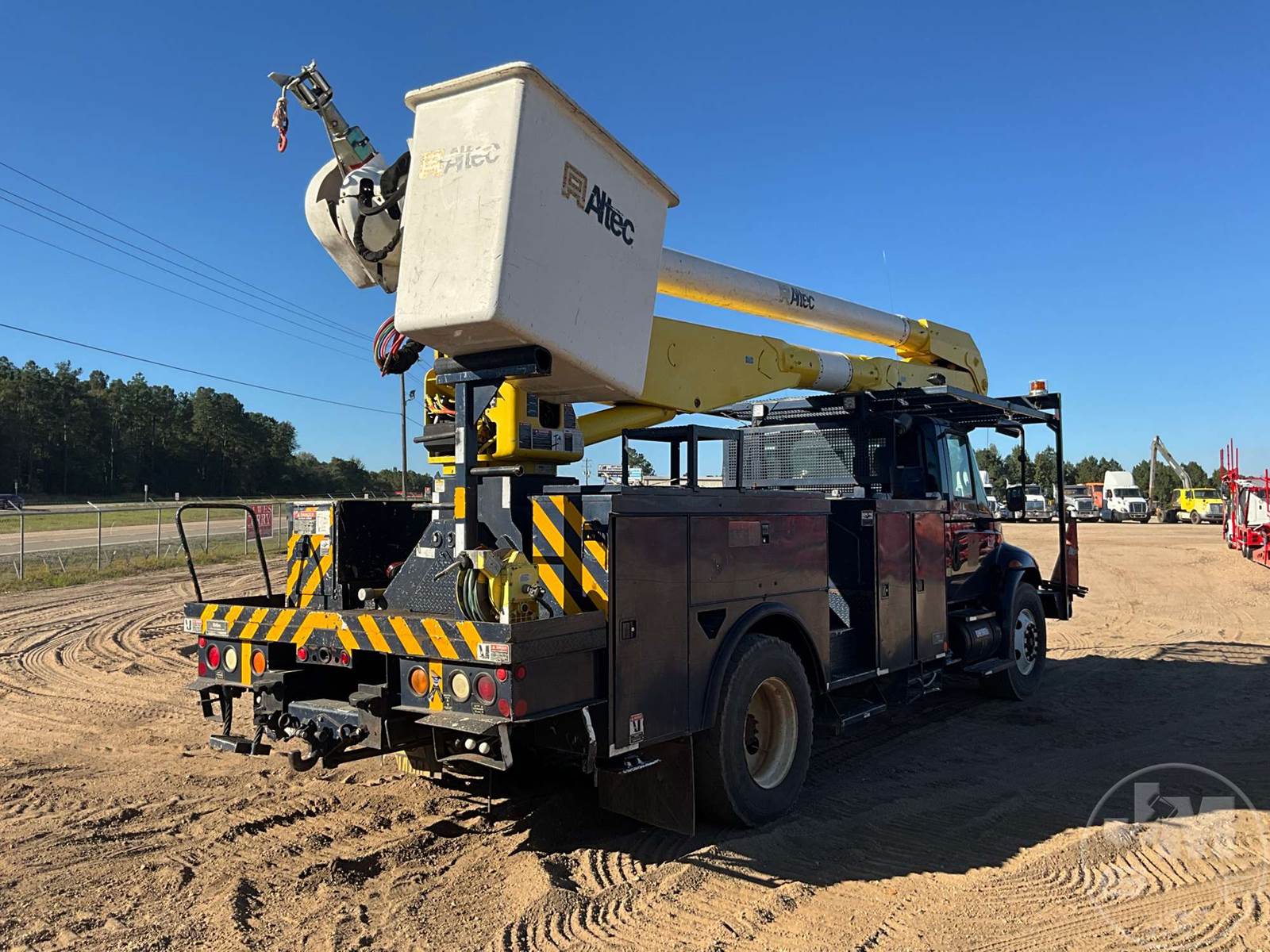 BUCKET TRUCK ALTEC, REAR MOUNT BOOM, BOOM SN 0407BZ5095, INTERNATIONAL, DT466, SINGLE AXLE, 6 SPEED, AIR RIDE SUSPENSION, 188 " WB, UTILITY BODY, TWO MAN BUCKET, 4 HYDRAULIC OUTRIGGERS, HOUR METER READS: 10017, ODOMETER READS: 201740, ***MILEAGE IS IN KM***