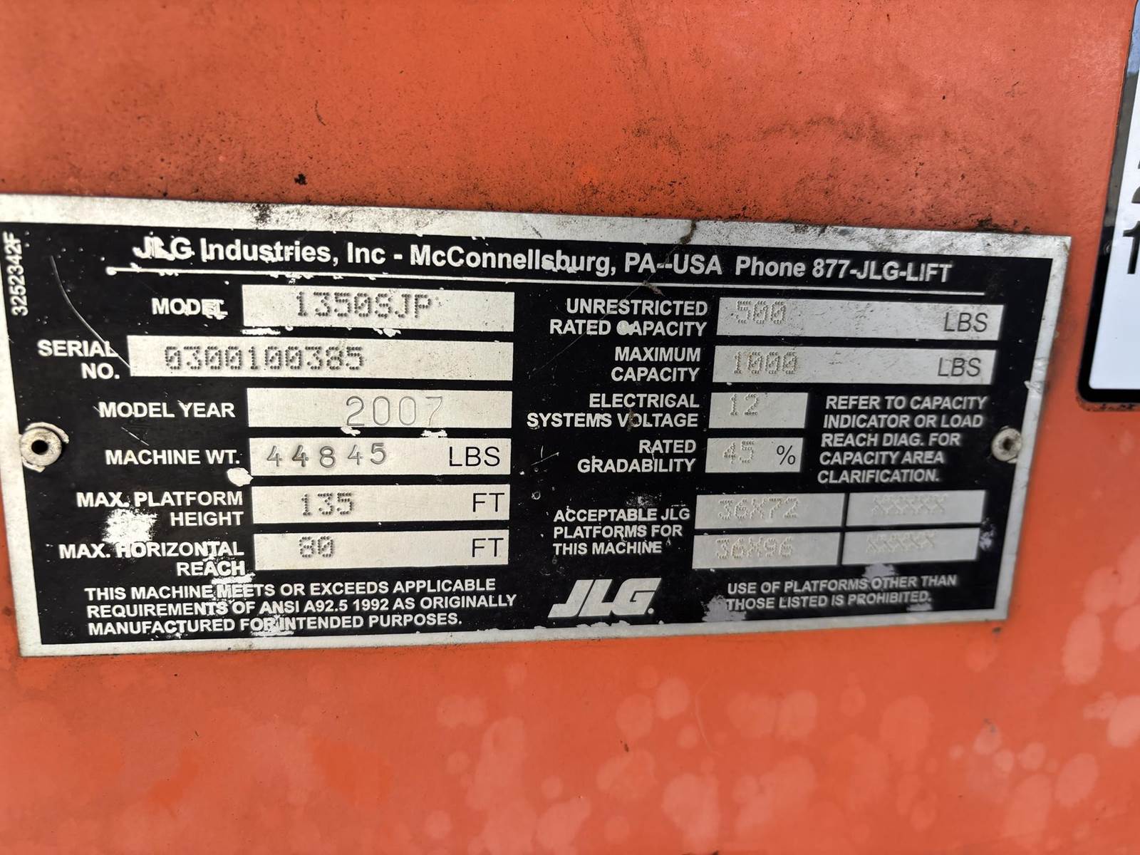 Deutz 4 Cyliner Diesel Engine, 1000LB Max Capacity, 500LB Unrestricted Capacity, Approx 135' Max Platform Height, Approx 80' Max Platform Reach, Grounf and Platform Controls, Extendable Boom, 445/50D710 Tires