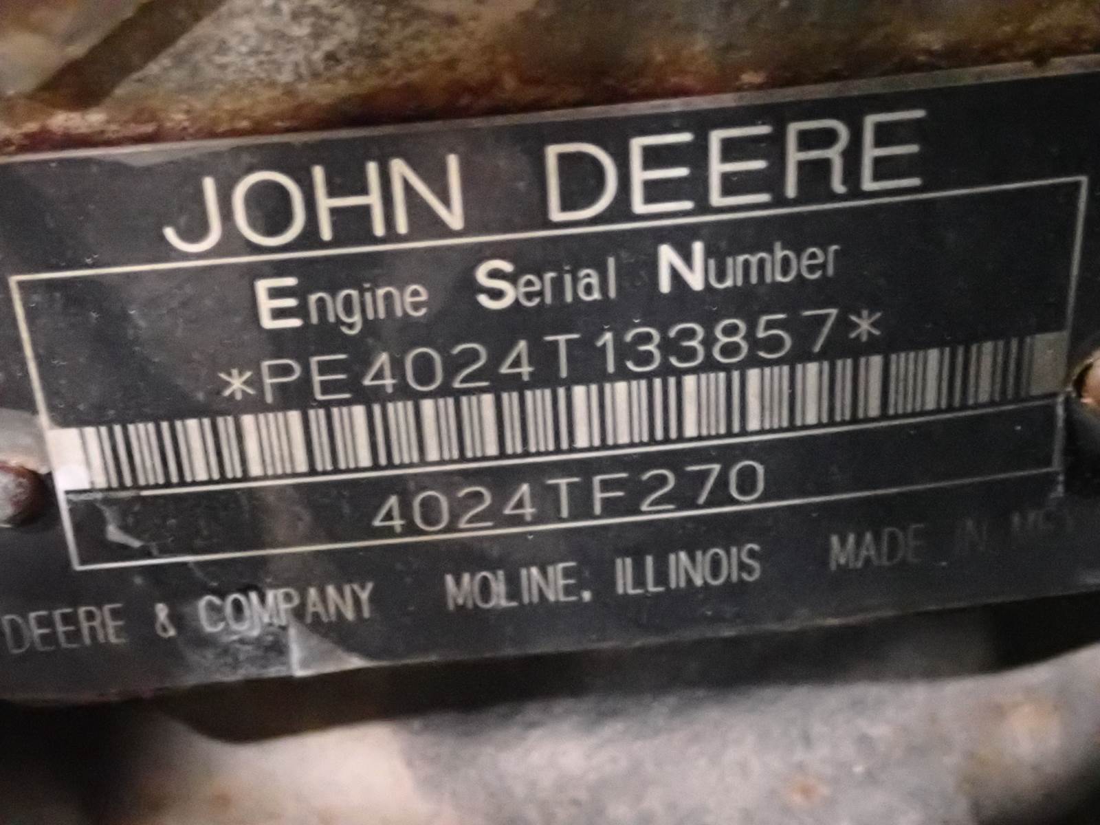 2007 John Deere 4024TF270 Diesel Engine 1900 HOURS!