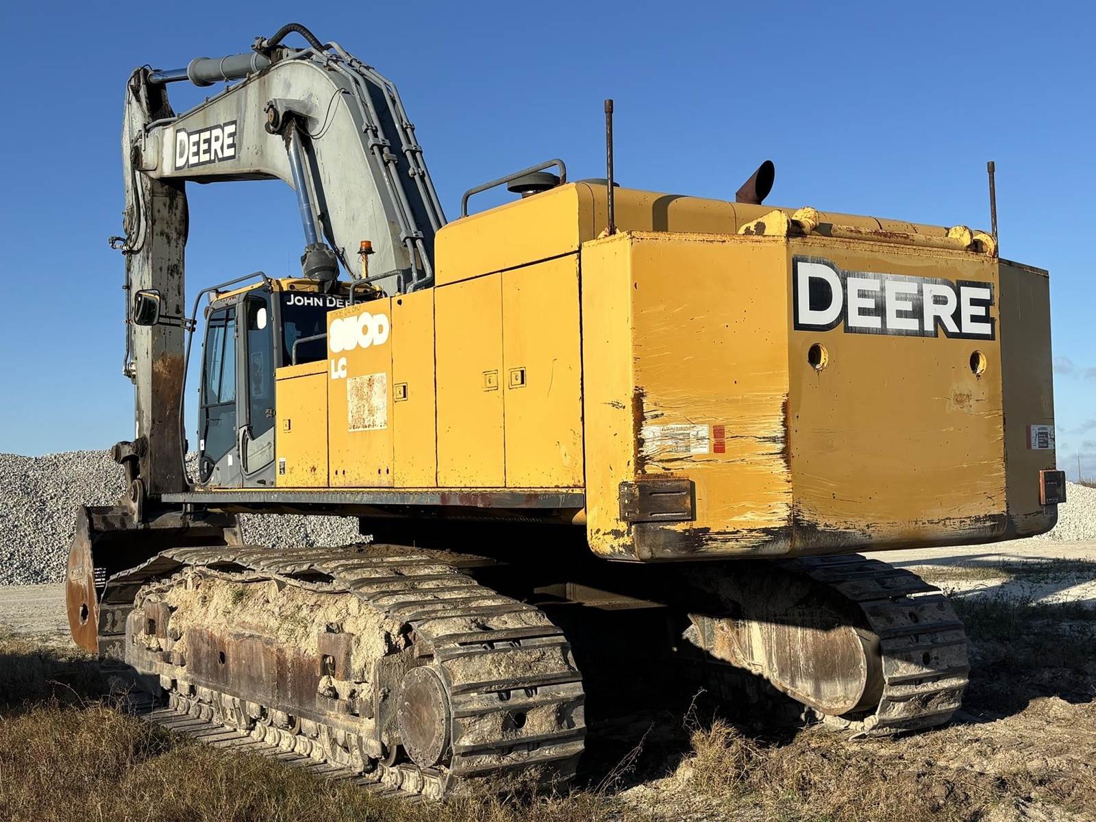 IN TRANSIT 2007 JOHN DEERE 850D LC EXCAVATOR EQUIPPED WITH A STANDARD BOOM LONG STICK AND PIN-ON BUCKET, READY TO GO TO WORK. THIS MACHINE HAS A SOLID 60% UNDERCARRIAGE, AND THE BOOM, STICK, AND HOUSE ARE TIGHT. FRAME HOURS ARE 25,000, BUT THE MACHINE HAS A REPLACEMENT MOTOR WITH ONLY 4,000 HOURS, AND THE HYDRAULIC PUMPS AND MAIN CONTROL VALVE HAVE JUST 2,500 HOURS. STRONG RUNNER WITH MAJOR COMPONENTS UPDATED, MAKING THIS A DEPENDABLE, WORK-READY LARGE EXCAVATOR FOR HEAVY DIGGING, MASS EXCAVATION, OR PRODUCTION APPLICATIONS. A 95’ LONG REACH BOOM IS ALSO AVAILABLE AT ADDITIONAL COST FOR SPECIALTY OR EXTENDED REACH PROJECTS.