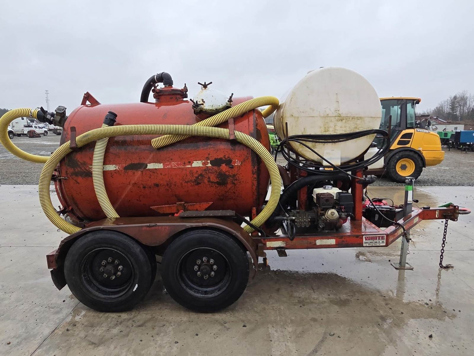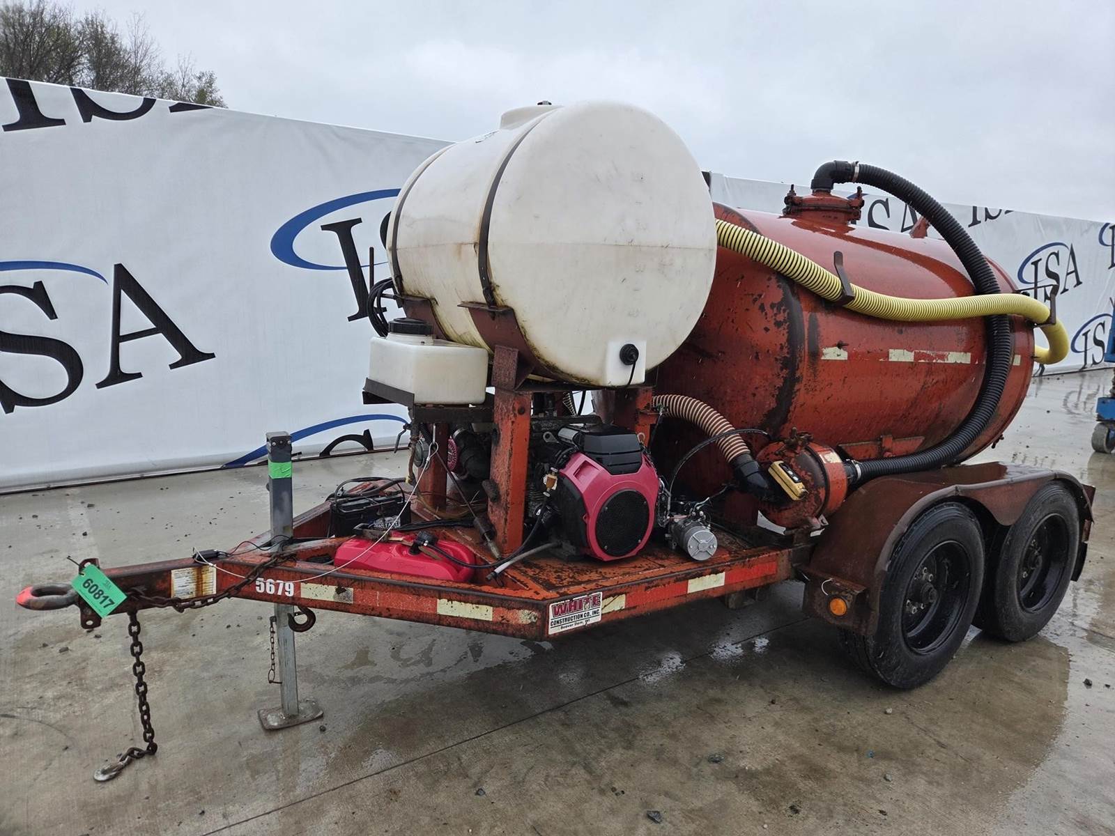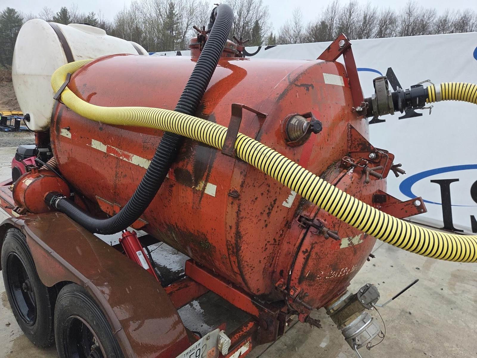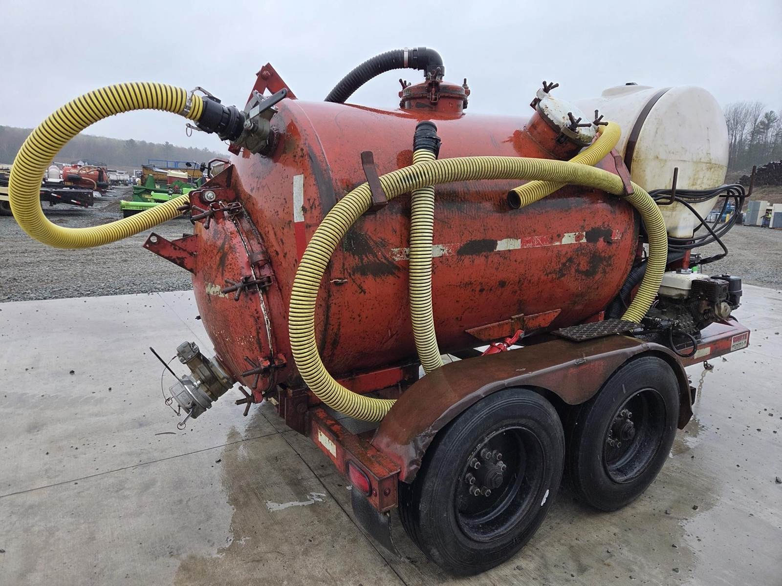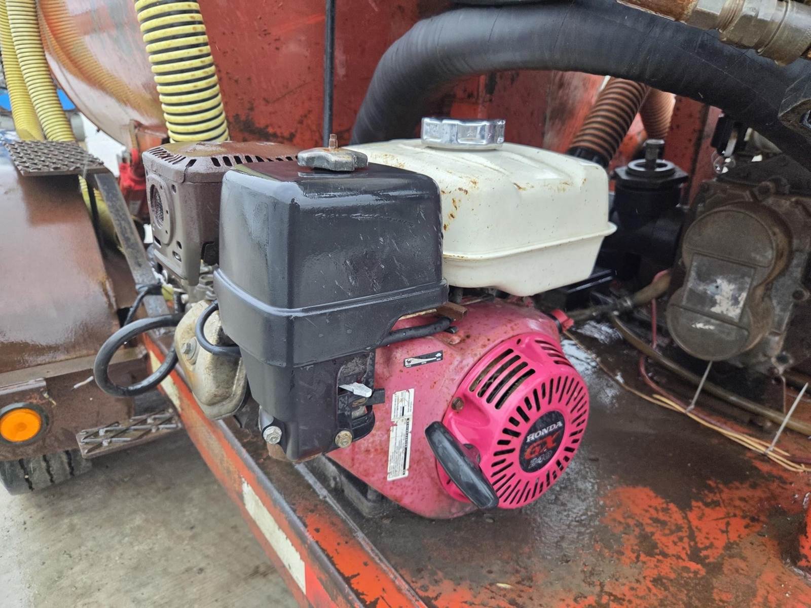 Honda GX240 Gasoline Engine, Honda 688cc Gasoline Engine, 200 Gallon Poly Tank, Pressure Washer w/ Hose and Wand, Electric over Hydraulic Waste Tank Tilt, 6" Outlet, 4" Inlet, JTC10000 Trailer, Torsion Axle Suspension, Pintle Hitch, 215/75R17.5 Tires