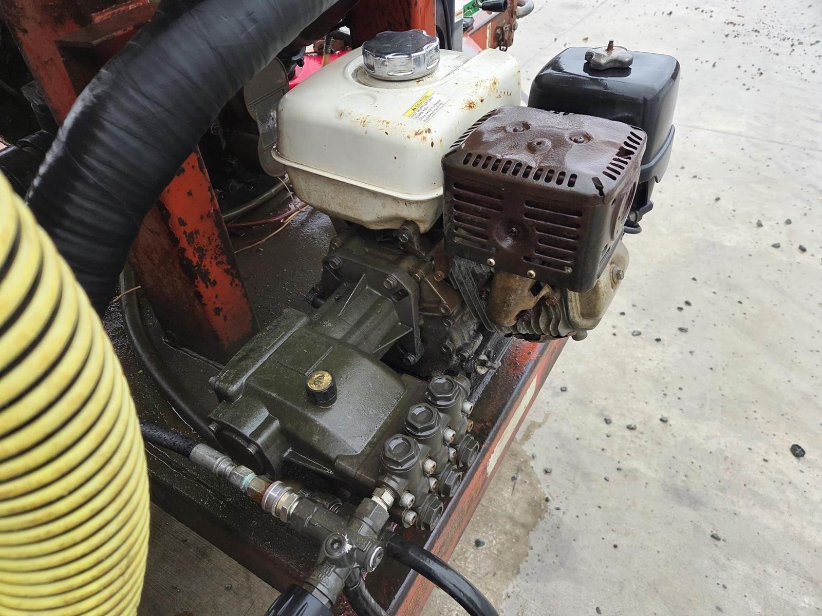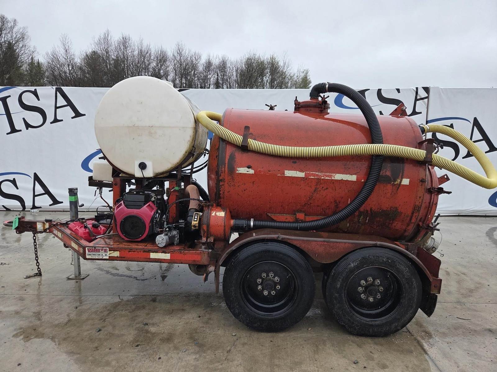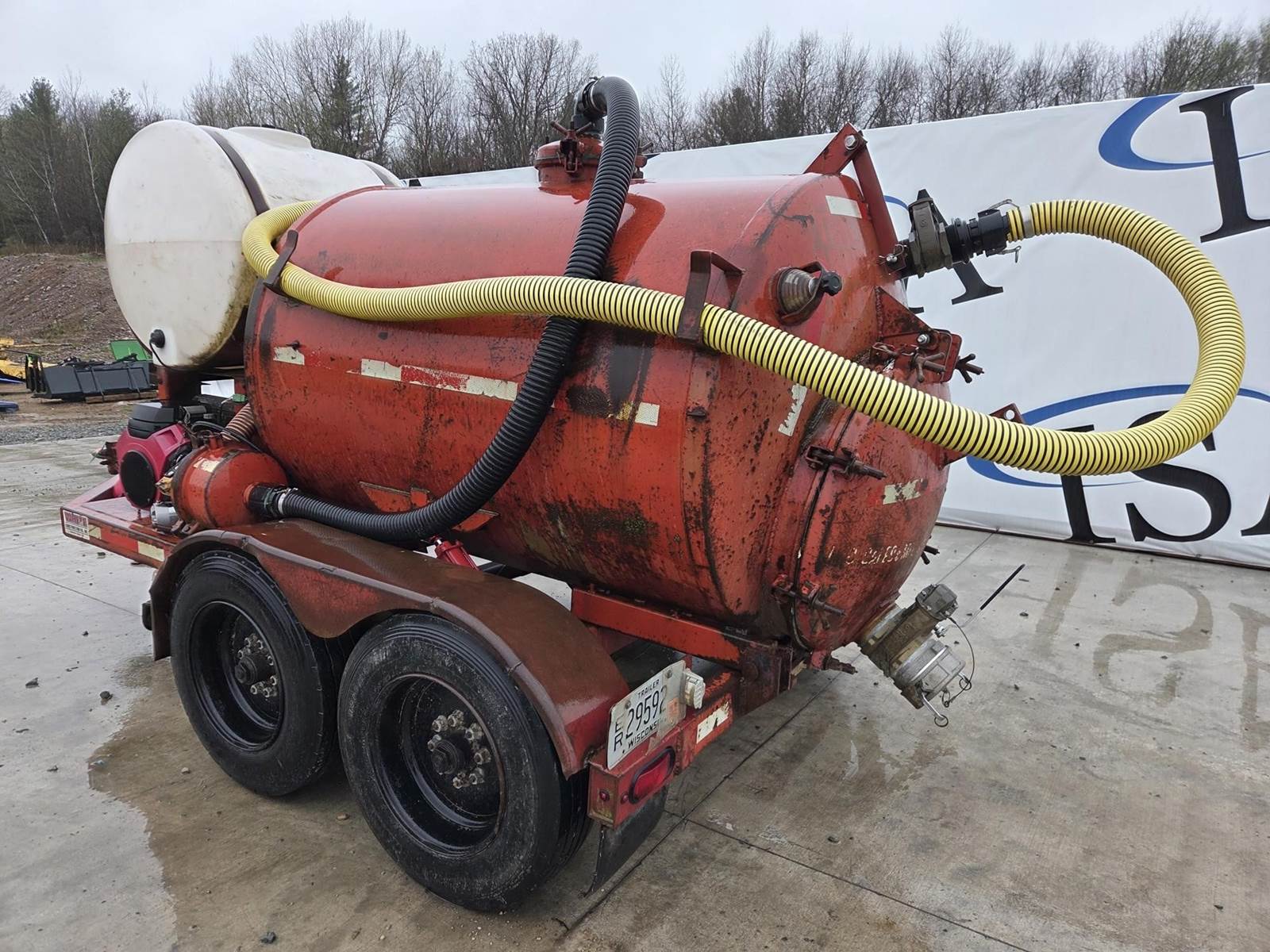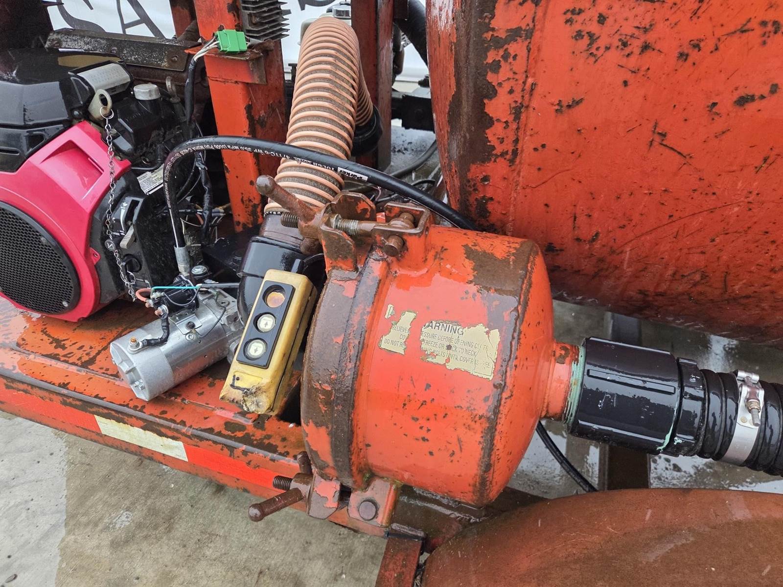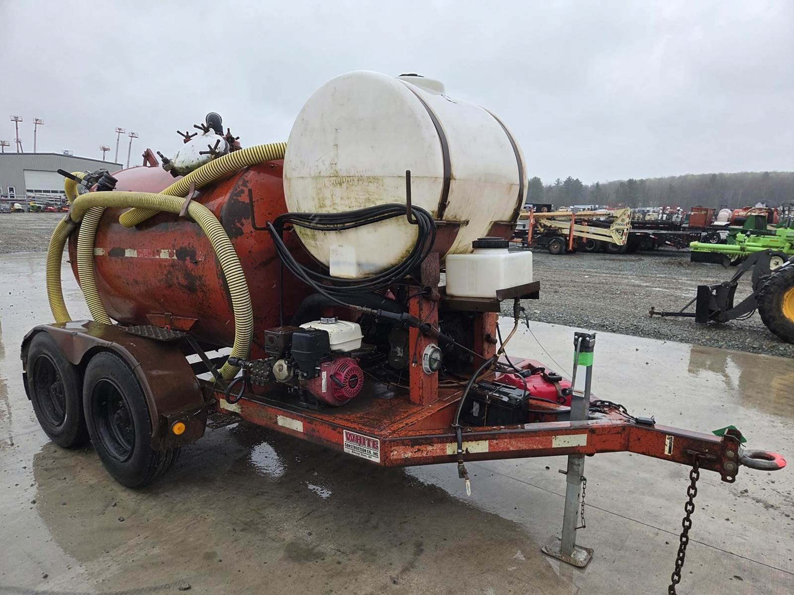 Honda GX240 Gasoline Engine, Honda 688cc Gasoline Engine, 200 Gallon Poly Tank, Pressure Washer w/ Hose and Wand, Electric over Hydraulic Waste Tank Tilt, 6" Outlet, 4" Inlet, JTC10000 Trailer, Torsion Axle Suspension, Pintle Hitch, 215/75R17.5 Tires