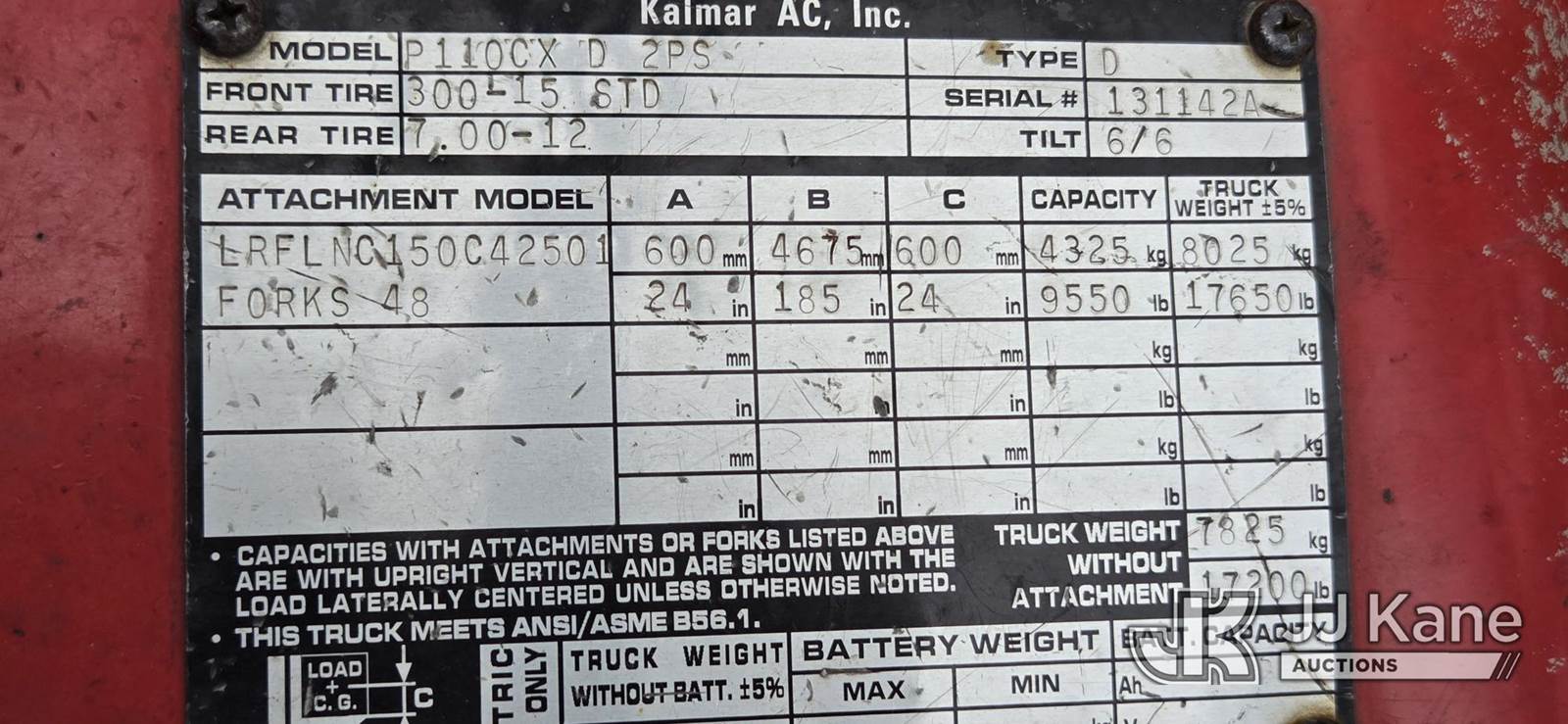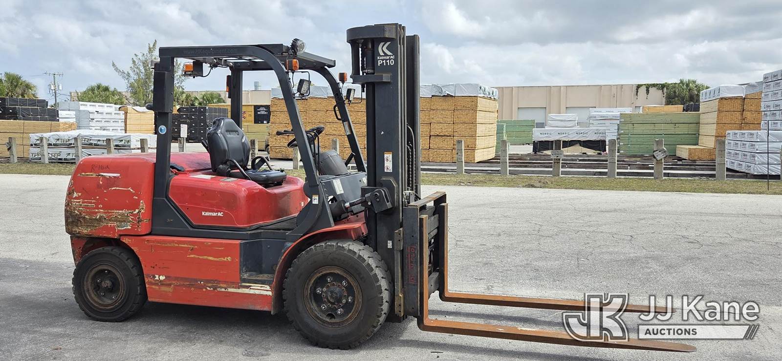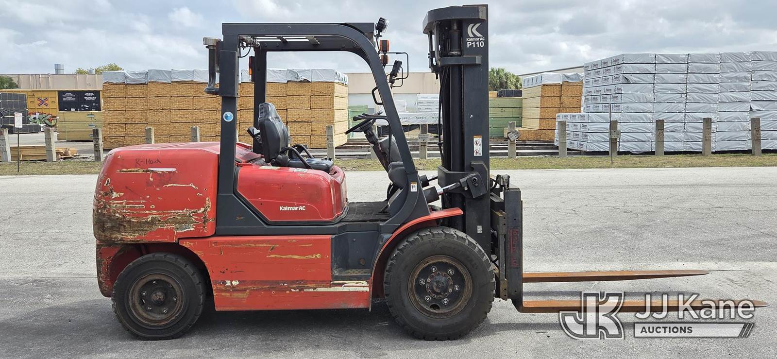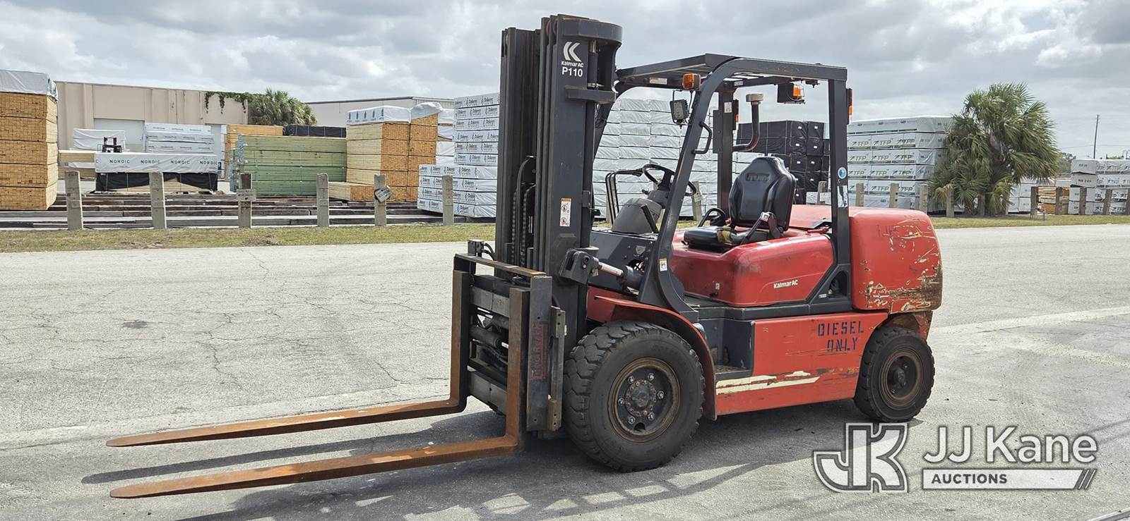 2007 Kalmar P110CX D 2PS Rubber Tired Forklift, s/n 1311421A, Shuttle, diesel, with 9,550 lb. lift capacity, 185 in. 3 stage mast with hydraulic fork positioner, Loading Assistance Available (Runs, Moves and Operates.) (Reads 3,723 hours) NOTE: This unit is being sold AS IS/WHERE IS via Timed Auction and is located in Riviera Beach, FL. For pre-sale questions or to schedule an inspection, please call Gregg Martini 561-519-5775. Load out by appointment only, Buyer/Hauler must present copy of paid invoice upon arrival. Purchaser acknowledges ALL lots must be removed within 5 business days of Auction, or a storage fee may be incurred. For load out and pick up information, please reference the release form sent out after purchase. (Buyer is responsible for removal. Assistance by consignor or JJ Kane Auctioneers is not assured.)