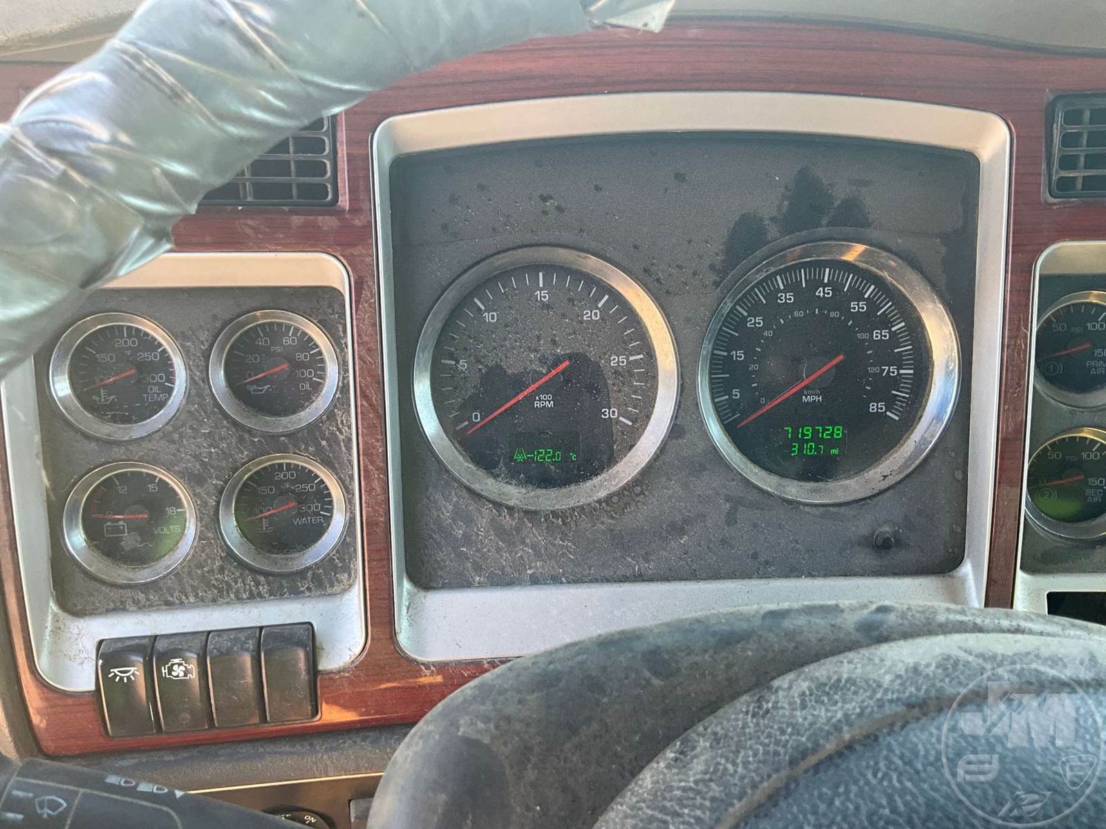 TANDEM AXLE DAY CAB TRUCK TRACTOR, CATERPILLAR, C15 ACERT, 475 HP, EATON FULLER, 18 SPEED, AIR RIDE SUSPENSION, DRUM, 236 " WB, C/A: 128", 53200 LBS GVWR, AIR SLIDE FIFTH WHEEL, A/C, AIR DRIVERS SEAT, CRUISE CONTROL, POWER WINDOWS, POWER DOOR LOCKS, ENGINE BRAKE, PTO, DUAL FUEL TANKS, WET KIT, ALUM DISC FRONT & OUTSIDE REAR WHEELS, FRONT TIRES 11R24.5, REAR TIRES 11R22.5, HOUR METER READS: 22576, ODOMETER READS: 719727