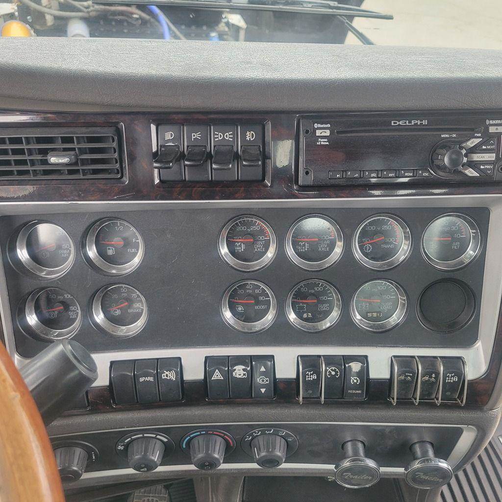 2007 Kenworth W900L. Cummins ISX 15 565 HP, ESN 60814681, RTLO18918B. (LOW MILEAGE) 252" Wheelbase. Custom headache rack. Has New Paint, New custom Jones Performance Truk Rodz hood (2 YEAR MANUFACTURER WARRANTY) with Pod style Headlamps. Disc brake 8 bag suspension ( LOW MILEAGE) 3.42 Ratio Rear locker. Disc brake front axle. 100 Gal Fuel tanks. Fresh alignment. Custom polished NEW 4 battery box and tool box, New Air cleaners. Jost 5th wheel.
