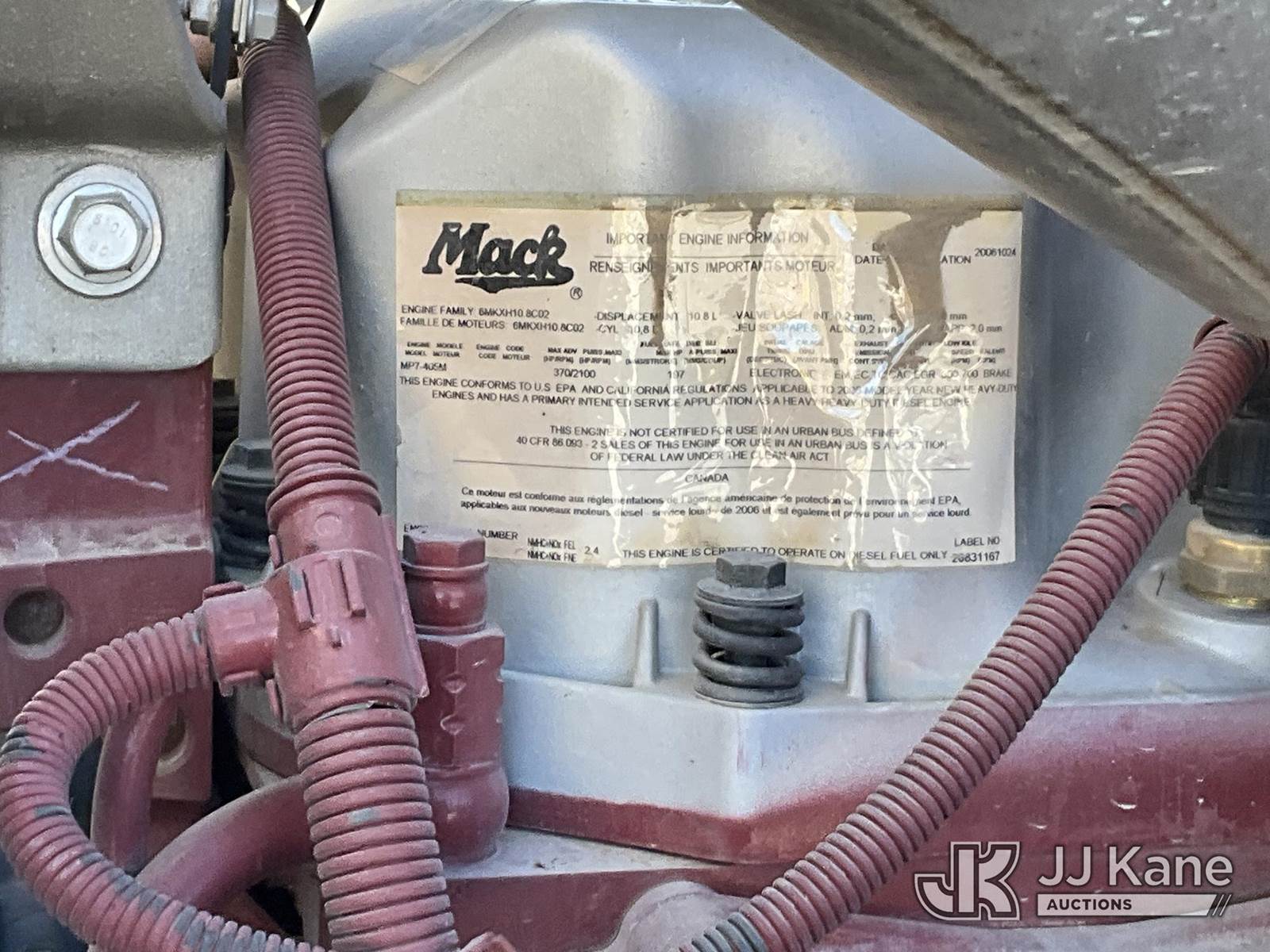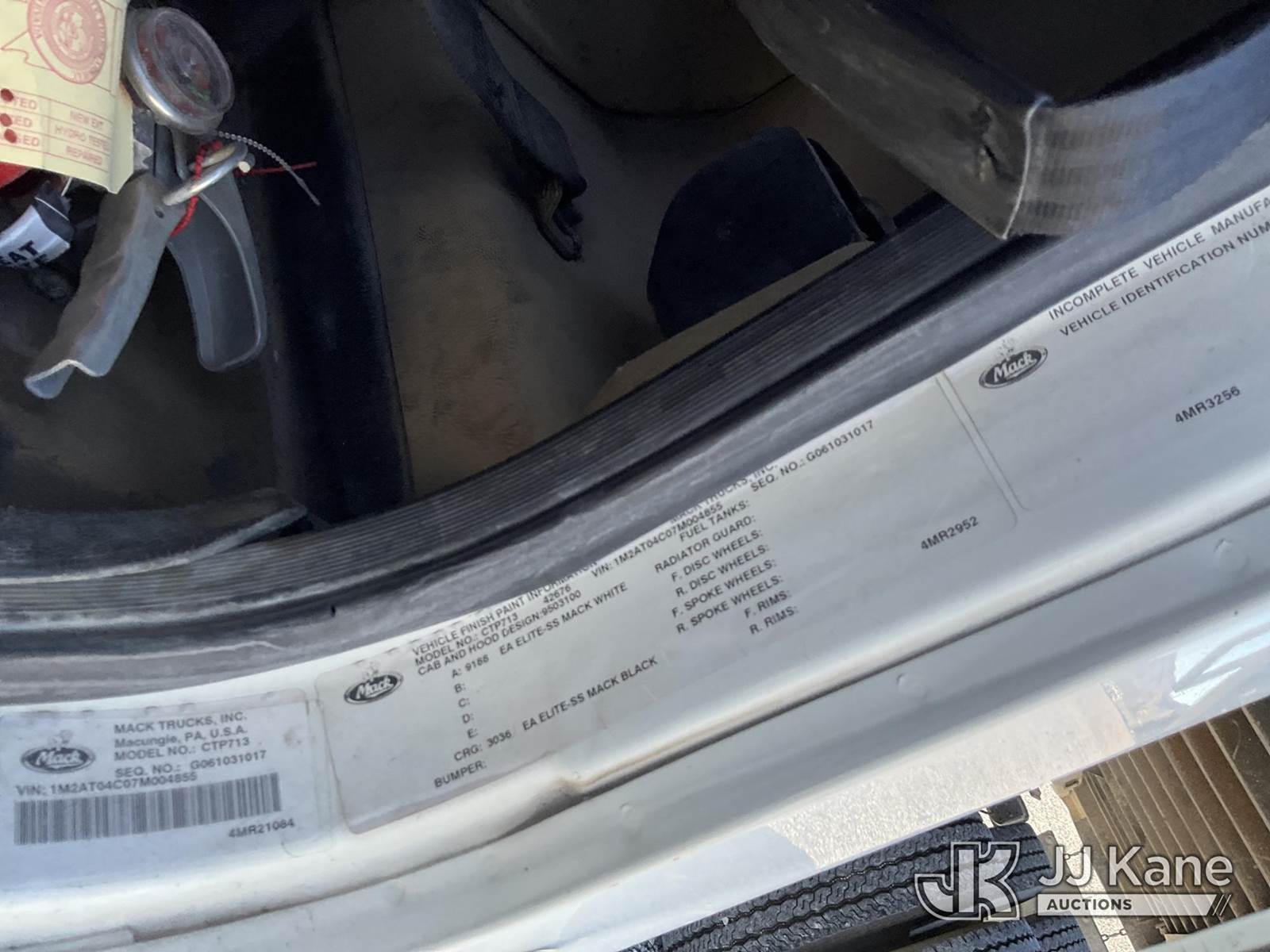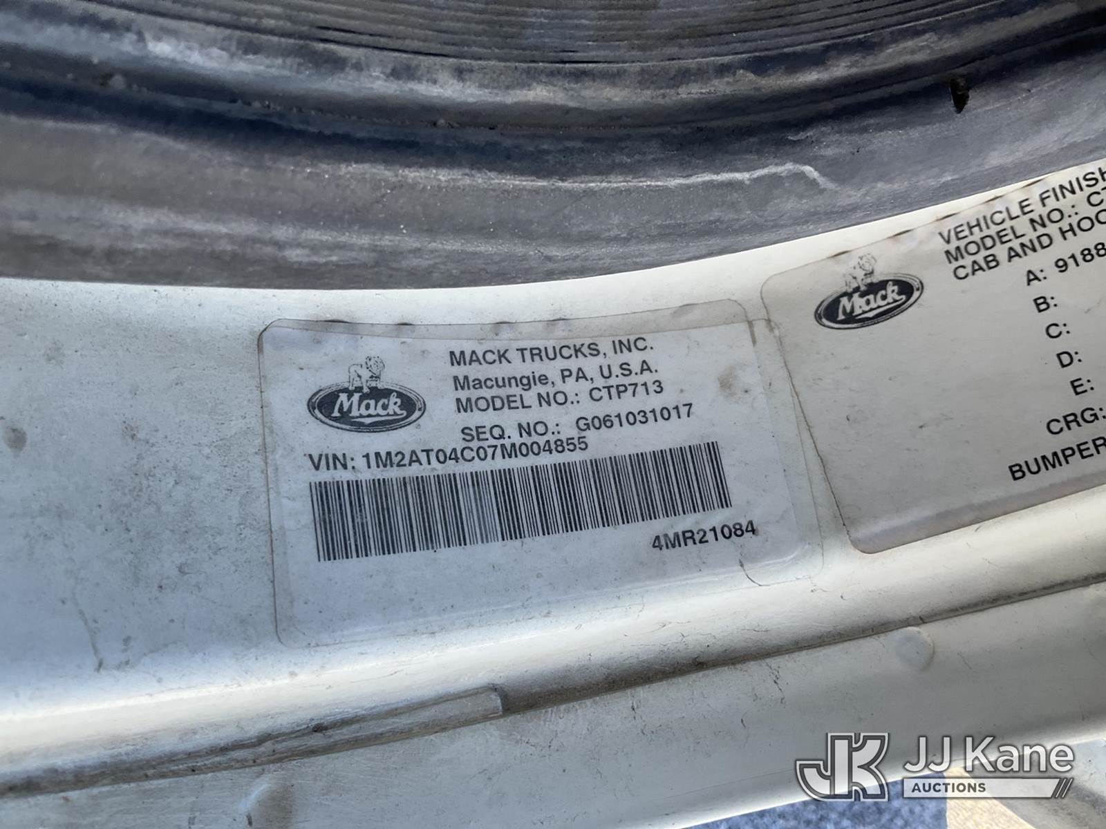 2007 Mack CTP713 T/A Dump Truck, 10.8L diesel, Auto, A/C, with 1809 PTO Hours, (72,895 miles) (Runs, Moves & Dump Bed Operates) (Lightning/Electronic Warning Light On) This is a Titled Item NOTE: This unit is being sold AS IS/WHERE IS via Timed Auction and is located in Las Vegas, NV. Inspection & preview days for this unit are the 2 business days prior to the first day of items closing for this auction, item is located at 14655 Grand Valley Pkwy Las Vegas, NV 89165 and hours of operations are 8a-4p. Titles executed exactly as bidder registered. Ensure your name and/or business name and address in JJ Kane and/or ProxiBid is correct before bidding. For pre-sale questions, please contact Office Staff @ (801) 519-0123 and provide sale date and lot number. Las Vegas Dealer License Number DLR000053086 / OHV000053094. (Buyer is responsible for removal. Assistance by consignor or JJ Kane Auctions is not assured.)