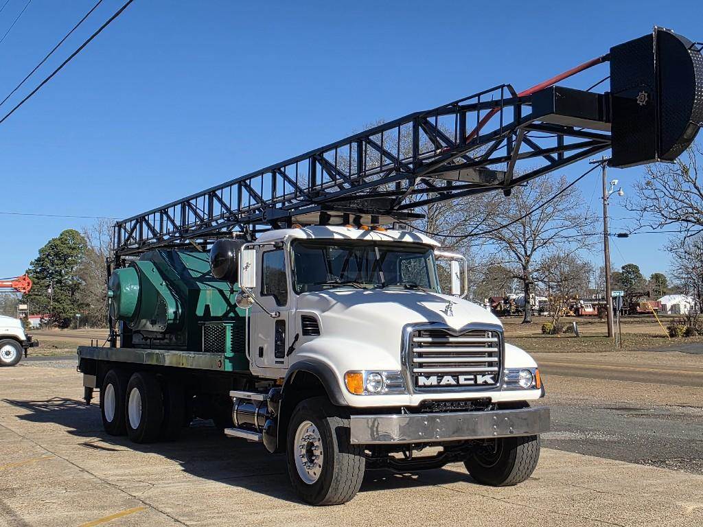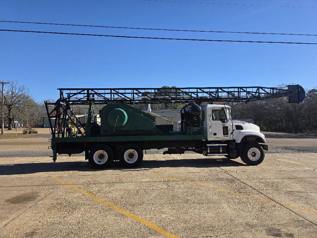 2007 MACK CV713 SWAB RIG, E7-427 ASET ENGINE, 90,120 MILES 5,739 HOURS, T318LR 18-SPEED TRANSMISSION, 44K CAMEL BACK REAR SUSPENSION, 11R22.5 REAR WHEELS, STEERING 385/65R22.5 WHEELS, CRD92/93 -4.42 RATIO DIFFERENTIALS, 18K FRONT DUAL STEERING AXLE, FALCON DRAWWORKS HOLDS 16,000 FT OF 9/16" LINE, COLD A/C.