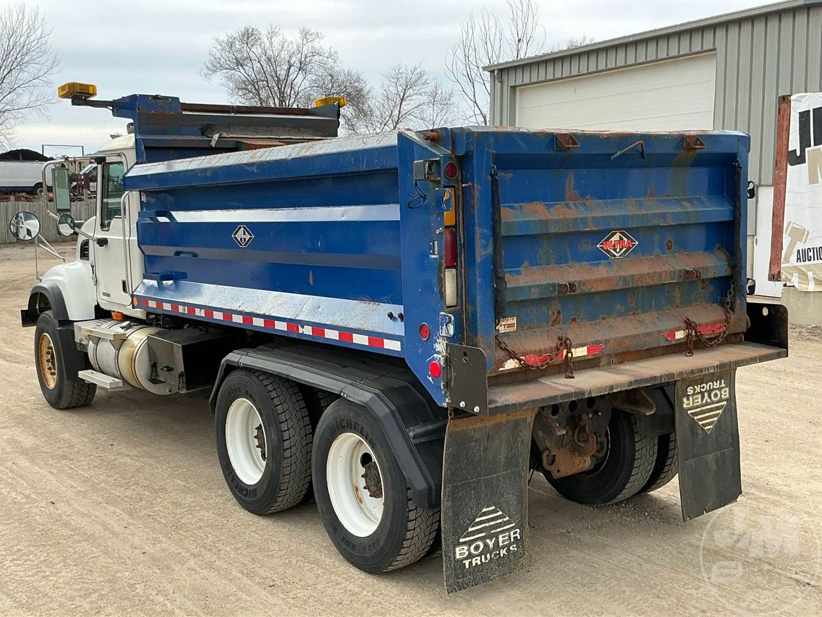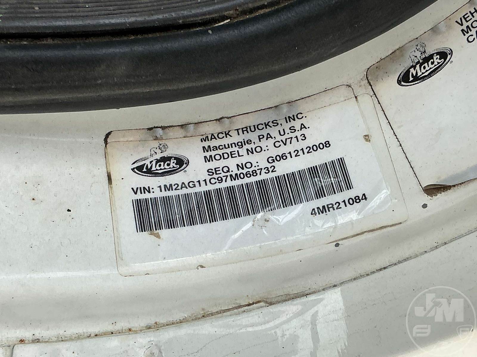 TANDEM AXLE DUMP TRUCK, MACK, DIESEL, ALLISON, AUTOMATIC, AIR BRAKES, 200 " WB, 18K FRONTS, 40K REARS, ENGINE BRAKE, DIFF LOCK, CRUISE CONTROL, REAR AIR SUPPLY, A/C, POWER WINDOWS, POWER DOOR LOCKS, POWER MIRRORS, 14', STEEL, DUMP BODY, VIBRATOR, AIR GATE, 58000 GVWR, STEEL DISC WHEELS, 385/65R22.5 STEER TIRES, HENDRICKSON SUSPENSION, J-CRAFT DUMP BODY, SNOW PLOW MOUNT, 11R22.5 REAR TIRES, HOUR METER READS: 9395, ODOMETER READS: 125782, ***GOVERNMENT OWNED 10% BUYER'S PREMIUM***