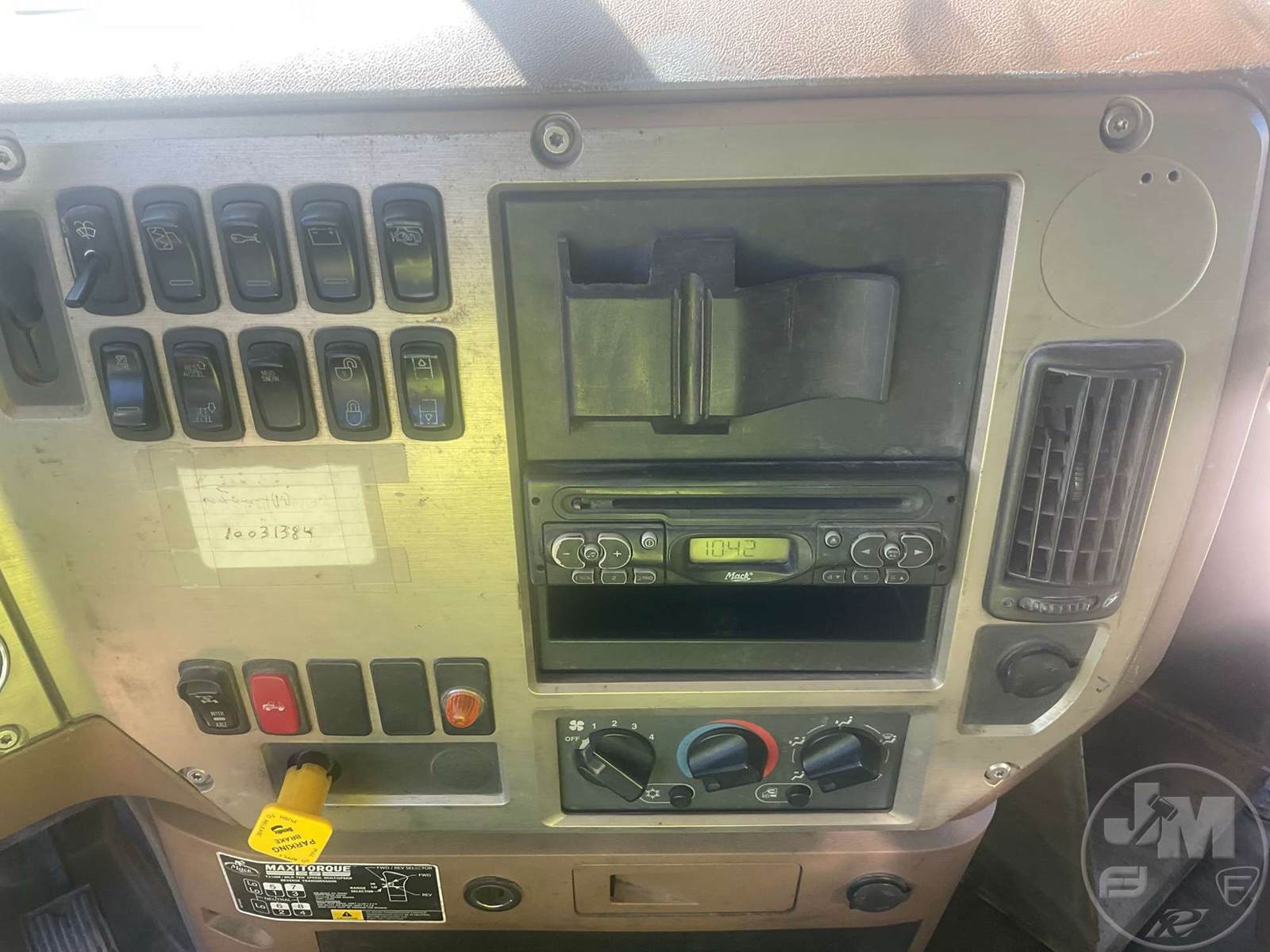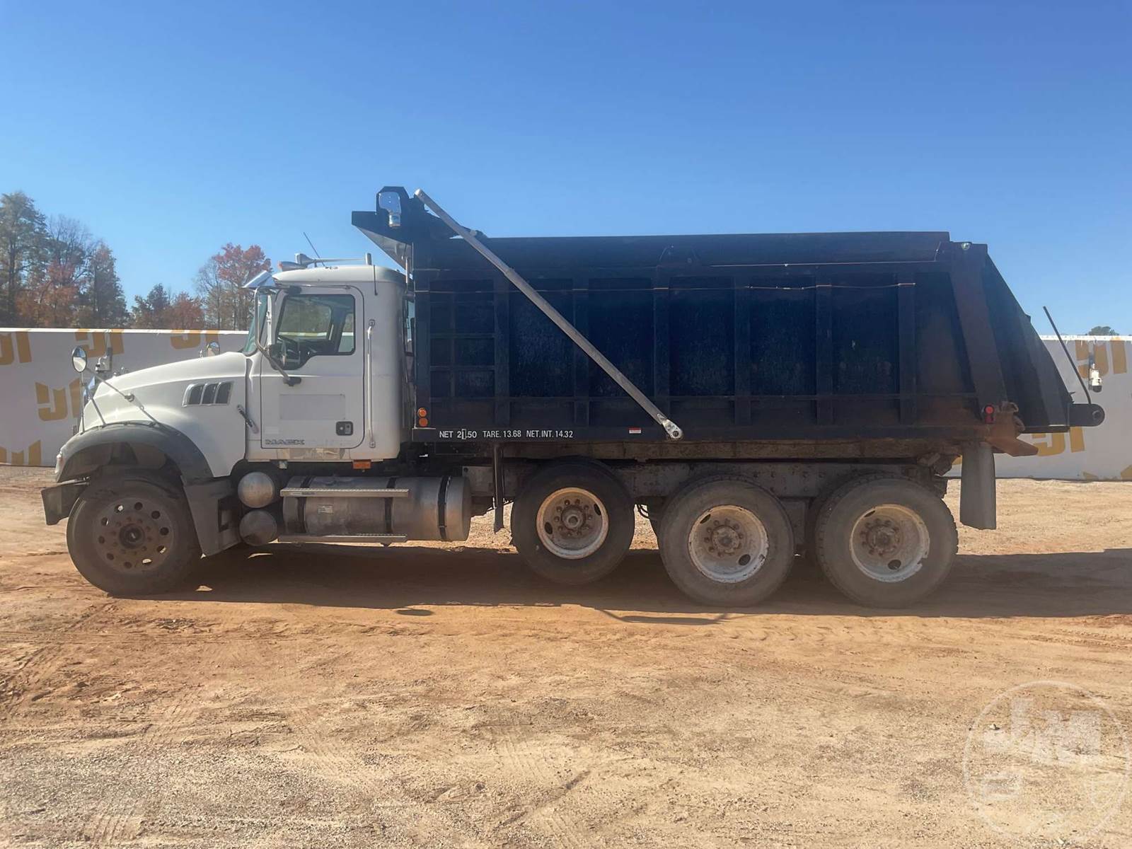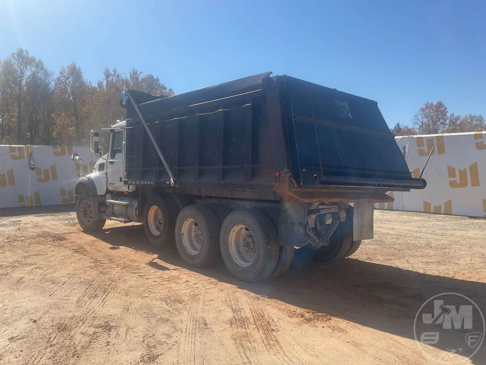 TRI-AXLE DUMP TRUCK, MACK, HP 460, MACK, 10 SPEED, AIR BRAKES, SPRING SUSPENSION, 223" " WB, 18K FRONTS, 44K REARS, DOUBLE FRAME, AIR LIFT, ENGINE BRAKE, DIFF LOCK, 17', STEEL, DUMP BODY, TARP, AIR GATE, 80K GVWR, ALUMINUM FRONTS STEEL REAR WHEELS, 11R24.5 TIRES, COMES W/ ORIGINAL GATE LOCATED IN THE BED, ODOMETER READS: CNV, ***DASH CLUSTER INOP*** ***LEFT REAR DUMP BED BRACKET BROKEN***