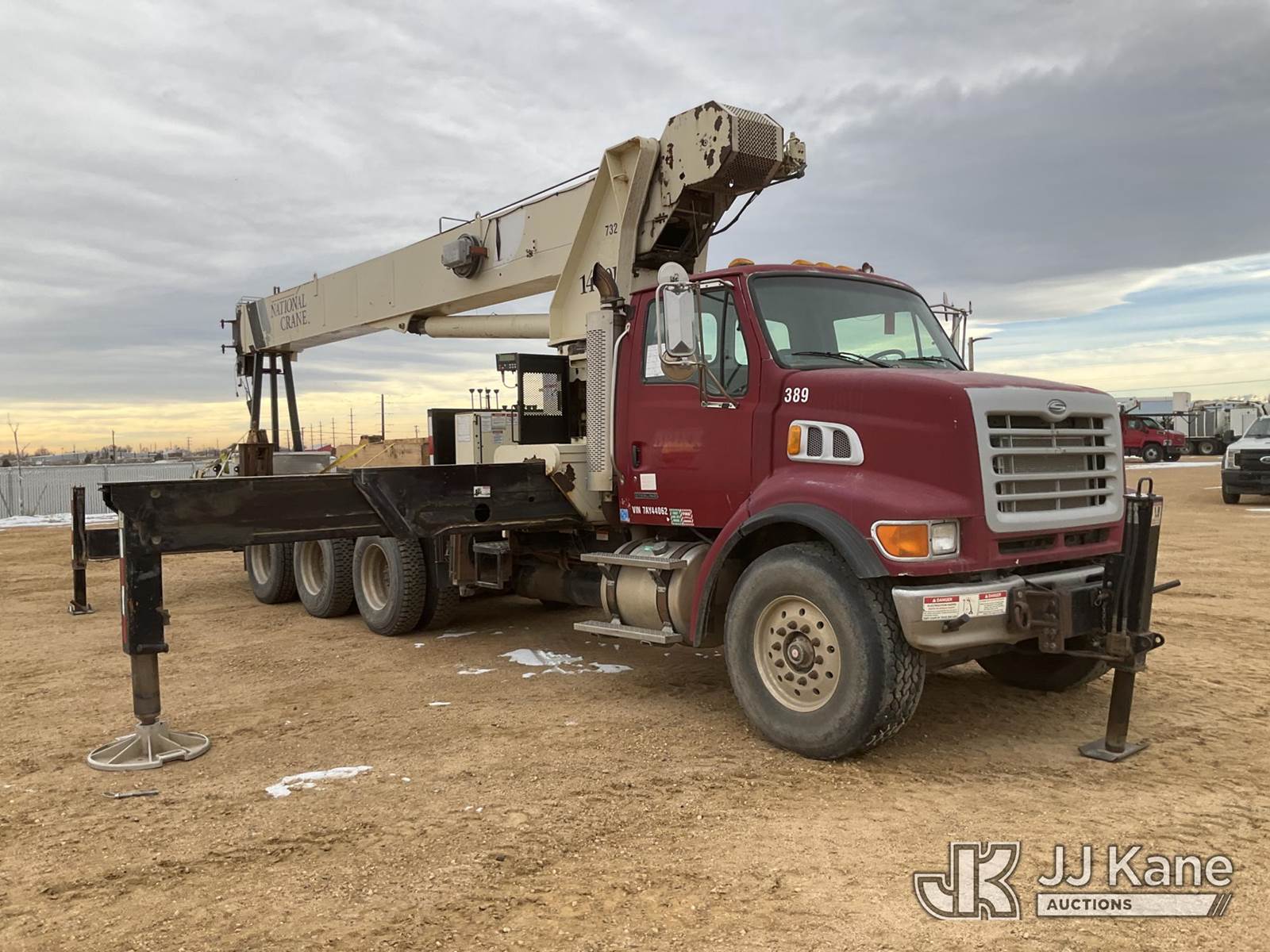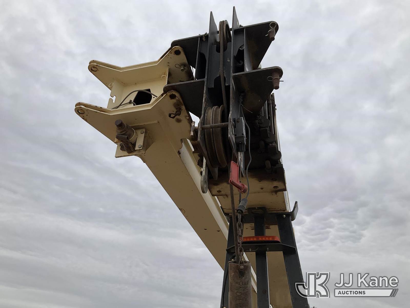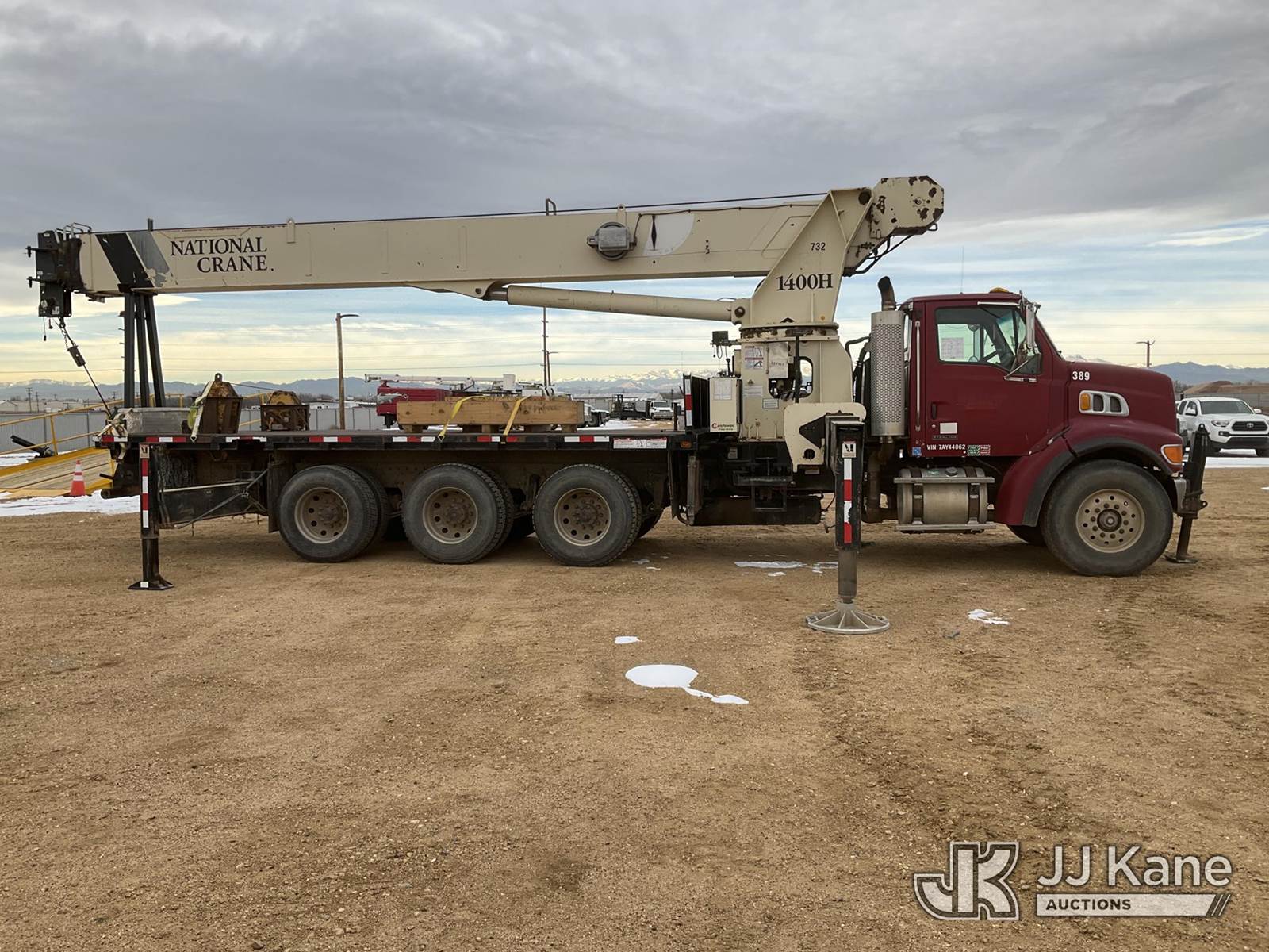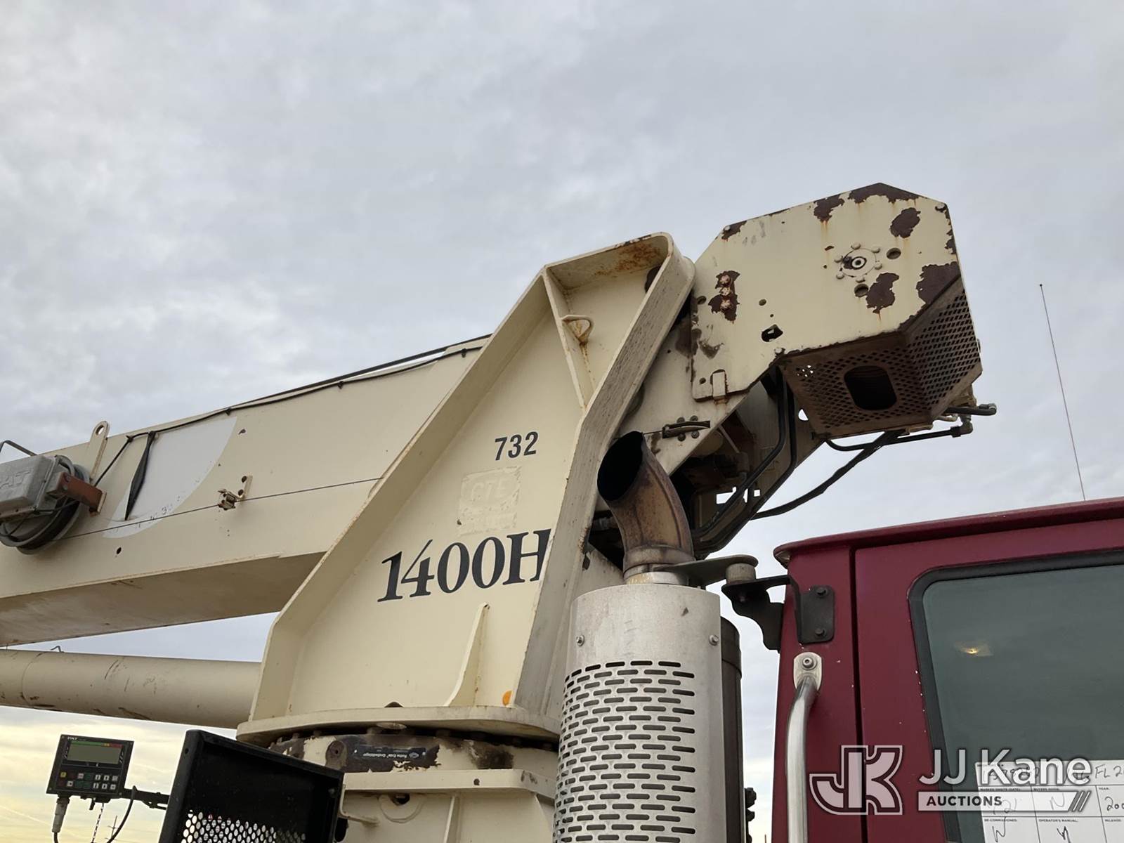 National 1400H, 33-Ton Hydraulic Crane s/n 293537, with 127 Ft 5-Section Hyd Boom W/30 Ft Swing Away Jib, Heel Winch, 35 Ton & 15 Ton Hook Blocks, Two Replacement Outriggers On Flatbed, mounted behind cab on 2007 Sterling L7500 Tri-Axle Flatbed Truck, 8.8L L6 DIESEL 8X6, 10-spd, A/C, (55,759 miles) (Runs Rough, Moves & Operates Rough) (**Dealer Only** Seller states this unit has been removed from service: Issues With Anti Two Block System, Only Operable in Override Mode, Injector Rattle Noise Increases With RPM, Engine Rattle, Bad Injectors, Clutch Issues, Dash Issues, Hydraulic Cooler Line Leak – Requires ANSI Inspection and Chassis diagnostic testing for repair/replacement requirements) (No Emissions Provided, See Bidder Agreement) (Non Drive Away Removal Only: Engine Safety Concern) (Reads 9,938 hours) (Bidding Restricted to Licensed Vehicle Dealers Only), This is a Titled Item NOTE: This unit is being sold AS IS/WHERE IS via Timed Auction and is located in Fort Lupton, CO. Inspection & preview days for this unit are the 2 business days prior to the first day of items closing for this auction, item is located at 2105 Northland Dr Fort Lupton, CO 80621 and hours of operations are 8a-4p. For pre-sale questions, please contact Dakota Hoffman @ (720) 621-0786. Dealer License Number 47109. (Manuals provided in cab) (Buyer is responsible for removal. Assistance by consignor or JJ Kane Auctions is not assured.)