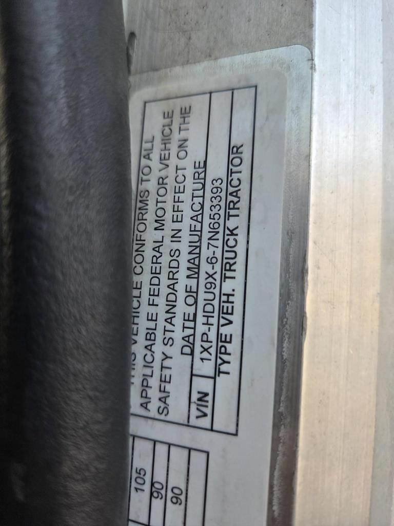 Location: ISA Yard: Merrill, WI Caterpillar C13 ACERT Turbo Diesel Engine, Eaton Fuller 10 Speed Manual Transmission, GVWR: 52000LB, 12000LB Front Axle, Air Ride, Differential Lock, Engine Brake, Air Release Fifth Wheel Slide, Air King Pin Release, Single Bunk, Rear Climate Control, Refrigerator, TV Mount, Privacy Curtain, Heat, A/C, Radio, Cruise Control, Power Windows, Power Mirrors, Power Locks, Air Ride Seat, Full Aluminum Rims, 11R22.5 Front Tires, 295/75R22.5 Rear Tires, Seller's Notes: "Working APU, new turbos, new front end" VIN: 1XPHDU9X67N653393 Miles Shown: 1195954