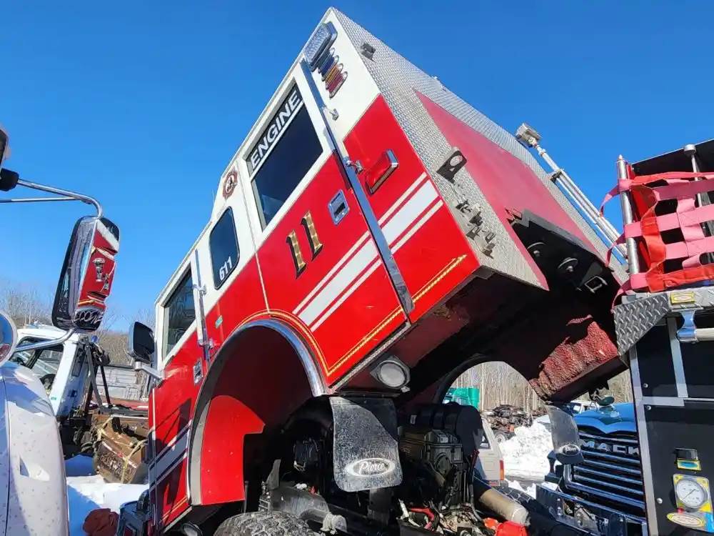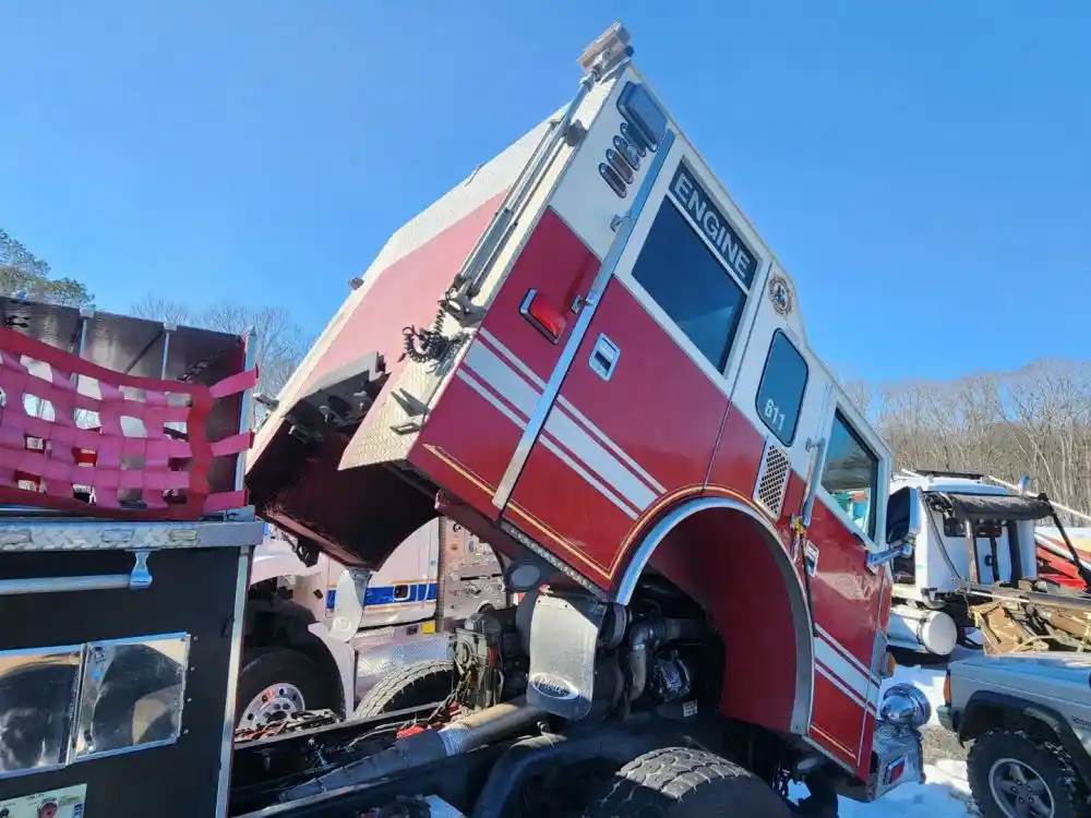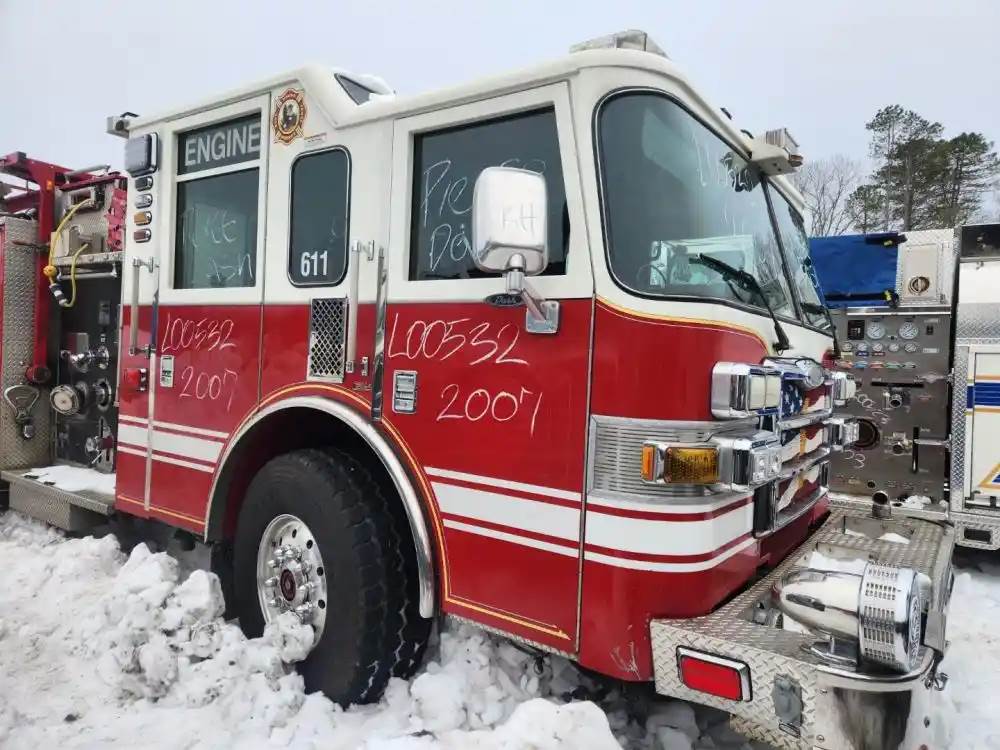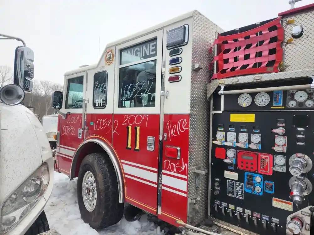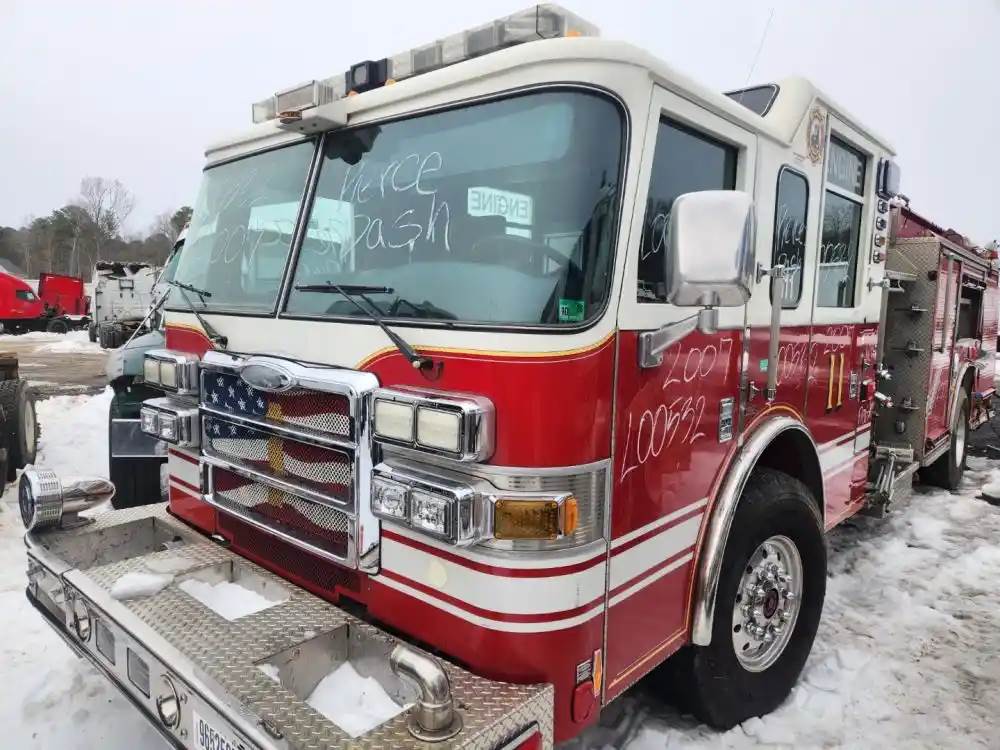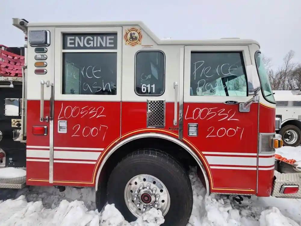 (Used) 2007 Pierce Dash, FIRE TRUCK CAB- Type: Double Cab, Engine: Detroit Series 60, Color: White With Red, Less Interior, Less Doors Sold Separately, Reference images for condition, For more information about this item, give us a call. We ship Worldwide! (CRG HEAVY TRUCK PARTS) 929 W PULASKI HWY ELKTON, MD 21921, Air/Hydraulic: Air/Hydraulic, Engine Make: Detroit, Engine Model: SERIES 60
