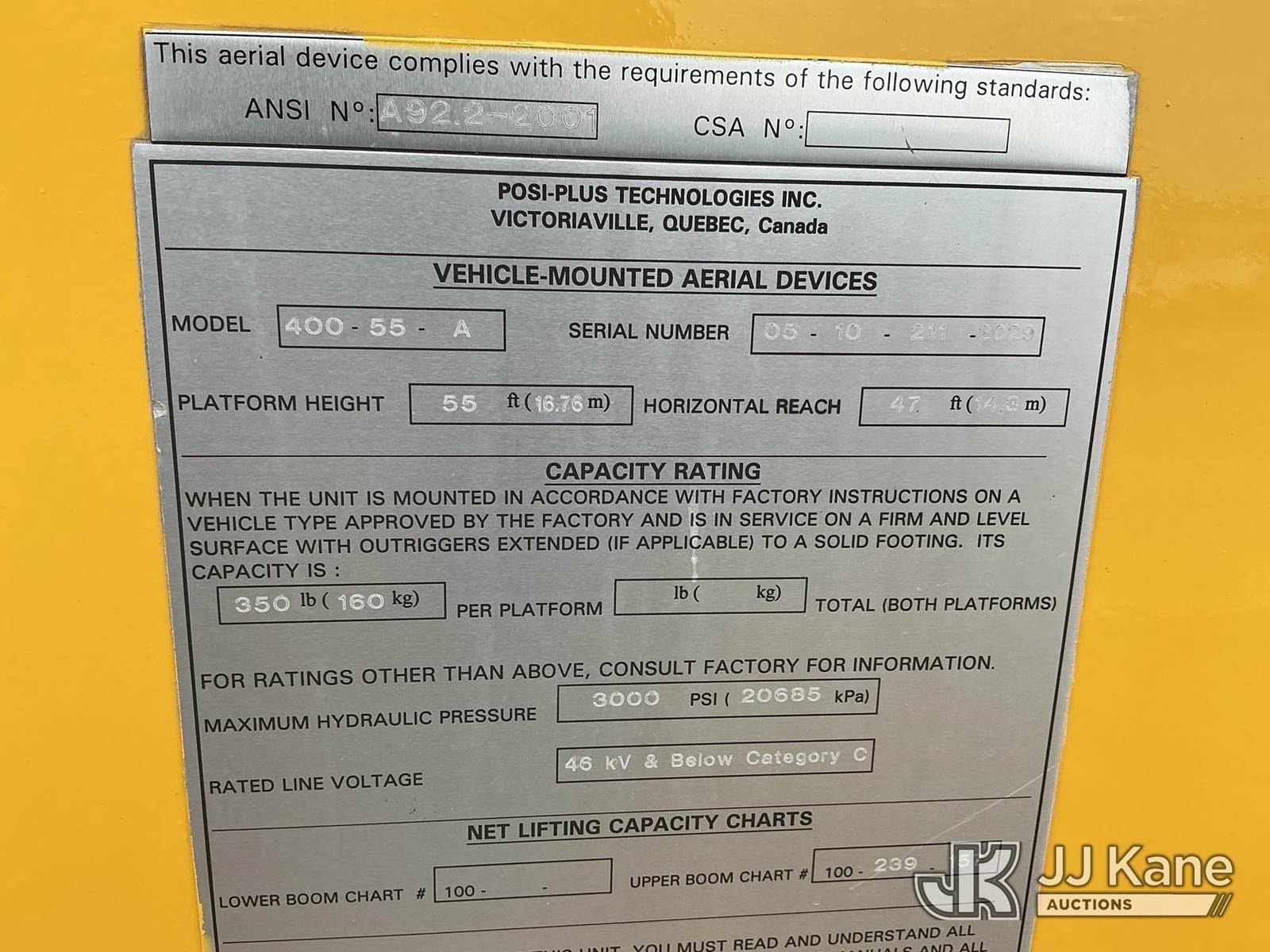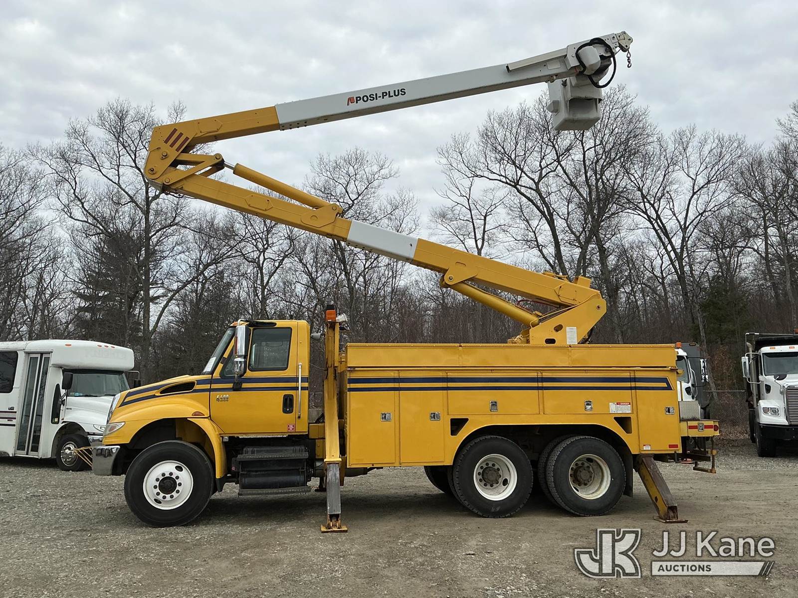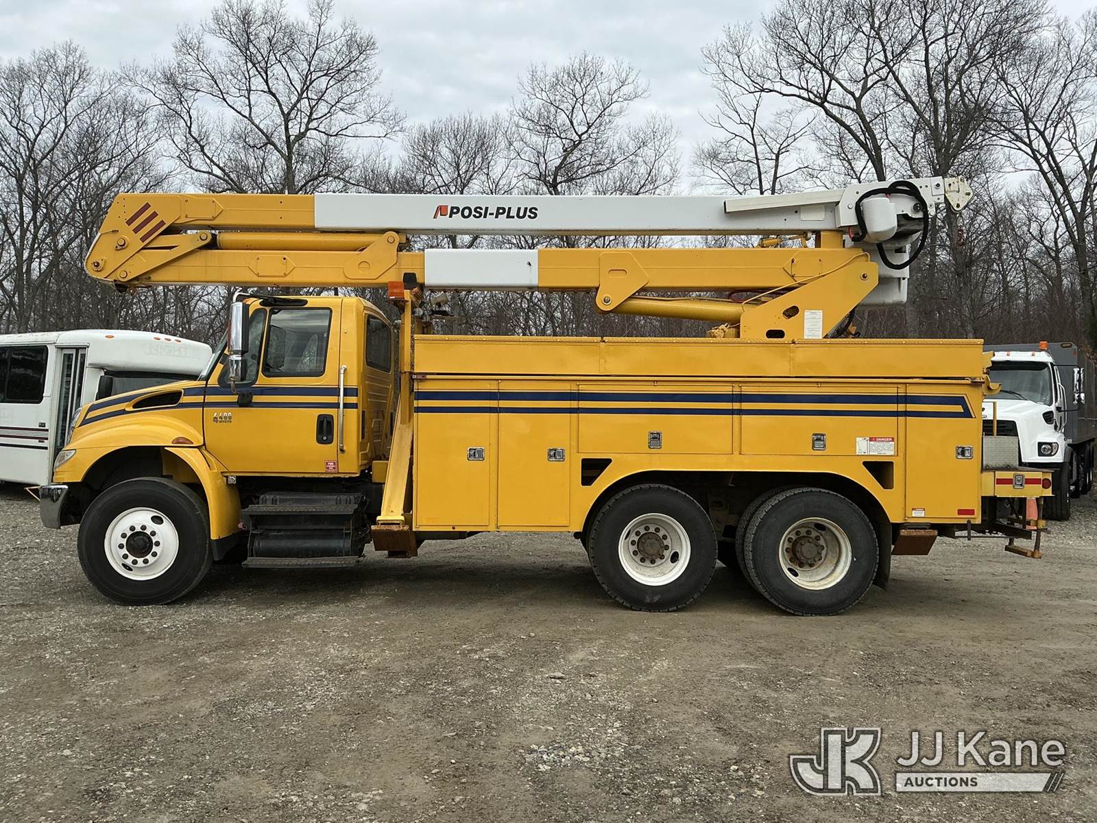 Posi Plus 400-55-A, 60 ft, Material Handling Bucket Truck s/n 05102112029, with single-man bucket & 4 hyd outriggers, rear mounted on 2007 International 4400 Utility Truck, DT570 6X4, diesel, A/C, (107,718 miles) (Runs, Moves & Upper Operates) (Reads 10,950 hours) This is a Titled Item NOTE: This unit is being sold AS IS/WHERE IS via Timed Auction and is located in Shrewsbury, MA. Inspection & preview days for this unit are the 2 business days prior to the first day of items closing for this auction, item is located at 11 Fortune Blvd Shrewsbury, MA 01545 and hours of operations are 8a-4p. For pre-sale questions, please contact Rob Gifford @ (508) 864-4126. (Manuals provided in cab) (Buyer is responsible for removal. Assistance by consignor or JJ Kane Auctions is not assured.)