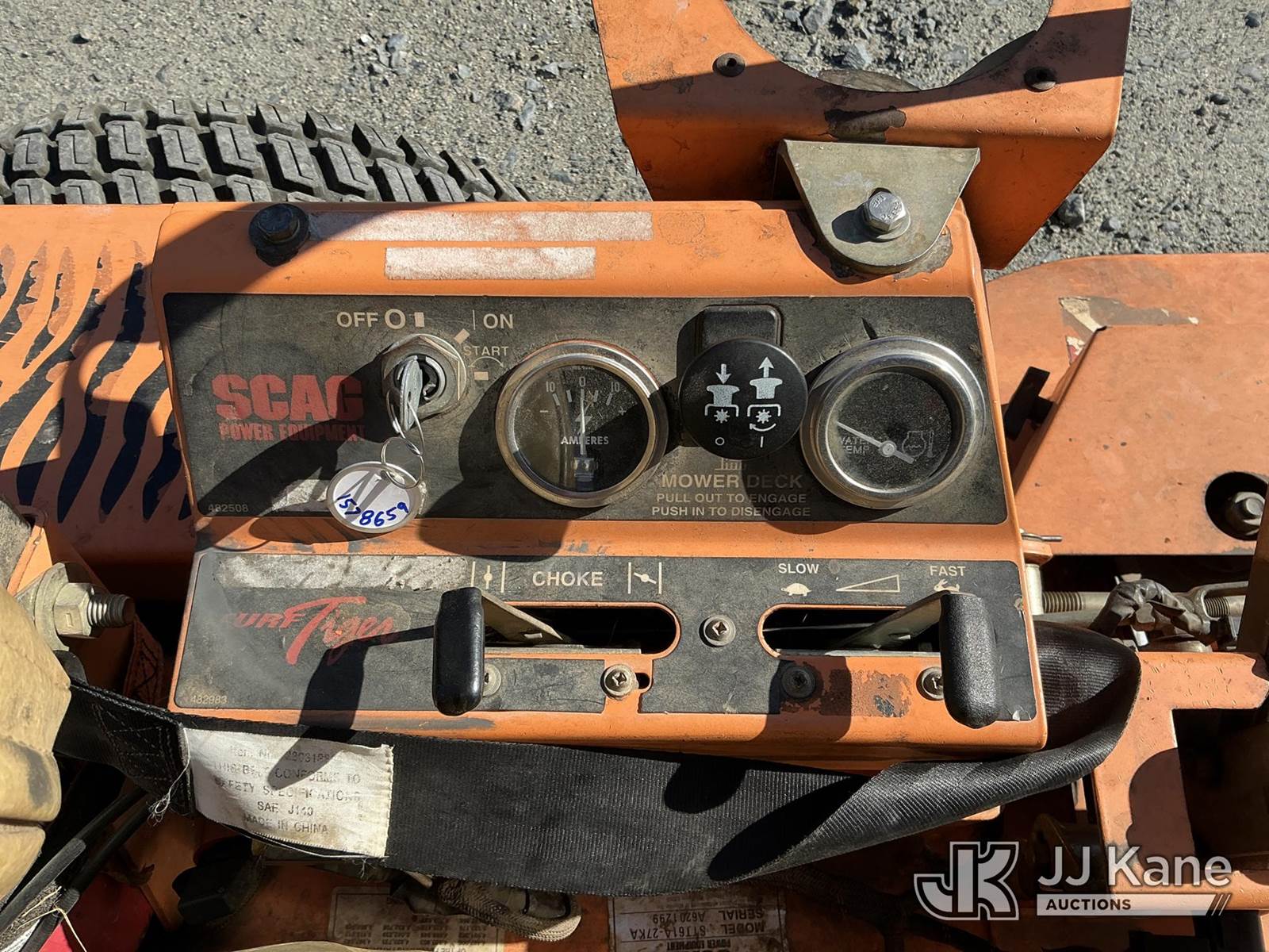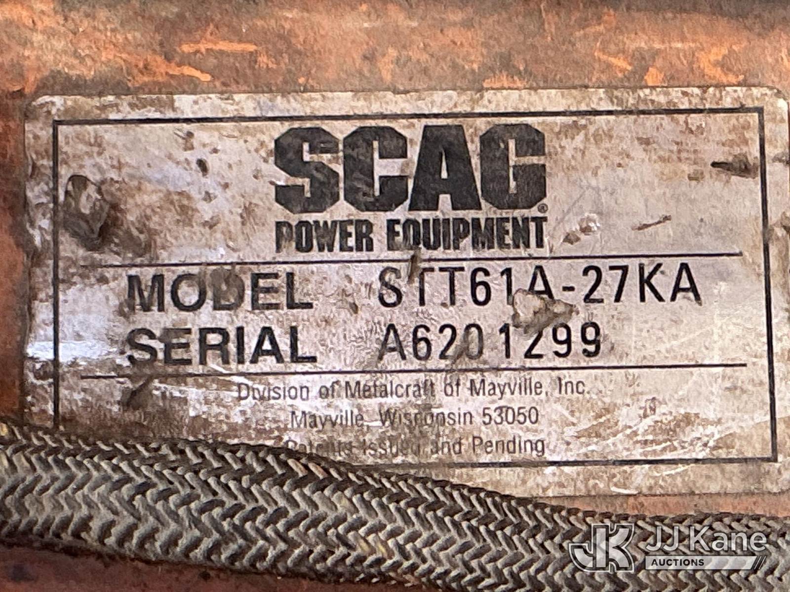 2007 SCAG Turf Tiger Lawn Mower, s/n A6201299, Kawasaki Hydrostatic, Gas, with 61in deck, ROPS post, (Runs, Moves & Operates) NOTE: This unit is being sold AS IS/WHERE IS via Timed Auction and is located in China Grove, NC. Inspection & preview days for this unit are the 2 business days prior to the first day of items closing for this auction, item is located at 820 E NC Hwy 152 China Grove, NC 28023 and hours of operations are 8a-4p. For pre-sale questions, please contact Office Staff @ (704) 674-1113. (Buyer is responsible for removal. Assistance by consignor or JJ Kane Auctions is not assured.)