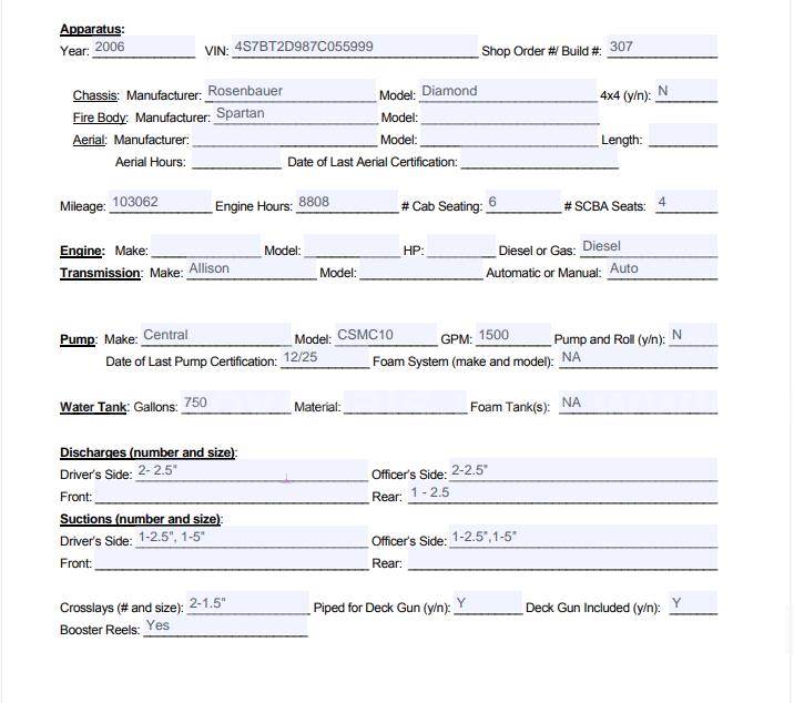 2007 Spartan Diamond Fire Truck