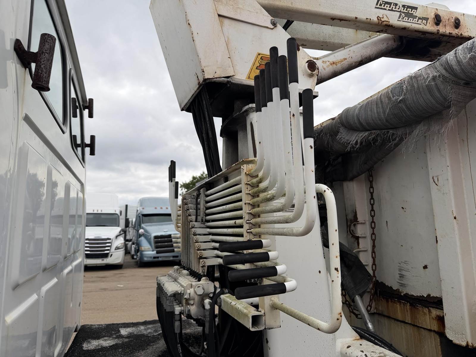 GOOD TRUCK, RUNS EXCELLENT, PETERSON LIGHTNING LOADER BOOM AND BRUSH GRAPPLE, DUMP BED, AIR BRAKES!