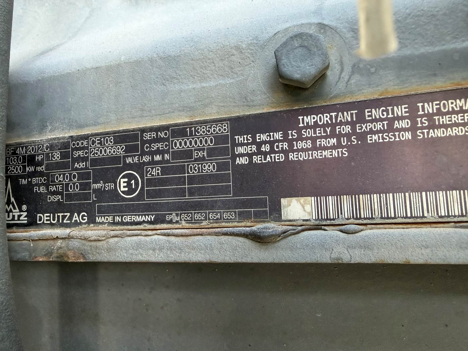 Deutz AG 2012-138HP Auxiliary Engine