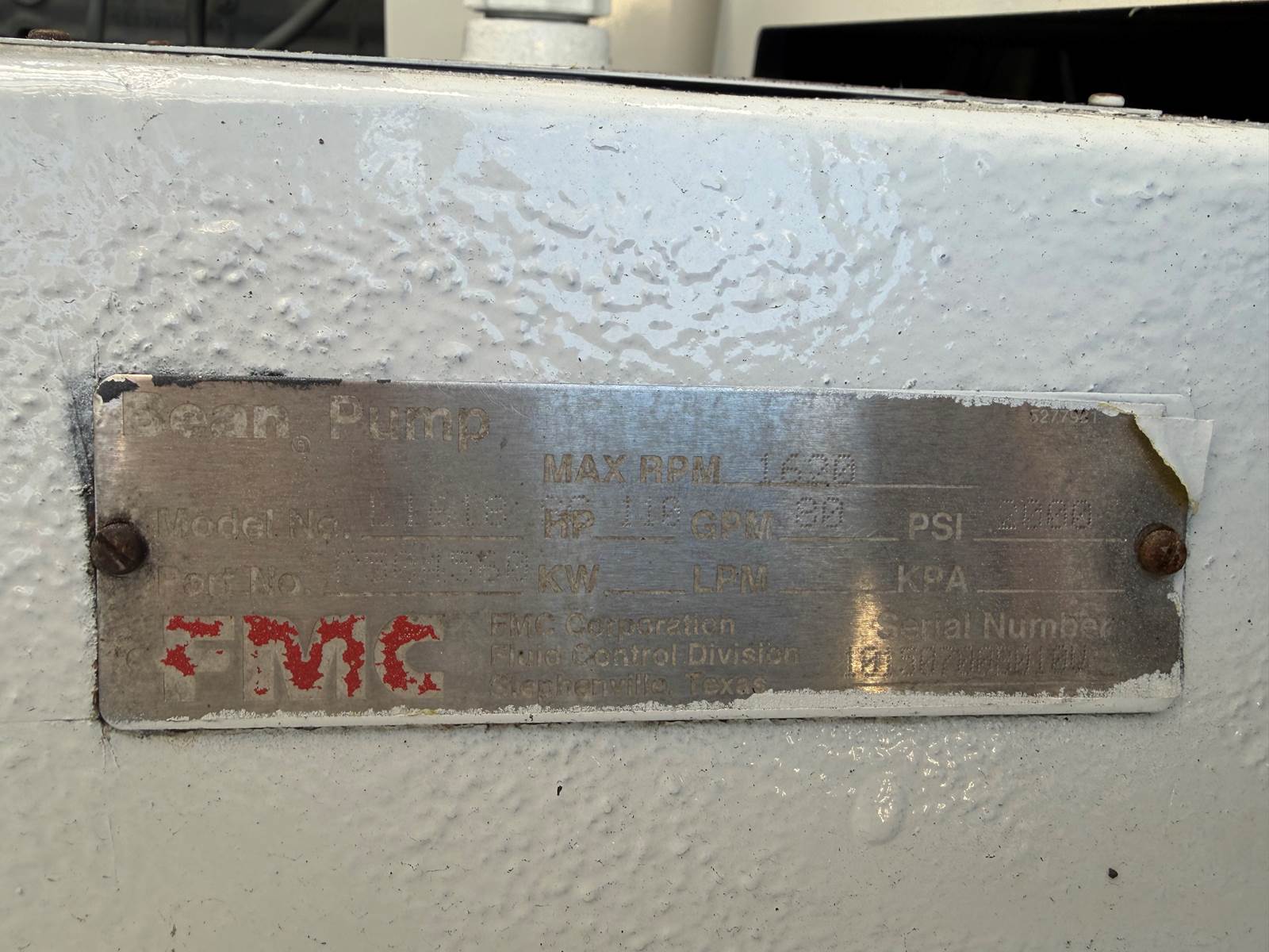 80 GPM @ 2,000 PSI FMC Bean Pump
