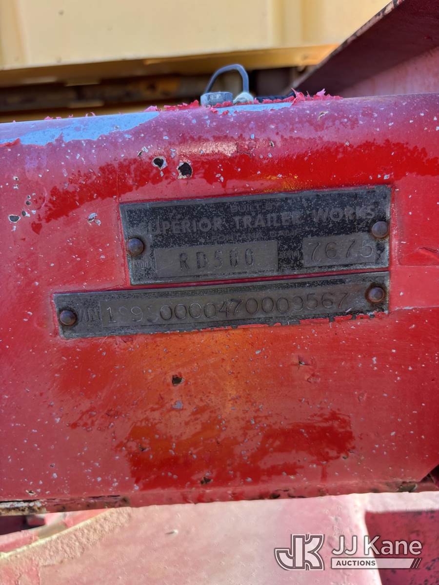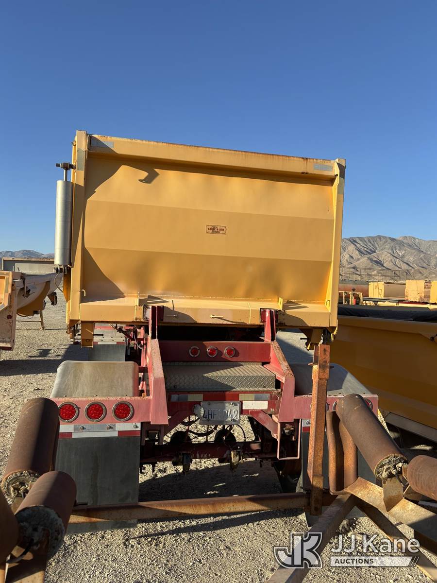 2007 Superior RD500 Pup End Dump-Trailer, with steel high-side box, barn-door tailgate with air assist, walking-beam suspension, air brakes, pintle drawbar;, quarry service unit (Dump Bed Operates) (Work-Ready But Used; Paint Fade/Chips On Frame, Typical Quarry Rash On Box; No Structural Cracks Seen) This is a Titled Item NOTE: This unit is being sold AS IS/WHERE IS via Timed Auction and is located in Desert Hot Springs, CA. Auction Items will not be released without a paid-in-full release form. The Purchaser must remove All Auction Items within (10) calendar days following the sale, without exception. For Auction items that remain on-site past (10) calendar days, the Purchaser may be charged a storage fee of $25.00/day (per Auction item) until the Auction Item is removed. Additional storage fees may apply at select Auction locations. If storage fees are incurred, they must be paid before removal. If an Auction Item remains on site (30) days following the date of sale, the Auction Item will be considered abandoned, and the Auctioneer will dispose of the item. Holiday hours will vary. (Buyer is responsible for removal. Assistance by consignor or JJ Kane Auctioneers is not assured.)