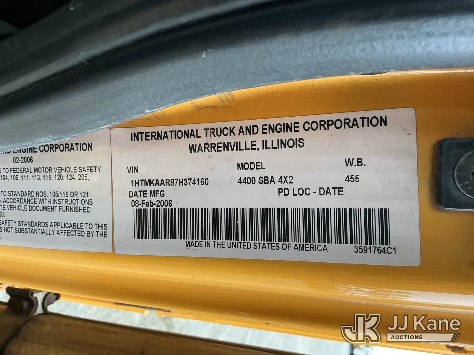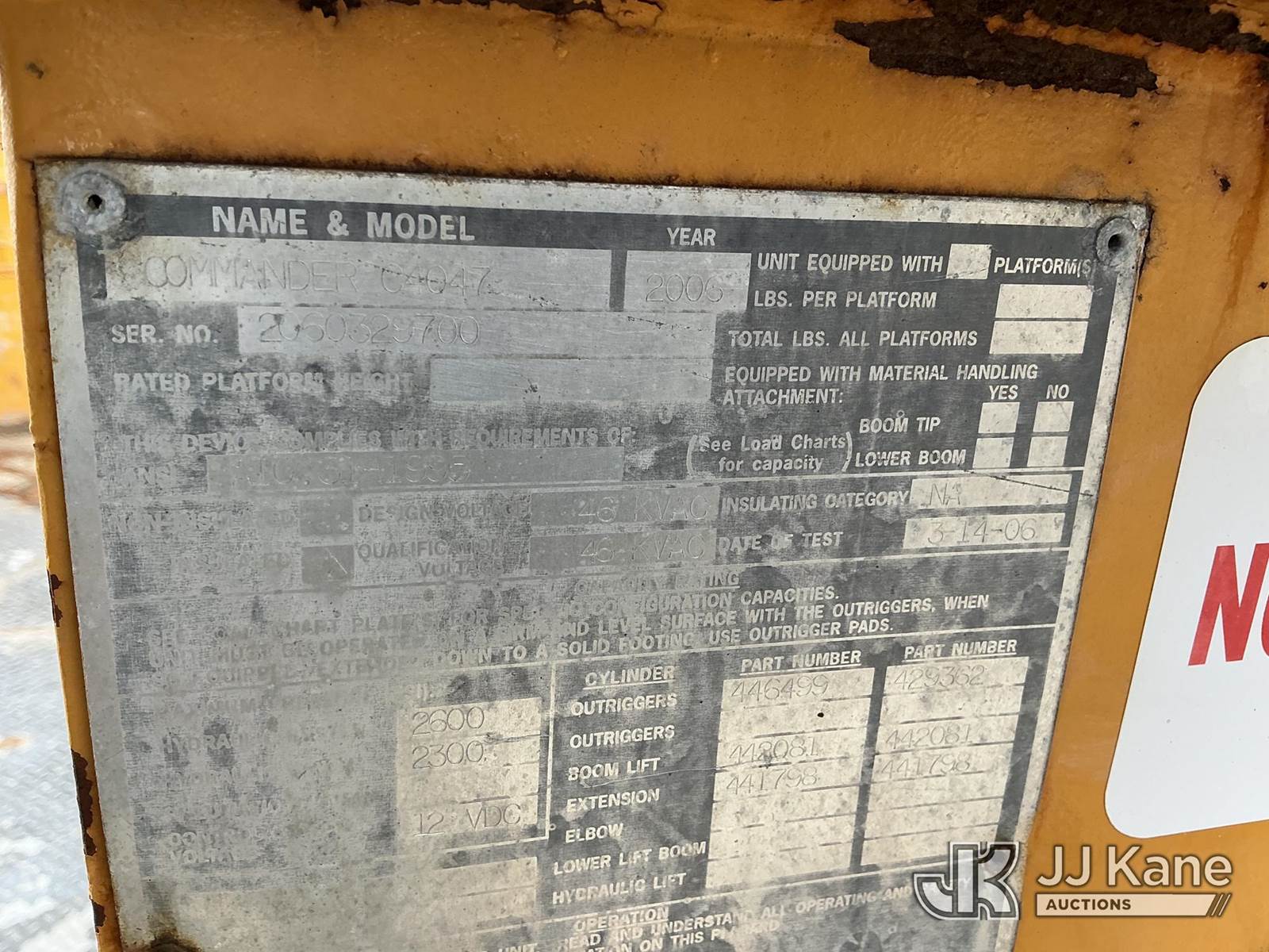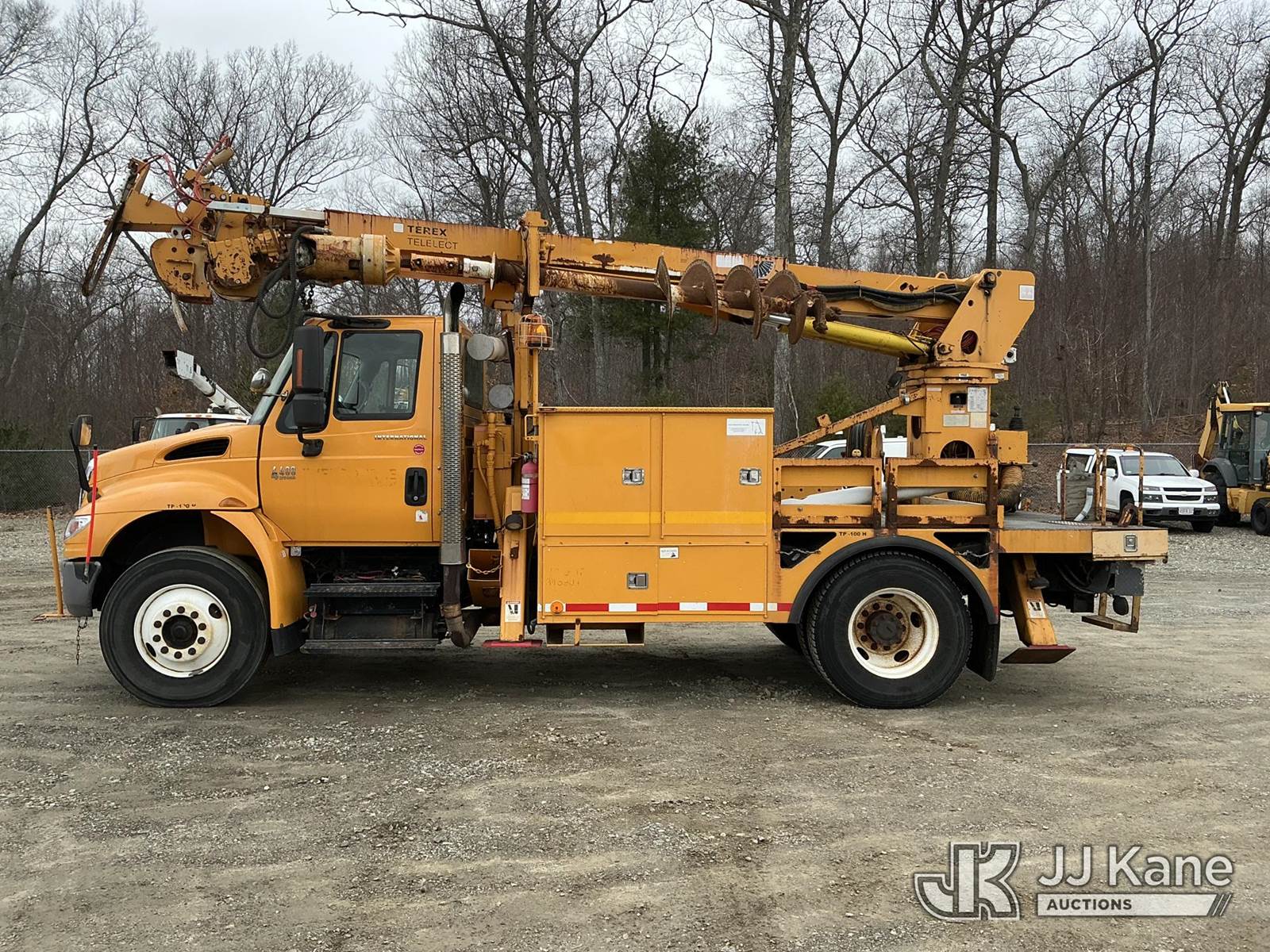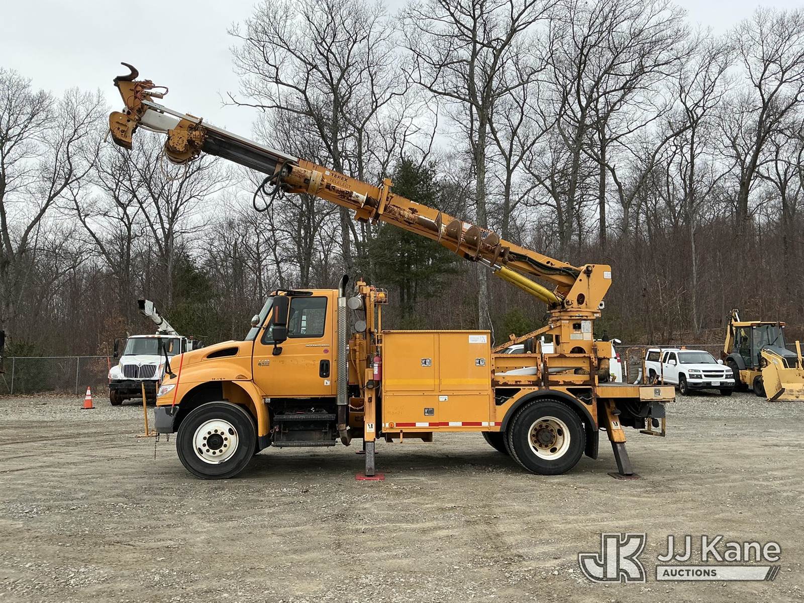 Terex/Telelect Commander C4047, 18,890 Lb Digger Derrick s/n 2060329700, with 47 ft sheave height, 2-spd digger, tip winch, pole grabs & stand up controls, corner mounted on 2007 International 4400 Flatbed/Utility Truck, DT466 4X2, diesel, Auto, A/C, (114,052 miles) (Runs, Moves & Upper Operates) (Reads 11,983 hours) This is a Titled Item NOTE: This unit is being sold AS IS/WHERE IS via Timed Auction and is located in Shrewsbury, MA. Inspection & preview days for this unit are the 2 business days prior to the first day of items closing for this auction, item is located at 11 Fortune Blvd Shrewsbury, MA 01545 and hours of operations are 8a-4p. For pre-sale questions, please contact Rob Gifford @ (508) 864-4126. (Manuals provided in cab) (Buyer is responsible for removal. Assistance by consignor or JJ Kane Auctions is not assured.)