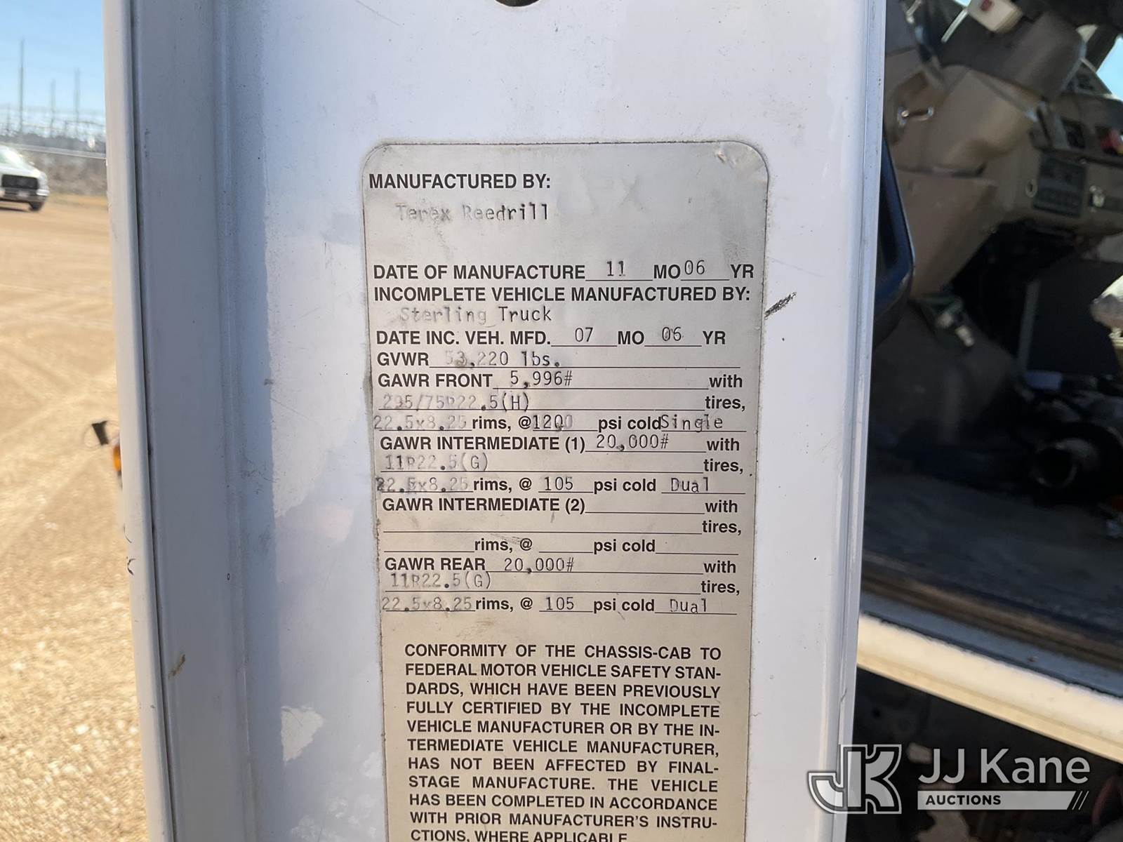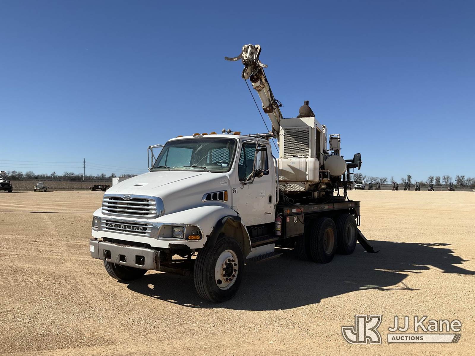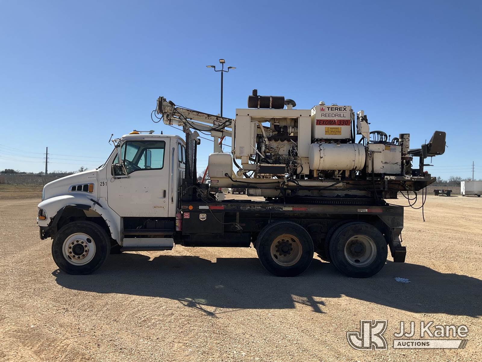 Texoma 330-12FT, Pressure Digger s/n 1K22X93, John Deere with 3in Kelly bar (20 ft), rotating & extendable table, pole grabs, winch & 2 hyd outriggers, rear mounted on 2007 Sterling Acterra T/A Flatbed Truck, 7.2L diesel, 6X4, Auto, A/C, (86,853 miles) (Runs, Moves & Upper Operates) (Outriggers have Hydraulic Leaks, Body Damage throughout) This is a Titled Item NOTE: This unit is being sold AS IS/WHERE IS via Timed Auction and is located in Marion, TX. Inspection & preview days for this unit are the 2 business days prior to the first day of items closing for this auction, item is located at 3292 S Santa Clara Rd Marion, TX 78124 and hours of operations are 8a-4p. For pre-sale questions, please contact Brian Jarrell @ 210-540-3147. (Missing manuals, See Auction Company for Manufacturers Information to obtain manuals) (Buyer is responsible for removal. Assistance by consignor or JJ Kane Auctions is not assured.)