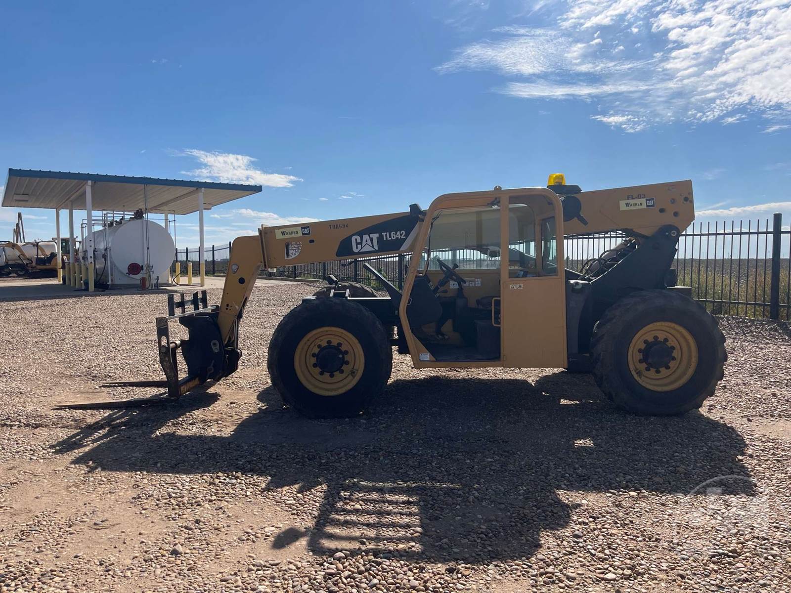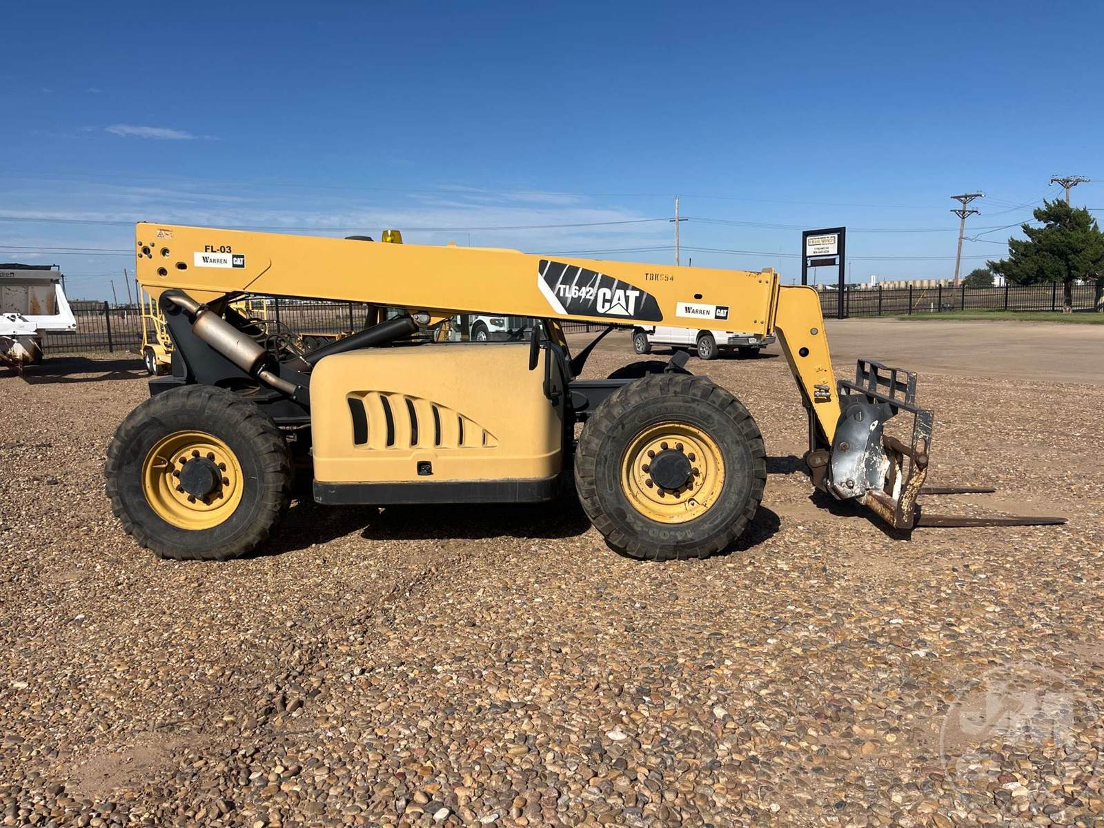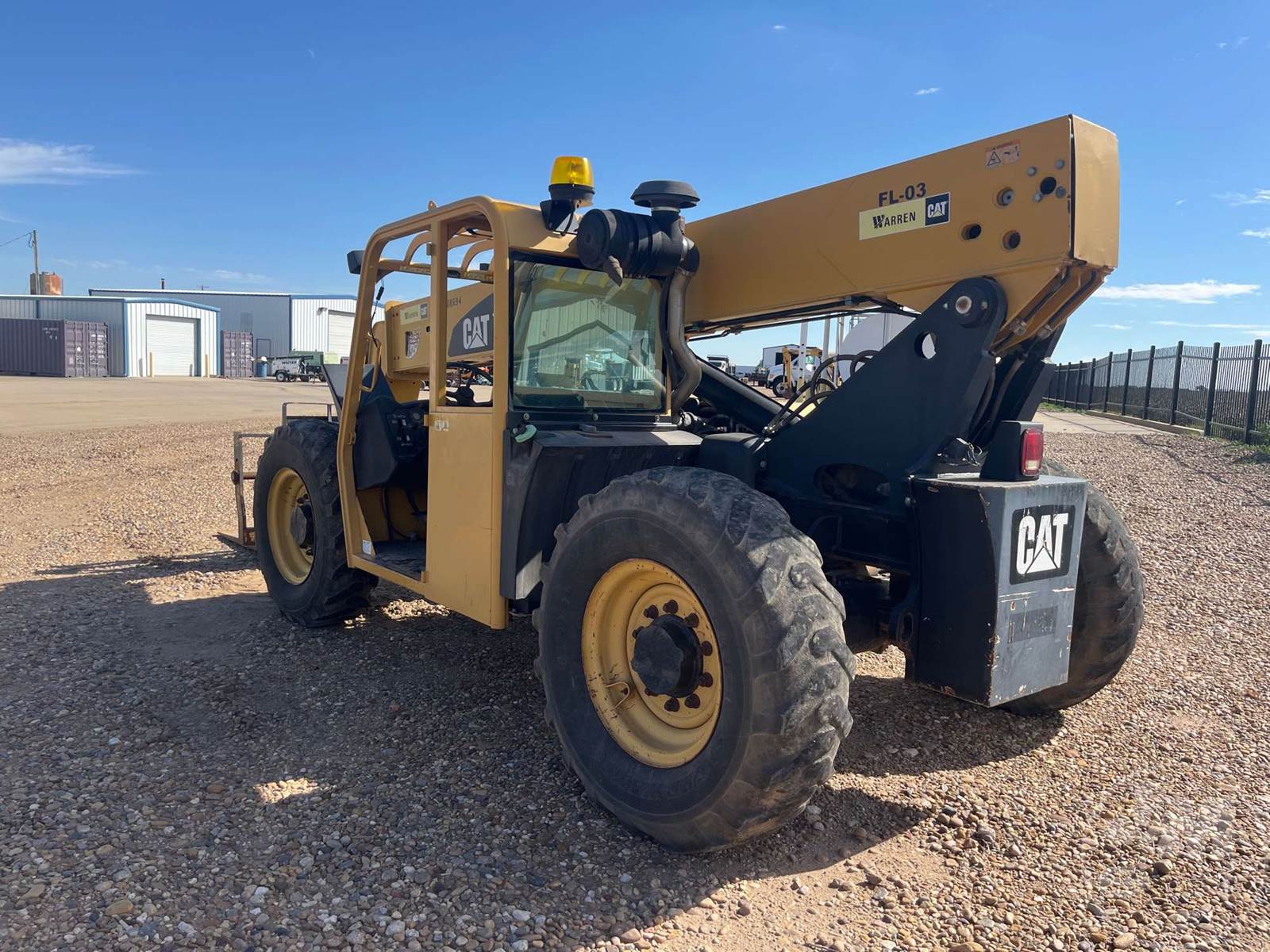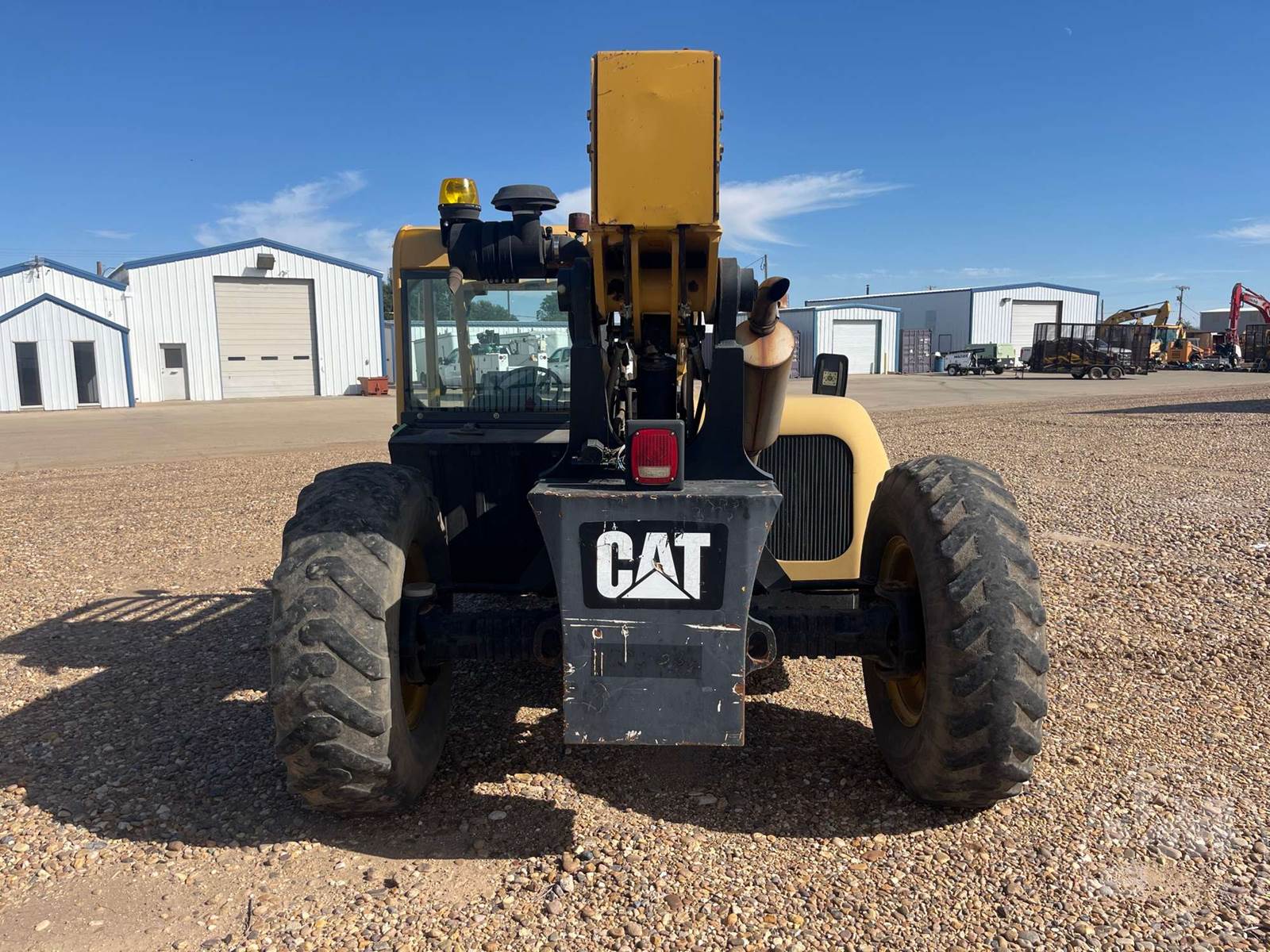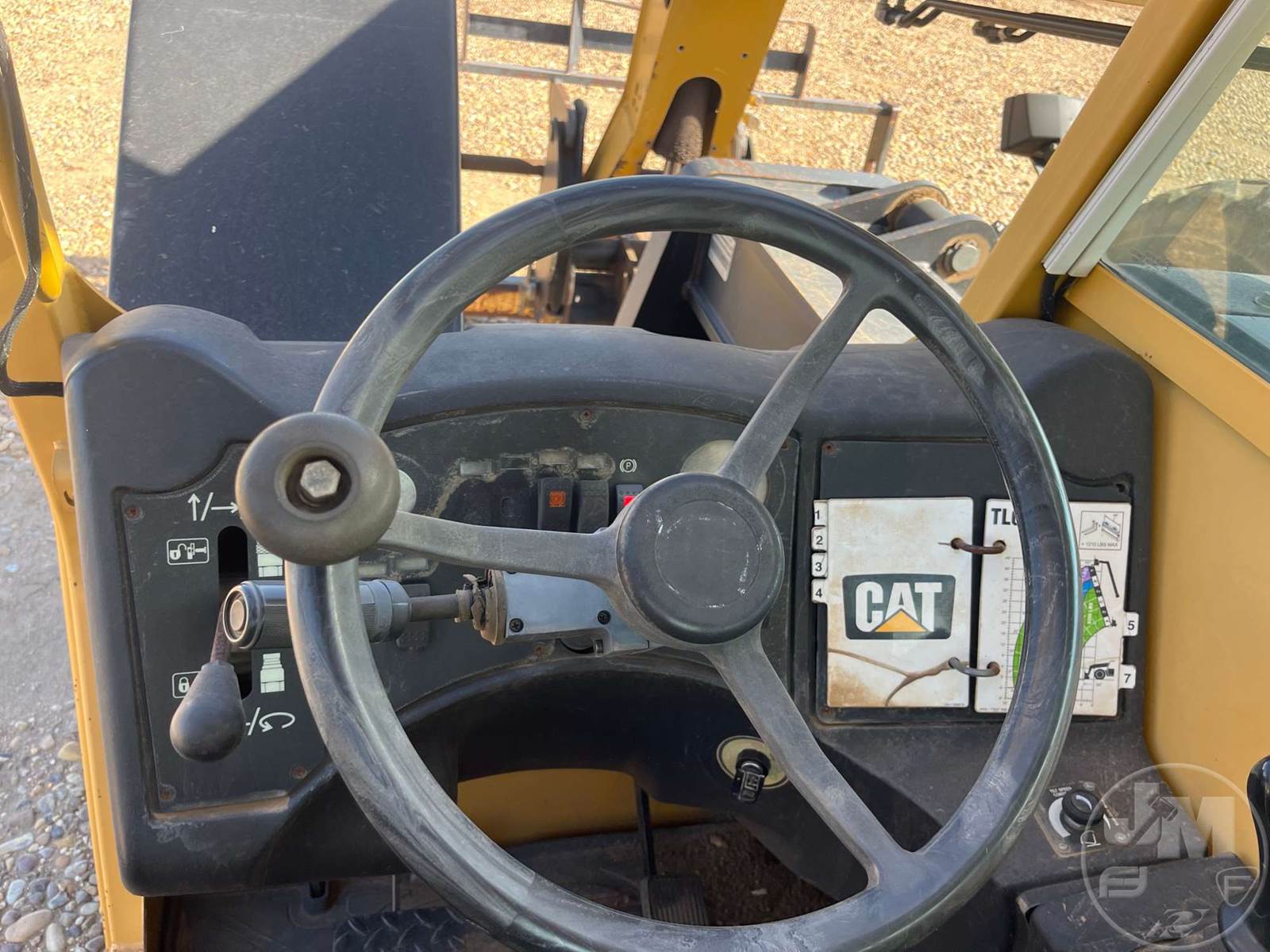 CATERPILLAR 6000 LB TELESCOPIC FORKLIFT, CANOPY, CATERPILLAR, 4 CYL, DIESEL, 42 FT LIFT HEIGHT, 4X4, ALL WHEEL STEER, FRAME LEVELING, AUX HYD, QC FORKS, 48" FORKS, HOUR METER READS: 4970