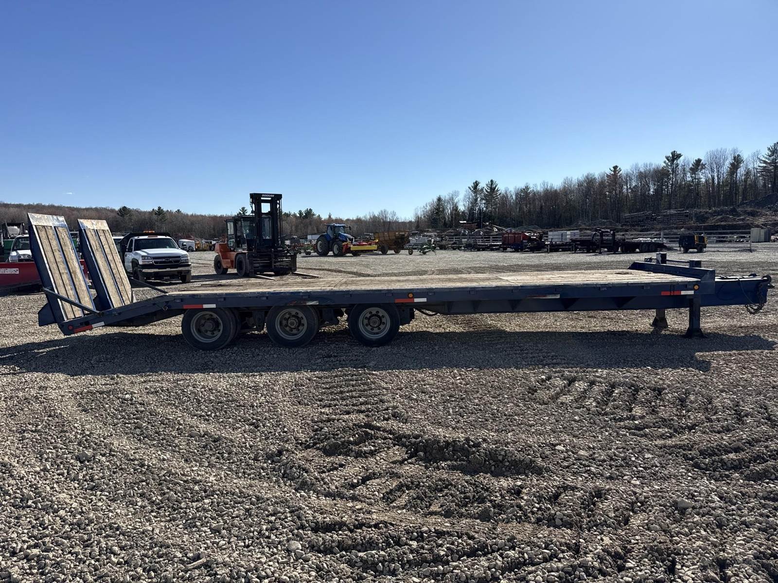 GVWR: 61100LB, Approx 102" Deck Width, Approx 31' Total Deck Length W/ 5' Dovetail, Approx 64" Air Folding Ramps, Spring Ride, Air Brakes, Rub Rails, 2 Speed Landing Gear, Front Chain Box, Adjustable Pintle Hitch, 215/75R17.5 Tires