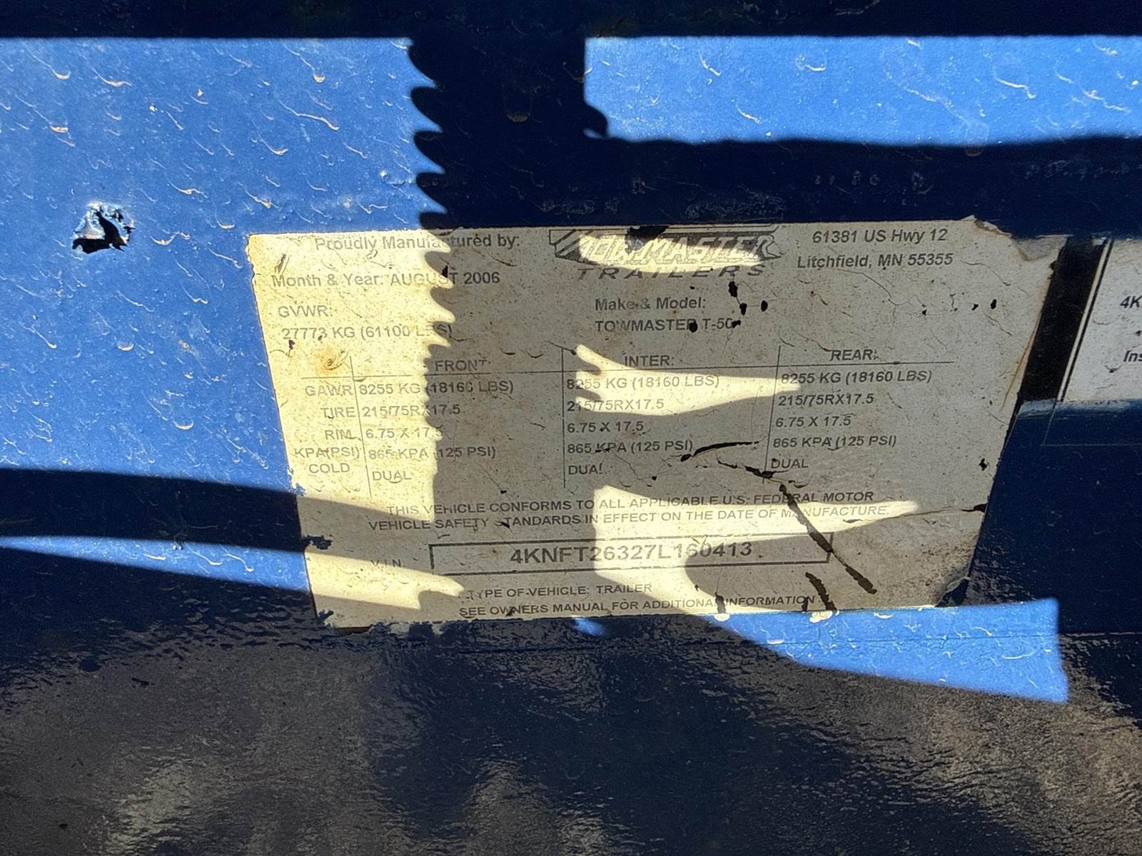 2007 Towmaster 31' Tag Trailer
