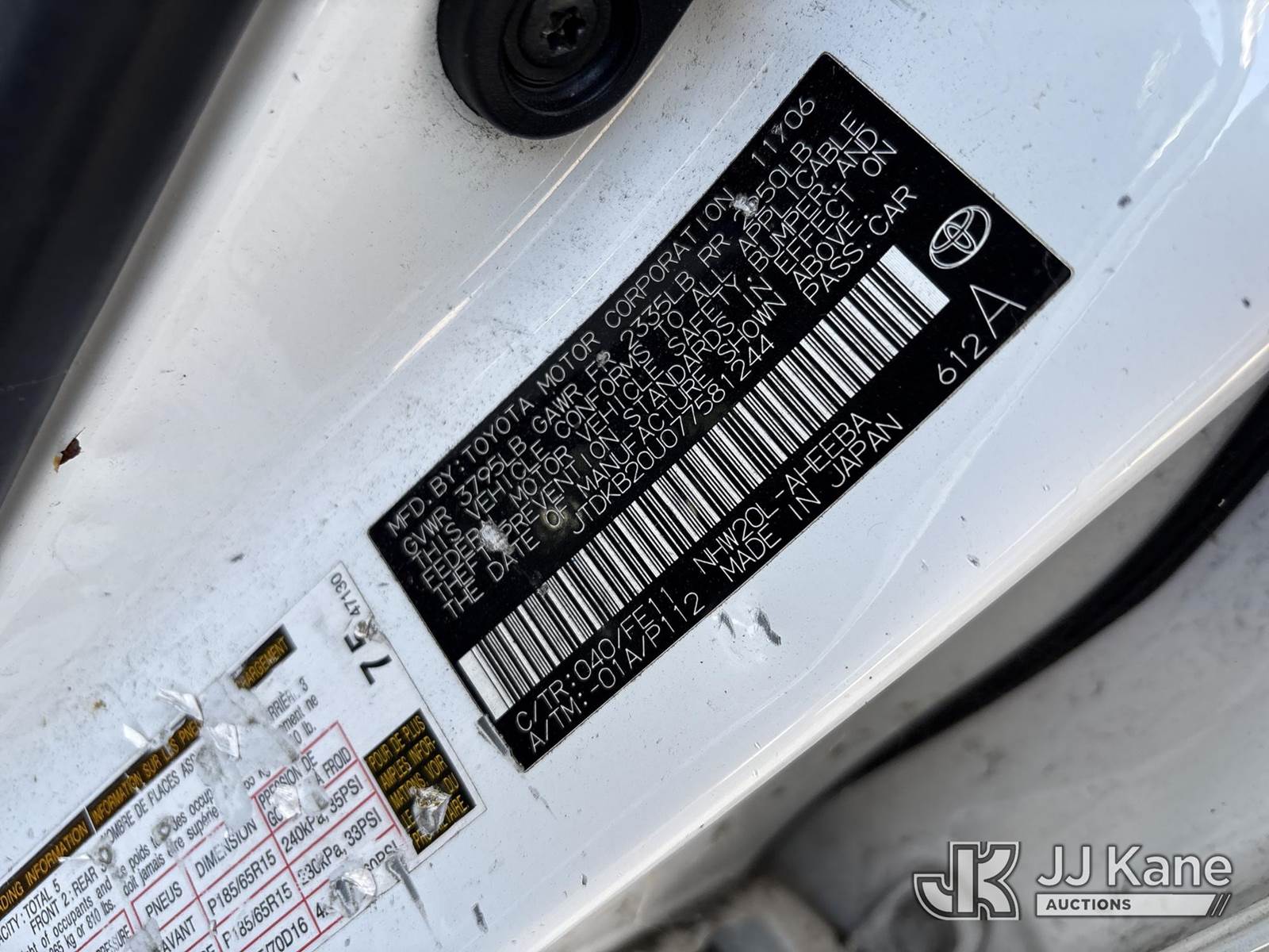 2007 Toyota Prius 4-Door Sedan, s/n JTDKB20U077581244, 1.5L L4 DOHC 16V FWD, HYBRID, Continuously Variable Transmission, A/C, True Mileage Unknown (Not Running, Vehicle Dismantled) (Bidding Restricted to Licensed Vehicle Dealers Only), This is a Titled Item NOTE: This unit is being sold AS IS/WHERE IS via Timed Auction and is located in Dixon, CA. Inspection & preview days for this unit are the 2 business days prior to the first day of items closing for this auction, item is located at 8668 Sparling Ln Dixon, CA 95620 and hours of operations are 8a-4p. For pre-sale questions, please contact JJ Kane Staff at (707) 678-8060 (dixon@jjkane.com). Dealer License Number 45696. (Buyer is responsible for removal. Assistance by consignor or JJ Kane Auctions is not assured.)