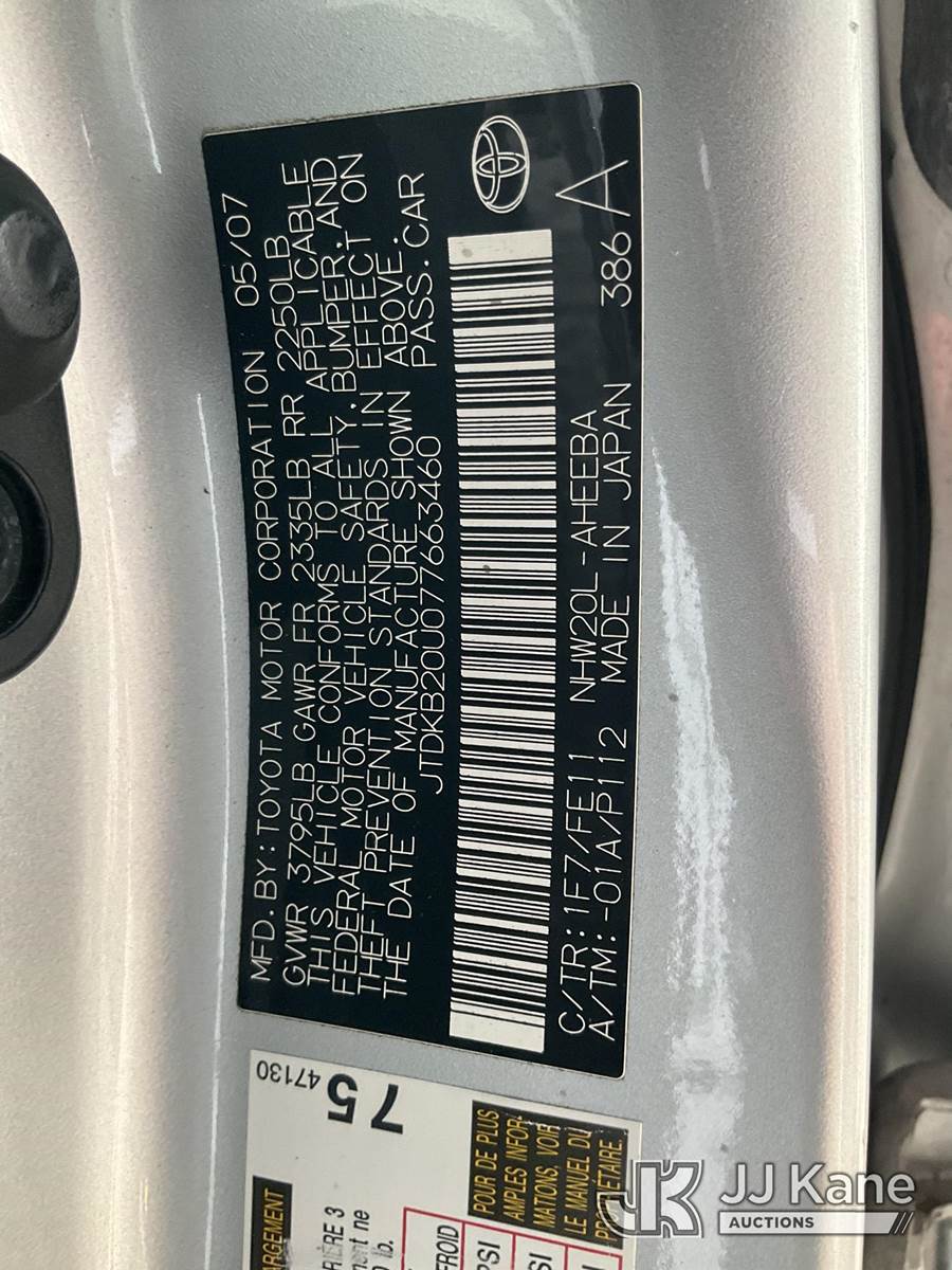 2007 Toyota Prius Hybrid 4-Door Hatch Back, 1.5L L4 DOHC 16VGas/Electric FWD, Continuously Variable Transmission, A/C, (43,464 miles) (Runs & Moves) This is a Titled Item NOTE: This unit is being sold AS IS/WHERE IS via Timed Auction and is located in Jurupa Valley, CA. Inspection & preview days for this unit are the 2 business days prior to the first day of items closing for this auction, item is located at 4510 Muth Way Jurupa Valley, CA 92509 and hours of operations are 8a-4p. For pre-sale questions, please contact please contact Office Staff @ (310) 353-7140. Dealer License Number 45696. (Buyer is responsible for removal. Assistance by consignor or JJ Kane Auctions is not assured.)